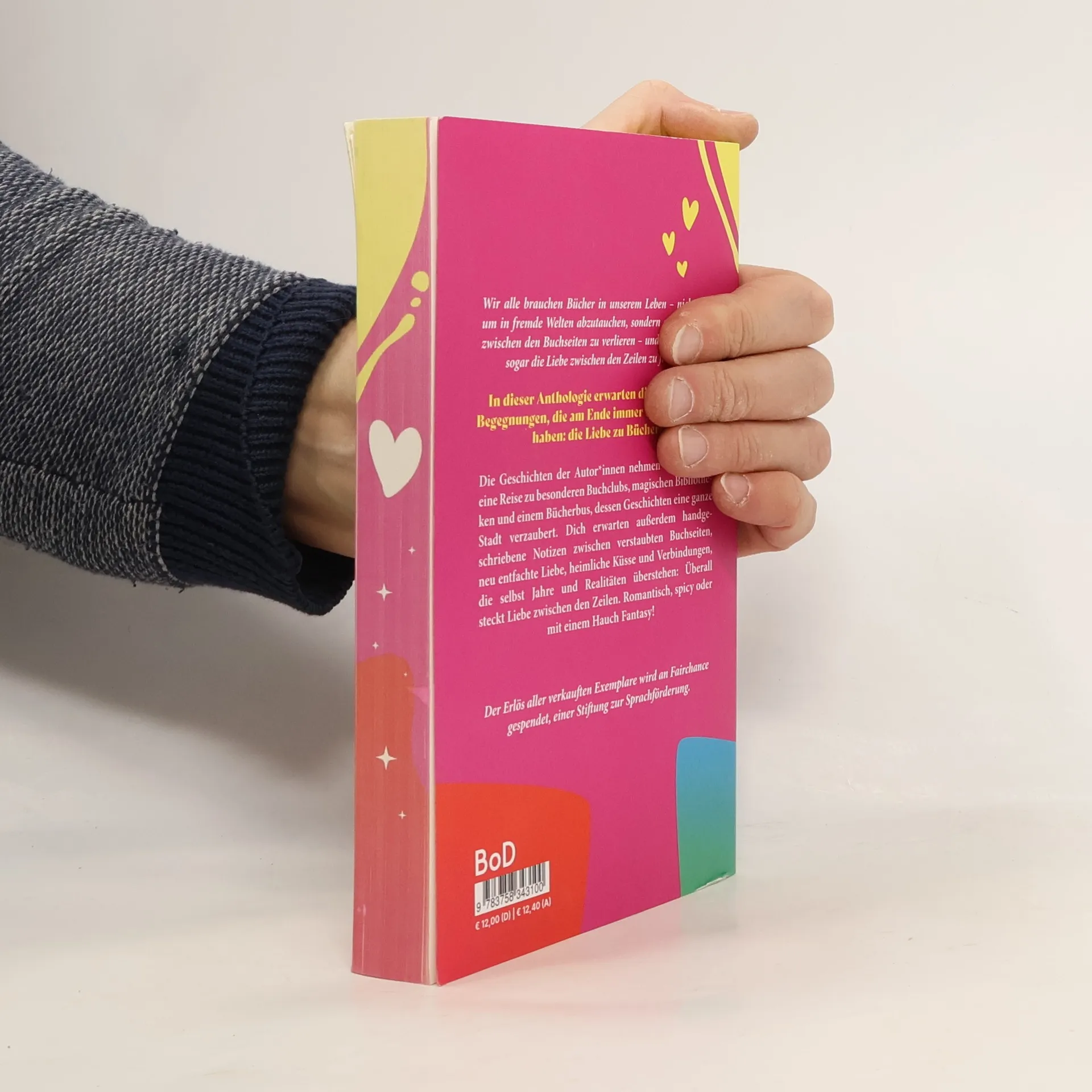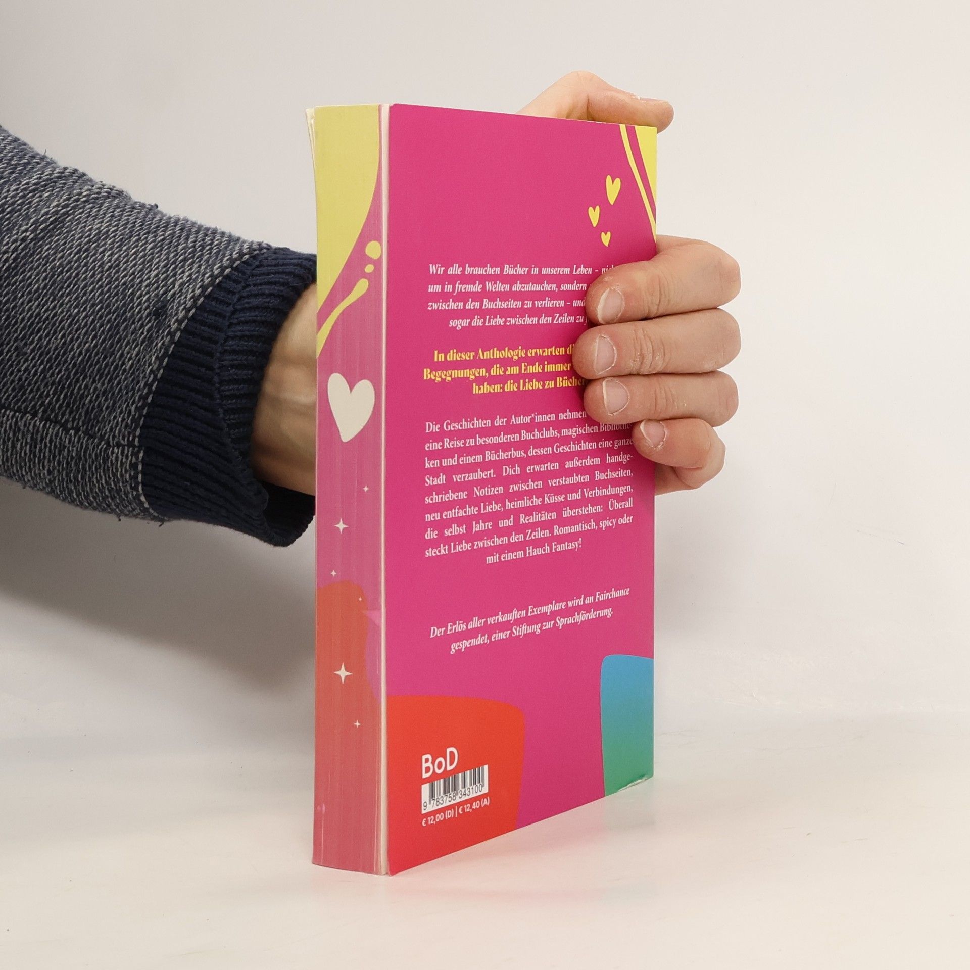 Wir alle brauchen Bücher in unserem Leben - nicht nur, um in fremde Welten abzutauchen, sondern auch, um uns zwischen den Buchseiten zu verlieren - und dort vielleicht sogar die Liebe zwischen den Zeilen zu finden ... In dieser Anthologie erwarten dich besondere Begegnungen, die am Ende immer eins gemeinsam haben: die Liebe zu Büchern. Die Geschichten der Autor*innen nehmen dich mit auf eine Reise zu besonderen Buchclubs, magischen Bibliotheken und einem Bücherbus, dessen Geschichten eine ganze Stadt verzaubert. Dich erwarten außerdem handgeschriebene Notizen zwischen verstaubten Buchseiten, neu entfachte Liebe, heimliche Küsse und Verbindungen, die selbst Jahre und Realitäten überstehen: Überall steckt Liebe zwischen den Zeilen. Romantisch, spicy oder mit einem Hauch Fantasy! Der Erlös aller verkauften Exemplare wird an Fairchance gespendet, einer Stiftung zur Sprachförderung.
