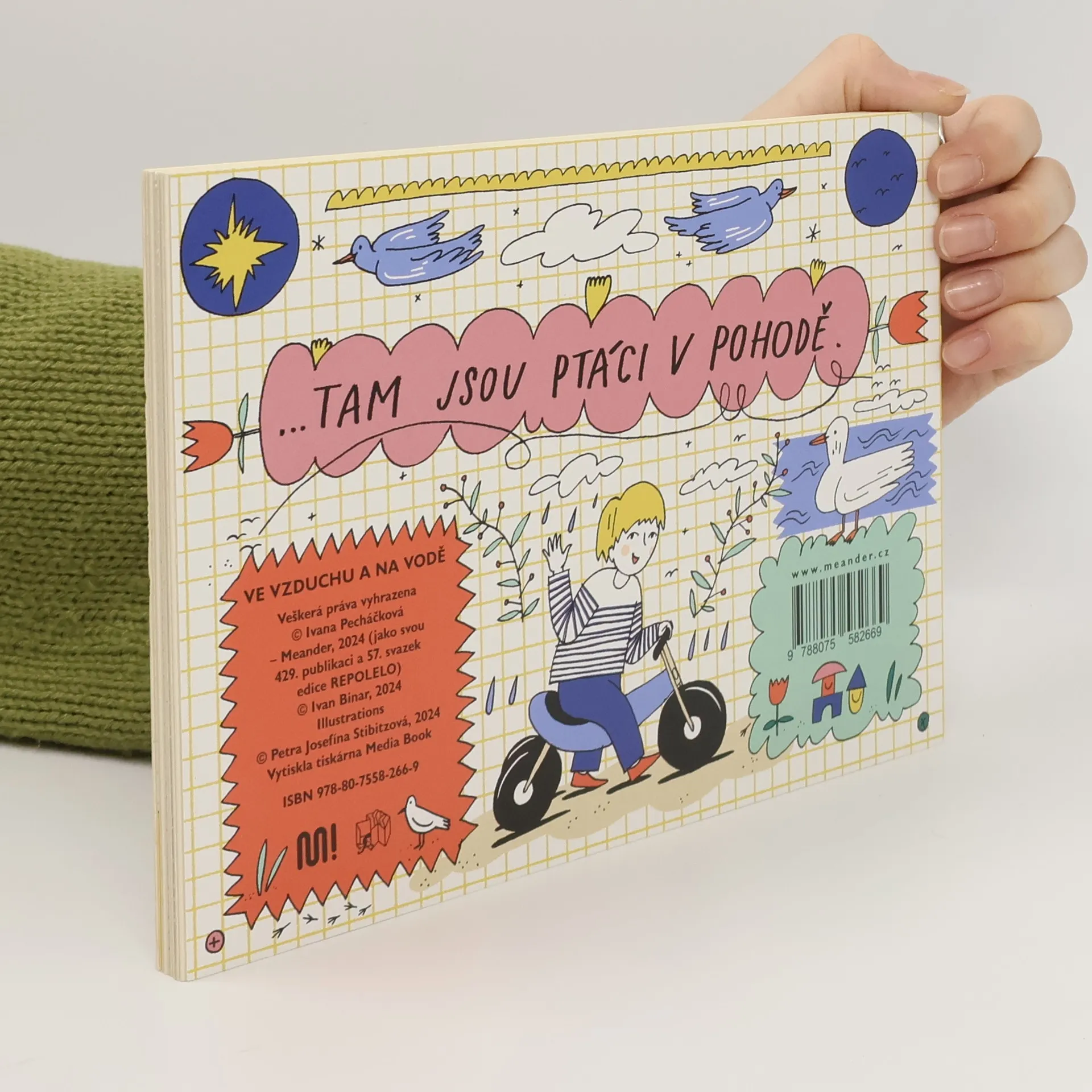 Ptactvo nebeské je neposedné a nepolapitelné. Ptáček se kolem nás a nad námi jen mihne – a je v trapu! Jakpak si ho má prohlédnout dítě, které se prohání po chodníku na odrážedle? Jak jinak než v knížce na obrázku. Tam se může na každého ptáčka pěkně zblízka podívat a brzy dokáže pojmenovat nejen sýkorky a kachny, ale třeba i ledňáčky, straky nebo kormorány a zamávat jim na procházce, když se potkají...