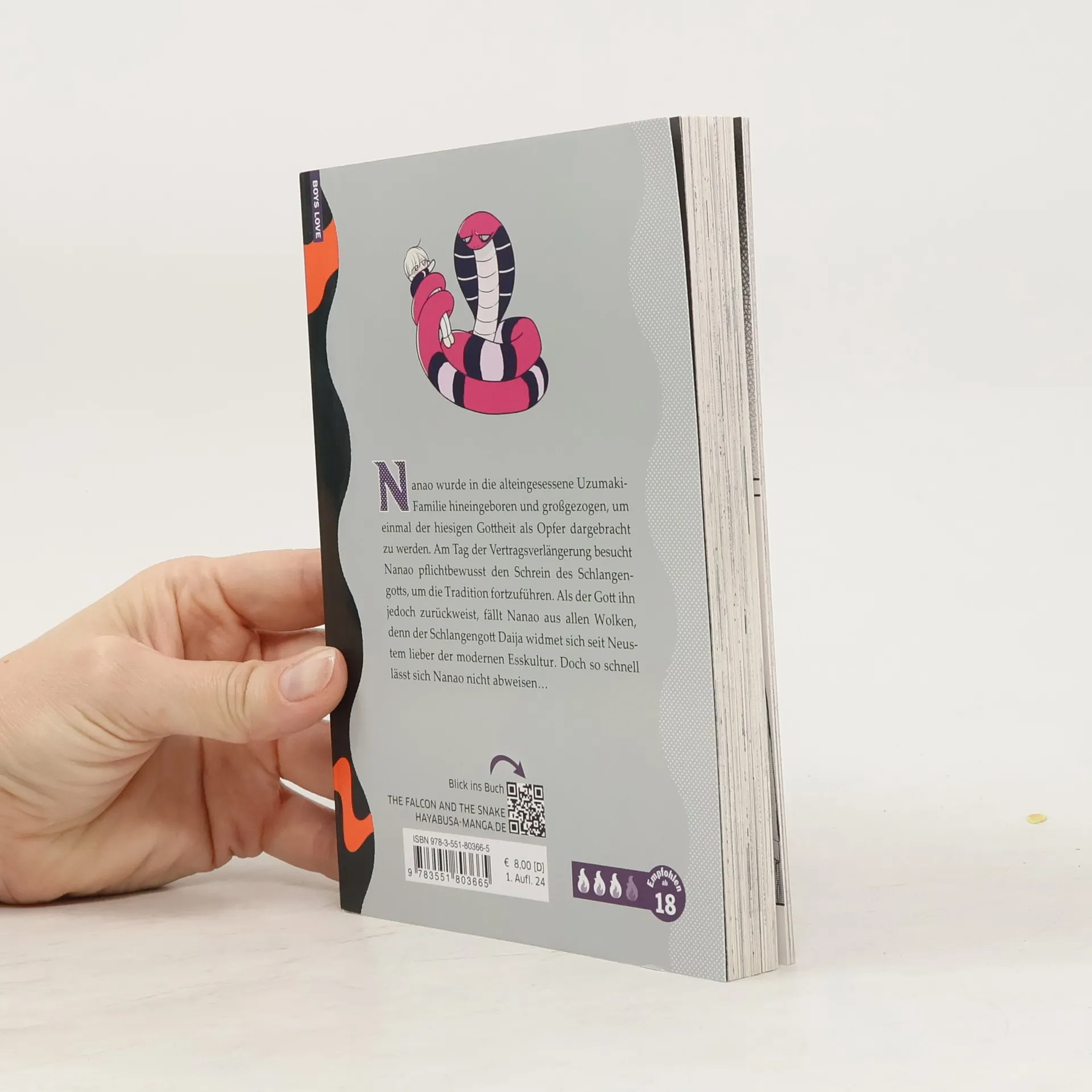 Mit exklusiver SNS Card zum Sammeln und Kreativsein – nur in 1. Auflage! Geboren, um geopfert zu werden – doch der Gott hat andere Pläne... Nanao wurde in die alteingesessene Uzumaki-Familie hineingeboren und großgezogen, um einmal der hiesigen Gottheit als Opfer dargebracht zu werden. Am Tag der Vertragsverlängerung besucht Nanao pflichtbewusst den Schrein des Schlangengottes, um die Tradition fortzuführen. Als der Gott ihn jedoch zurückweist, fällt Nanao aus allen Wolken, denn der Schlangengott Daija widmet sich seit neustem lieber der modernen Esskultur... Witzige und göttlich heiße Boys-Love-Serie mit charmantem Artwork.