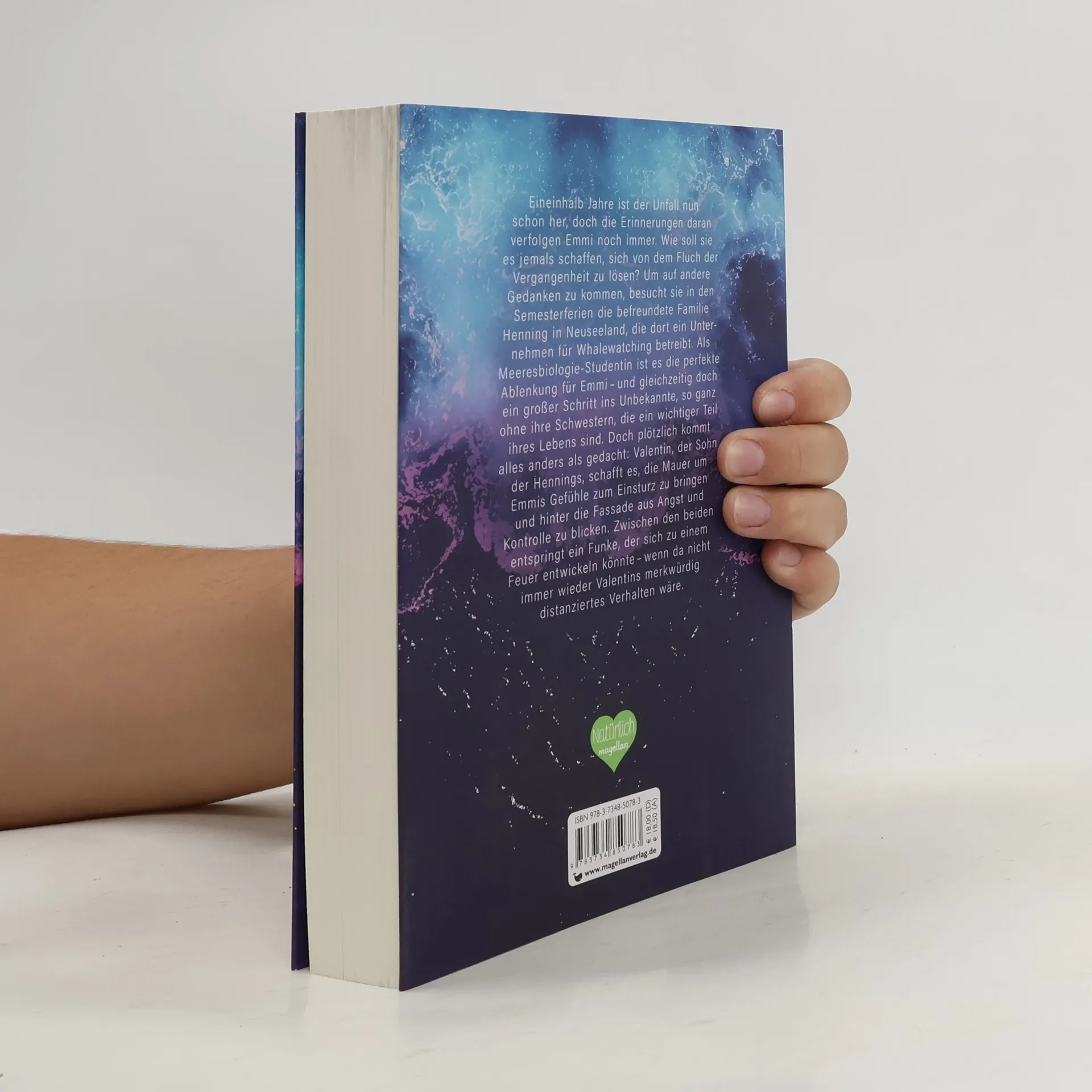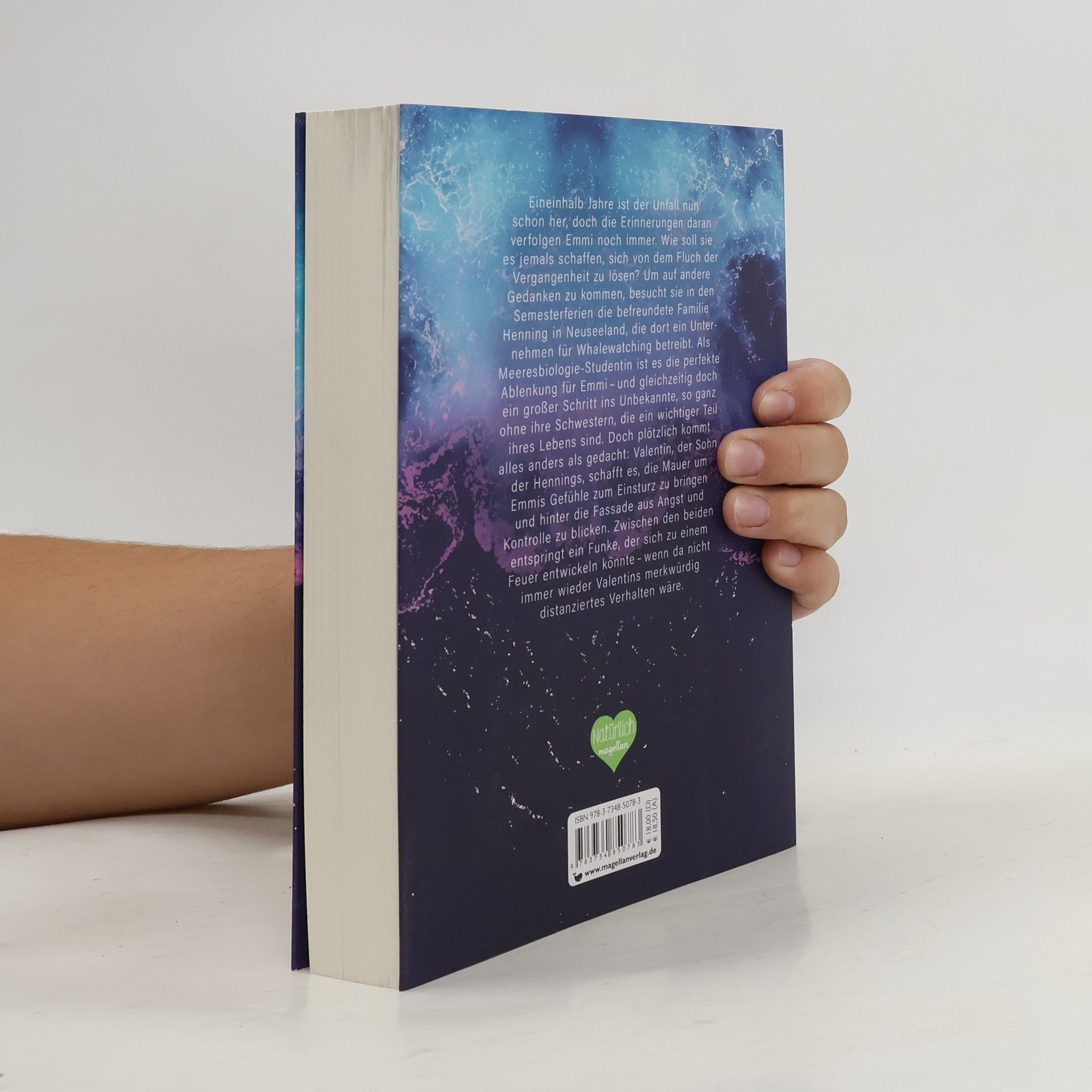 New-Adult-Romance über das bewegende Thema Mental Health. Mit Character-Card! Eineinhalb Jahre ist der Unfall nun schon her, doch die Erinnerungen daran verfolgen Emmi noch immer. Wie soll sie es jemals schaffen, sich von dem Fluch der Vergangenheit zu lösen? Um auf andere Gedanken zu kommen, besucht sie in den Semesterferien eine befreundete Familie in Neuseeland, die dort ein Unternehmen für Whalewatching betreibt. Als Meeresbiologie-Studentin ist es die perfekte Ablenkung für Emmi – und gleichzeitig doch ein großer Schritt ins Unbekannte, so ganz ohne ihre Schwestern, die ein wichtiger Teil ihres Lebens sind. Doch plötzlich kommt alles anders als gedacht: Valentin, der Sohn des Firmeninhabers, schafft es, die Mauer um Emmis Gefühle zum Einsturz zu bringen und hinter die Fassade aus Angst und Kontrolle zu blicken. Zwischen den beiden entspringt ein Funke, der sich zu einem Feuer entwickeln könnte - wenn da nicht immer wieder Valentins merkwürdig distanziertes Verhalten wäre.