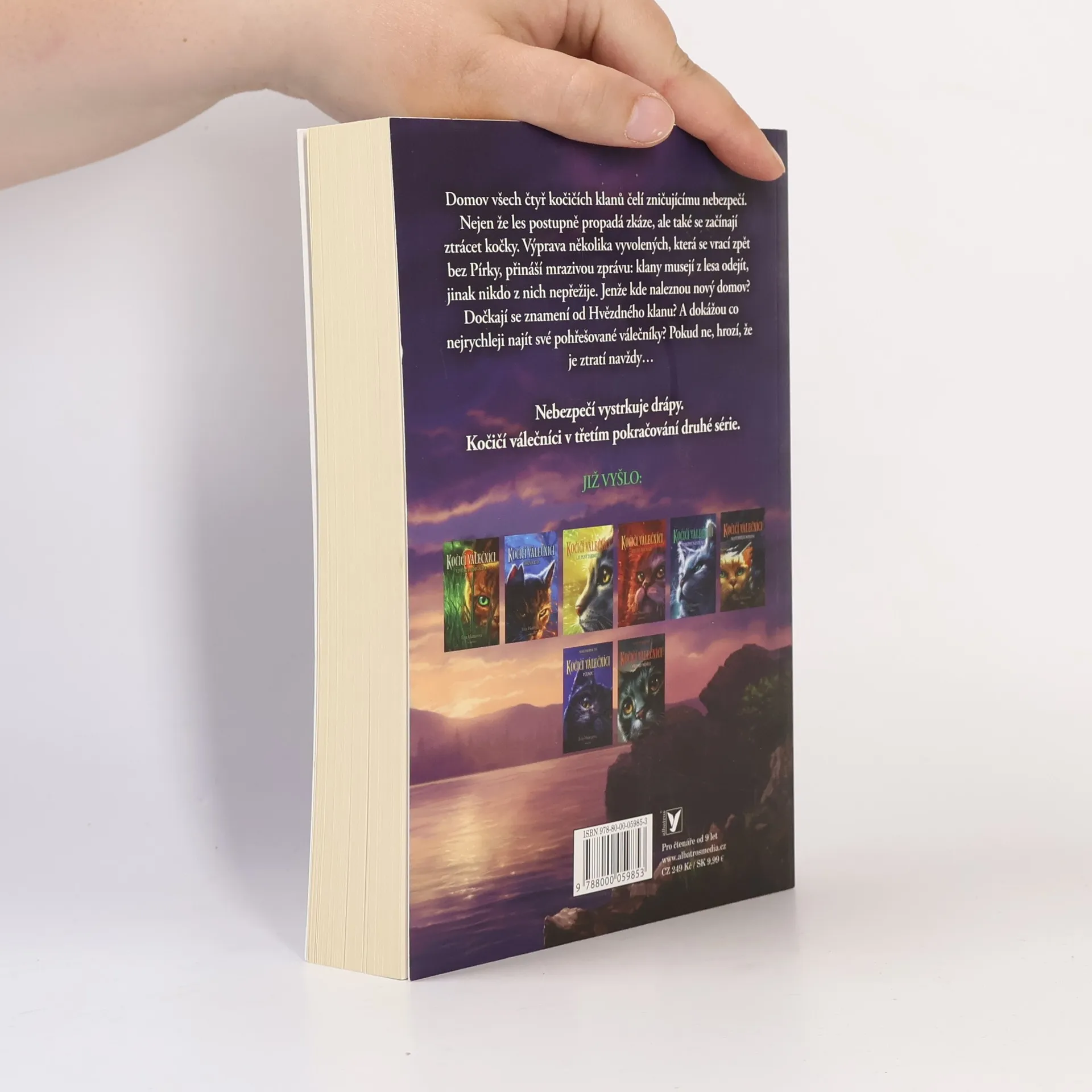 Nebezpečí vystrkuje drápy. Kočičí válečníci v třetím pokračování druhé série. Domov všech čtyř kočičích klanů čelí zničujícímu nebezpečí. Nejen že les postupně propadá zkáze, ale také se začínají ztrácet kočky. Výprava několika vyvolených, která se vrací zpět bez Pírky, přináší mrazivou zprávu: klany musejí z lesa odejít, jinak nikdo z nich nepřežije. Jenže kde naleznou nový domov? Dočkají se znamení od Hvězdného klanu? A dokážou co nejrychleji najít své pohřešované válečníky? Pokud ne, hrozí, že je ztratí navždy…