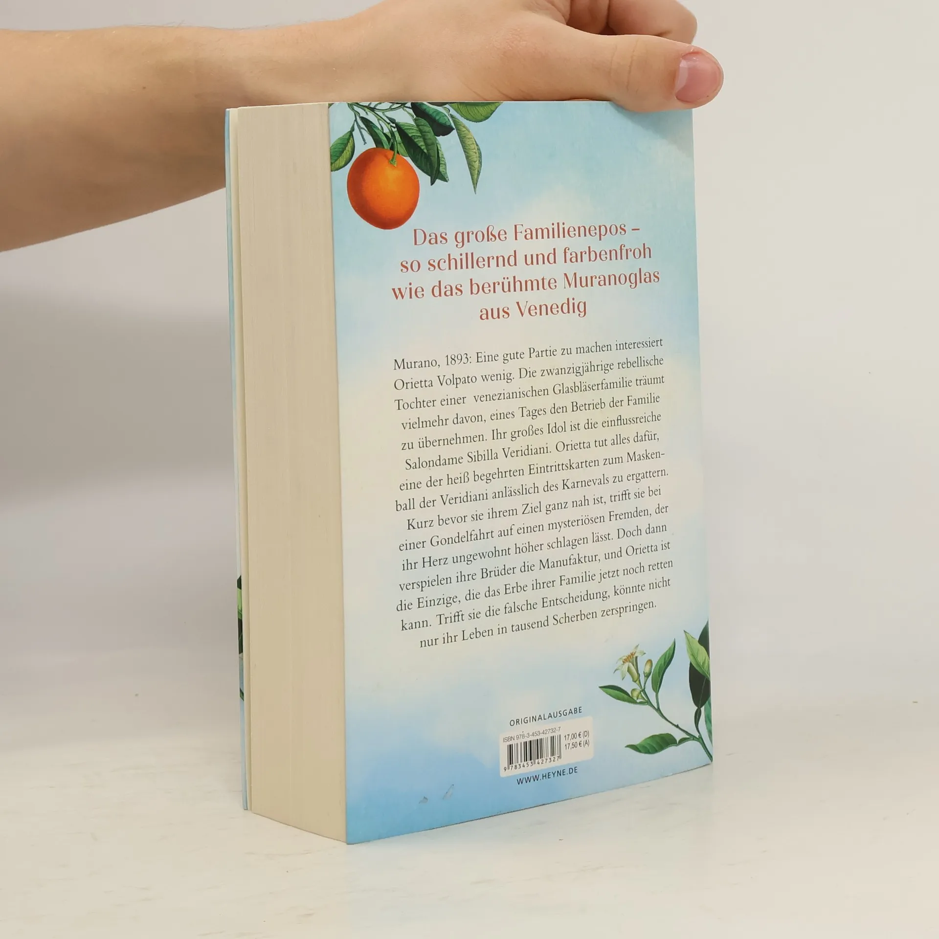Wo Träume aus Feuer und Sand entstehen Murano, 1893: Eine gute Partie zu machen interessiert Orietta Volpato wenig. Als rebellische Tochter einer venezianischen Glasbläserfamilie träumt die Zwanzigjährige vielmehr davon, eines Tages den Betrieb der Familie zu übernehmen. Ihr großes Idol ist die einflussreiche Salondame Sibilla Veridiani. Orietta tut alles dafür, eine der heißbegehrten Eintrittskarten zum Maskenball der Veridiani anlässlich des Karnevals zu ergattern. Kurz bevor sie ihrem schillernden Traum ganz nah ist, trifft sie bei einer Gondelfahrt auf einen mysteriösen Fremden, der ihr Herz ungewohnt höherschlagen lässt. Doch dann verspielen ihre Brüder die Manufaktur, und Orietta ist die Einzige, die das Erbe ihrer Familie jetzt noch retten kann. Trifft sie die falsche Entscheidung, könnte nicht nur ihr Leben in tausend Scherben zerspringen.