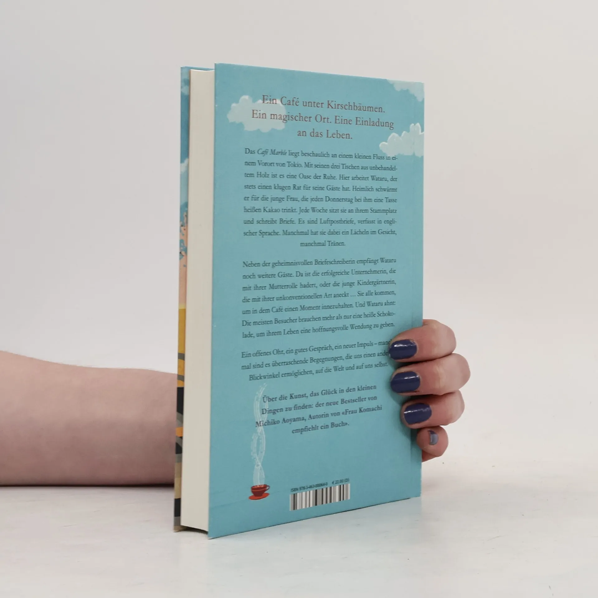 Ein Café unter Kirschbäumen. Ein magischer Ort. Eine Einladung an das Leben. Das Café Marble liegt an einem kleinen Fluss im Schatten der Kirschbäume in einem Vorort von Tokio. Mit seinen wenigen Tischen aus unbehandeltem Holz ist es eine Oase der Ruhe. Hier arbeitet der junge Wataru, der stets einen klugen Rat für seine Gäste hat. Heimlich schwärmt er für die junge Frau, die jeden Donnerstag bei ihm eine Tasse heißen Kakao trinkt. Jede Woche sitzt sie an ihrem Stammplatz und schreibt Briefe. Manchmal hat sie dabei ein Lächeln im Gesicht, manchmal eine Träne. Wataru würde gerne mehr von ihr erfahren. Er empfängt aber auch noch weitere Gäste. Sie alle kommen, um in dem Café einen Moment innezuhalten. Und die meisten Besucher brauchen mehr als nur eine heiße Schokolade, um ihrem Leben eine neue Wendung zu verleihen. «Ein inspirierendes Buch für alle Sinnsuchenden.» Gala