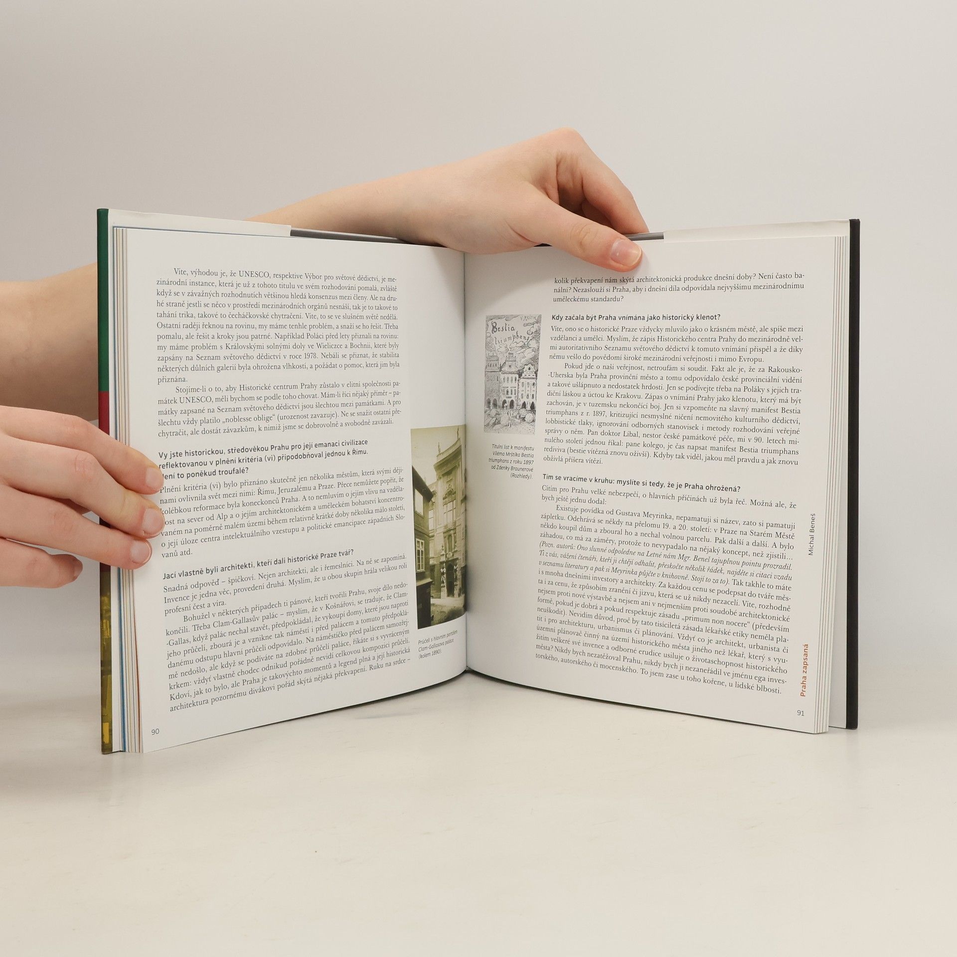 Tato kniha, ač plná fotografií, je uprostřed mnoha publikací o metropoli ojedinělá. Představuje rozhovory s vynikajícími odborníky, kteří z hlediska svých profesí město hodnotí a upozorňují i na nebezpečí, která mu hrozí. Zajímavé otázky o Praze za čtenáře kladli dva tazatelé, Karel Kučera a Vladimír Kučera Můžete si tak popovídat o Praze historické s Václavem Ledvinkou, o Praze umělecké s Jiřím T. Kotalíkem, o Praze archeologické s Jaroslavem Podliskou, o Praze předlistopadové s Pavlem Jeriem, o Praze zapsané na seznam UNESCO s Michalem Benešem, o Praze urbanistické s Janem Sedlákem, o Praze turistické s Františkem Kadlecem, o Praze moderní s Martinou F. Koukalovou a o Praze přírodní s Jiřím Sádlem.. Je určena všem návštěvníkům Prahy, kteří ji chtějí poznat, ale upozorňuje i na drobné a unikátní detaily, které by měli znát a obdivovat i sami Pražané. V době, kdy Výbor světového dědictví UNESCO ohlásil možné vyškrtnutí Prahy ze svého seznamu, chce také nakladatelství Vyšehrad vzbudit zájem o udržení historického odkazu Prahy a upozornit na její krásu. Praha přece patří mezi perly světového dědictví!