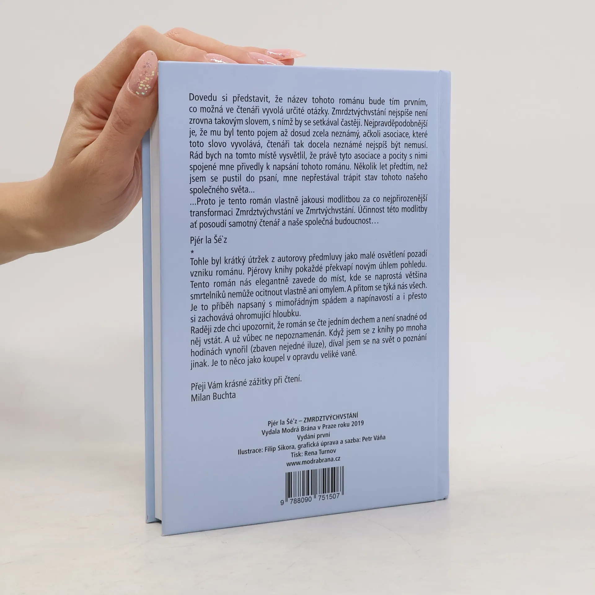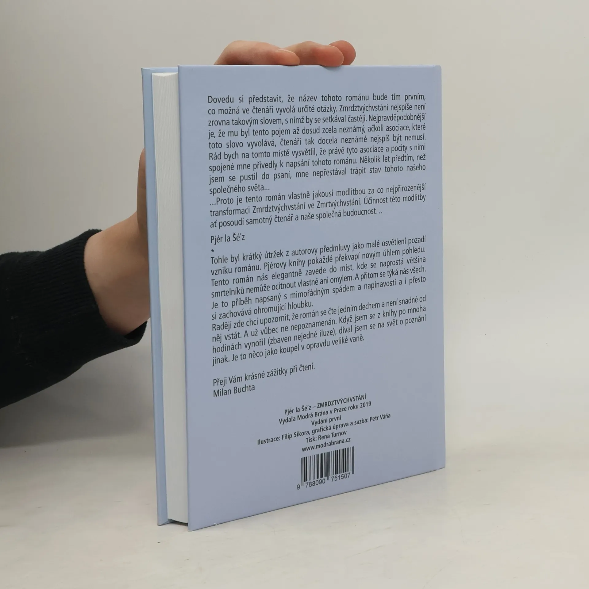 Tento román je vlastně jakousi modlitbou za co nejpřirozenější průběh transformace ze stavu světa, jež panuje nyní po vědomější stav, který přichází. Dovedu si představit, že název tohoto románu bude tím prvním, co možná ve čtenáři vyvolá určité otázky. Zmrdztýchvstání nejspíše není zrovna takovým slovem, s nímž by se setkával častěji. Nejpravděpodobnější je, že mu byl tento pojem až dosud zcela neznámý, ačkoli asociace, které toto slovo vyvolává, čtenáři tak docela neznámé nejspíš být nemusí. Rád bych na tomto místě vysvětlil, že právě tyto asociace a pocity s nimi spojené mne přivedly k napsání tohoto románu. Několik let předtím, než jsem se pustil do psaní, mne nepřestával trápit stav tohoto našeho společného světa... ...Proto je tento román vlastně jakousi modlitbou za co nejpřirozenější transformaci Zmrdztvýchvstání ve Zmrtvýchvstání. Účinnost této modlitby ať posoudí samotný čtenář a naše společná budoucnost... Pjér la Šé'z