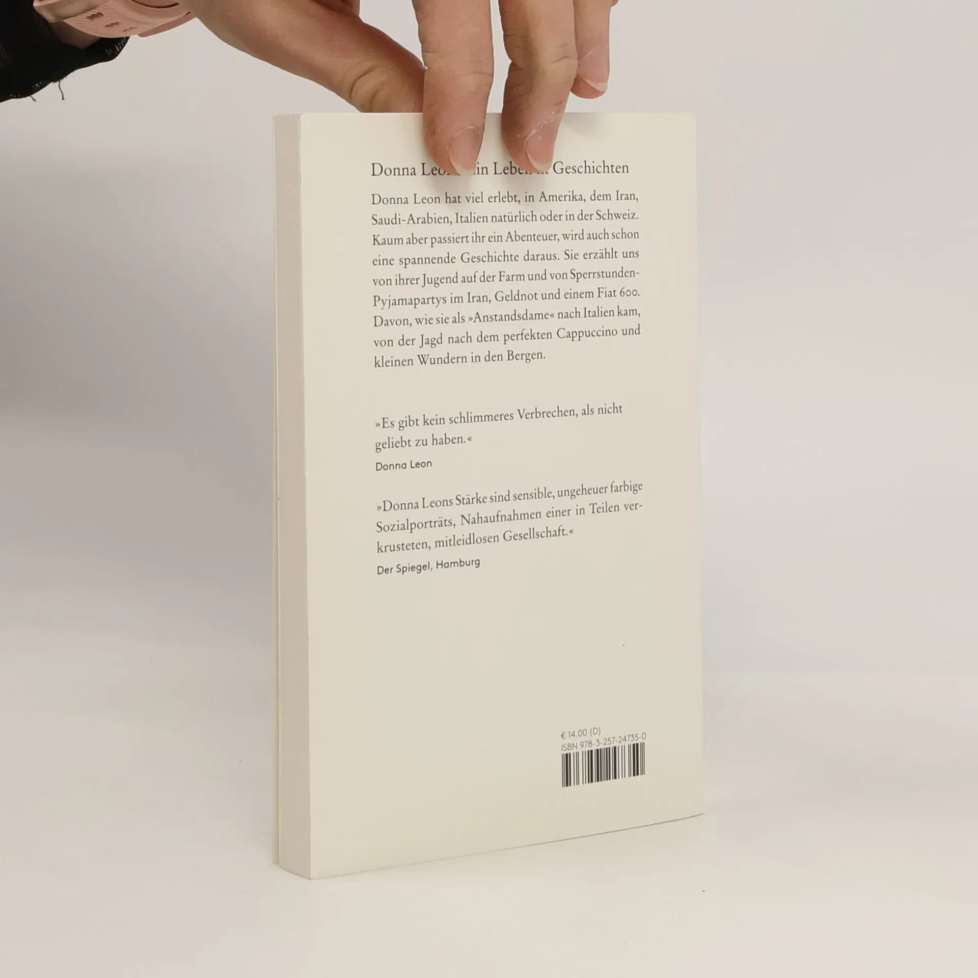 Donna Leon hat viel erlebt, in Amerika, dem Iran, Saudi-Arabien, Italien natürlich oder in der Schweiz. Kaum aber passiert ihr ein Abenteuer, wird auch schon eine spannende Geschichte daraus. Sie erzählt uns von ihrer Jugend auf der Farm und von Sperrstunden-Pyjamapartys im Iran, Geldnot und einem Fiat 600. Davon, wie sie als »Anstandsdame« nach Italien kam, von der Jagd nach dem perfekten Cappuccino und kleinen Wundern in den Bergen.