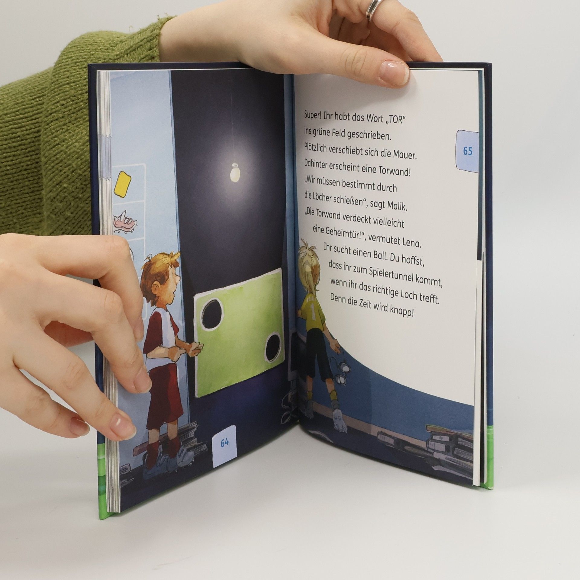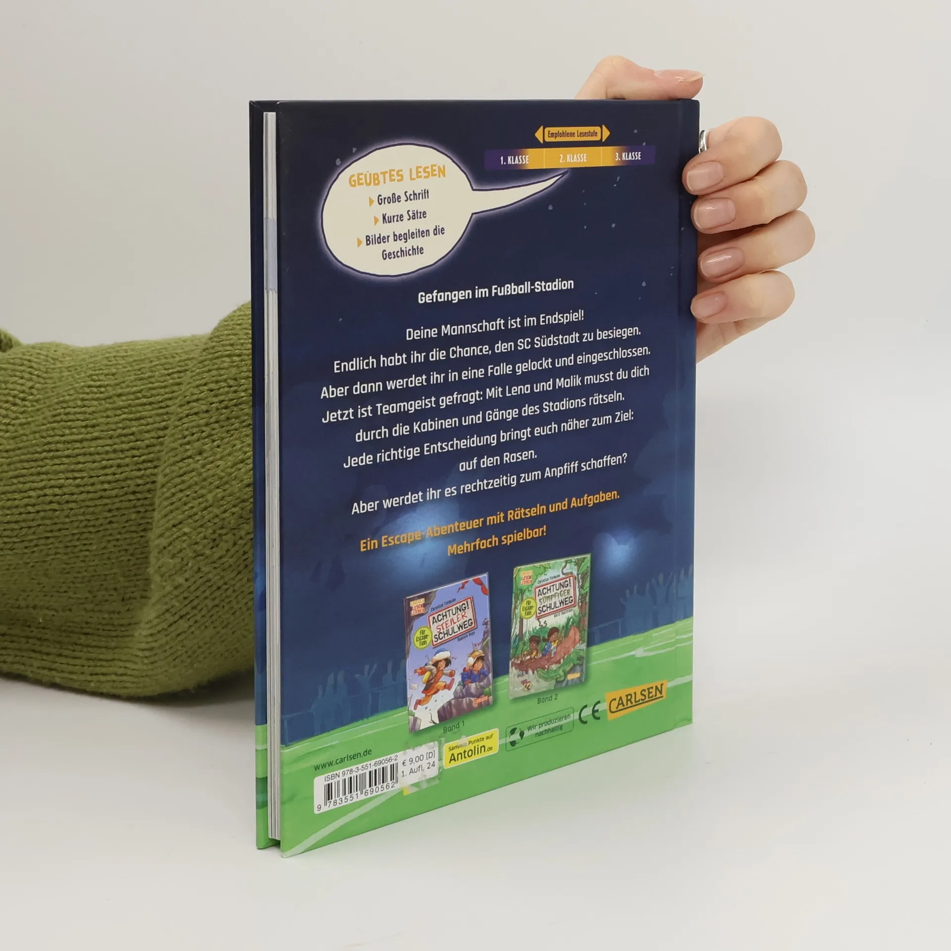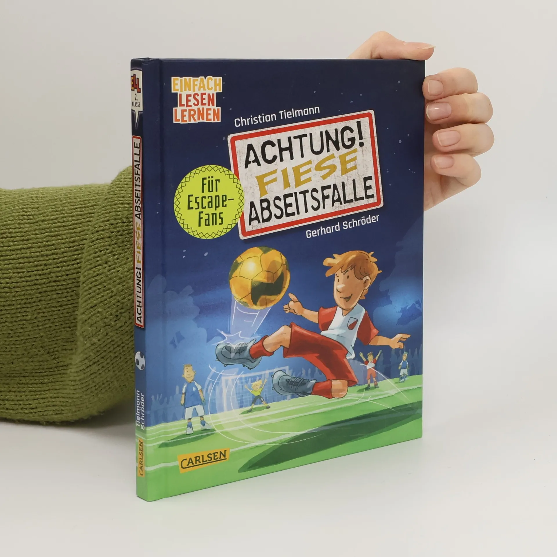 ***Interaktives Mitmachbuch zum Lesenlernen ab 6 Jahren***Für kleine Fußballfans zur EM 2024 in DeutschlandRätsel lösen und Tore schieß In diesem sportlichen Escape-Abenteuer ist der Mitmachspaß vorprogrammiert! Das Endlich den Angstgegner vom SC Südstadt besiegen. Doch um dorthin zu gelangen, müssen knifflige Aufgaben gelöst und Hindernisse überwunden werden. Jeder Fehler bedeutet eine Zwangspause in der Kabine oder eine Sackgasse im Grusel-Klo. Zum Glück spielen Lena und Malik im selben Team und stehen den rätselnden Kindern mit hilfreichen Tipps zur Seite, um sie auf den Rasen zu bringen. Ein mehrfach spielbares Escape-Buch, das alle Fußball begeisterten Kinder zum Lesen bringen wird!Spielerische Leseförderung von Erfolgsautor Christian Um die abwechslungsreichen Rätsel herum wird die spannende Story eines Fußballspiels erzählt. Dabei werden die Leser*innen nicht von zu viel Text überfordert, unterschiedliche Rätseltypen wie Buchstaben- und Zahlenrätsel, Suchbilder, Labyrinthe u.v.m. sorgen für Abwechslung.Einfach Lesen 2. Kurze Sätze, große SchriftKleine Texteinheiten in Kombination mit vielen bunten BildernComicelemente, um die Sehgewohnheiten von Kindern zu berücksichtigenSpannende interaktive Geschichte, mit der Lesenlernen Spaß machtAlle Bände der spannenden Achtung! Steiler SchulwegAchtung! Sumpfiger SchulwegAchtung! Fiese Abseitsfalle