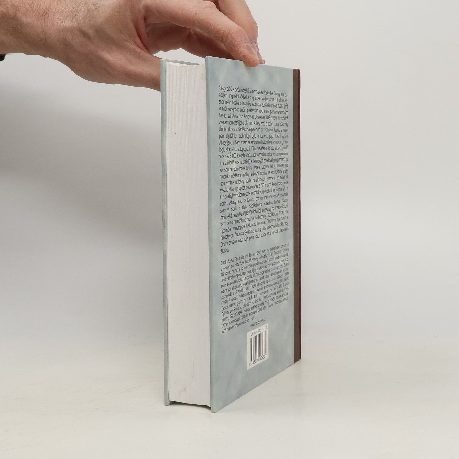 Atlasy erbů a pečetí české a moravské středověké šlechty jsou dokladem originální vědecké a grafické tvorby konce 19. století významného českého historika Augusta Sedláčka (1843-1926). Atlasy jsou určeny všem zájemcům o historickou heraldiku, genealogii, sfragistiku a topografii. Dílo, rozvržené do pěti svazků, přináší více než 5000 kreseb erbů, zachycených s dokumentární přesností na základě více než 3600 autentických středověkých pramenů, jako jsou pergamenové listiny, pečetě, erbovní listiny, rukopisy, náhrobníky, nástěnné malby i erbovní plastiky na architektuře. Znaky jsou vnitřně utříděny podle heraldických znamení. Druhý svazek obsahuje první část edice erbů české středověké šlechty. Zpracoval a k vydání připravil Vladimír Růžek. ISBN 80-200-0933-7 (soubor, 5 svazků)