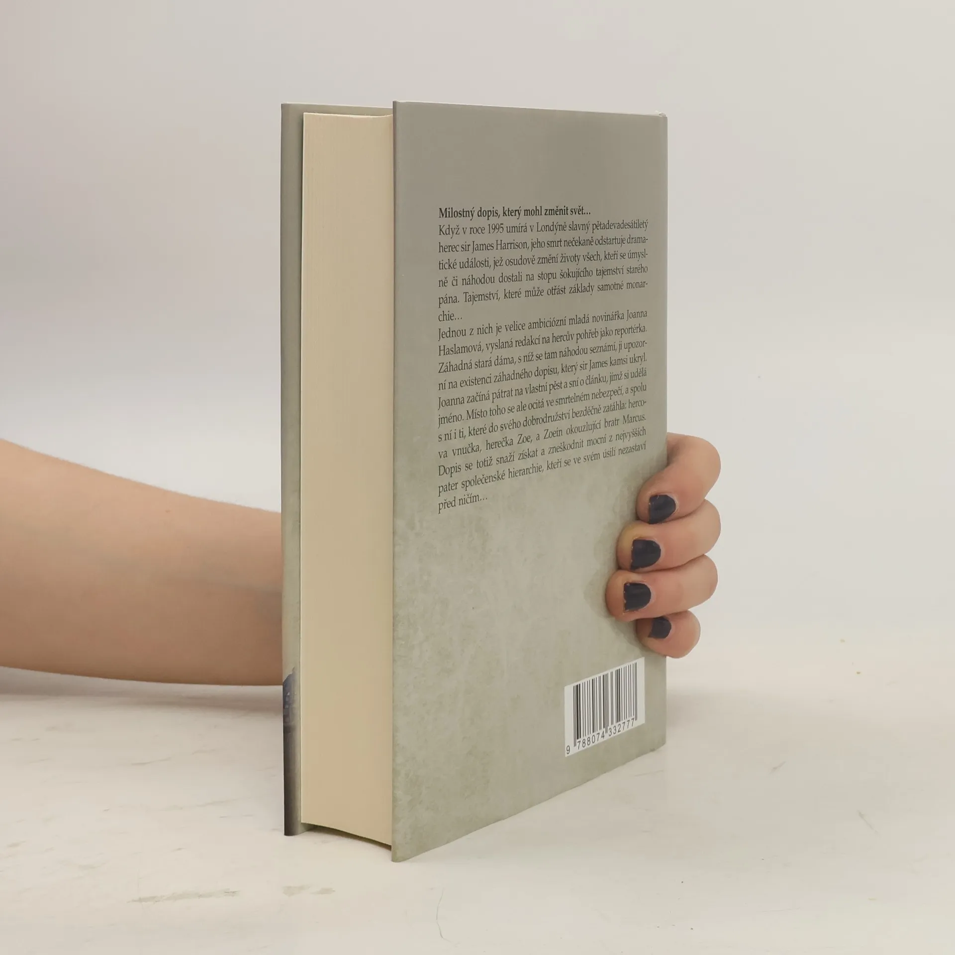 Milostný dopis, který mohl změnit svět… Když v roce 1995 umírá v Londýně slavný pětadevadesátiletý herec sir James Harrison, jeho smrt nečekaně odstartuje dramatické události, jež osudově změní životy všech, kteří se úmyslně či náhodou dostali na stopu šokujícího tajemství starého pána. Tajemství, které může otřást základy samotné monarchie… Jednou z nich je velice ambiciózní mladá novinářka Joanna Haslamová, vyslaná redakcí na hercův pohřeb jako reportérka. Záhadná stará dáma, s níž se tam náhodou seznámí, ji upozorní na existenci záhadného dopisu, který sir James kamsi ukryl. Joanna začíná pátrat na vlastní pěst a sní o článku, jímž si udělá jméno. Místo toho se ale ocitá ve smrtelném nebezpečí, a spolu s ní i ti, které do svého dobrodružství bezděčně zatáhla: hercova vnučka, herečka Zoe, a Zoein okouzlující bratr Marcus. Dopis se totiž snaží získat a zneškodnit mocní z nejvyšších pater společenské hierarchie, kteří se ve svém úsilí nezastaví před ničím…