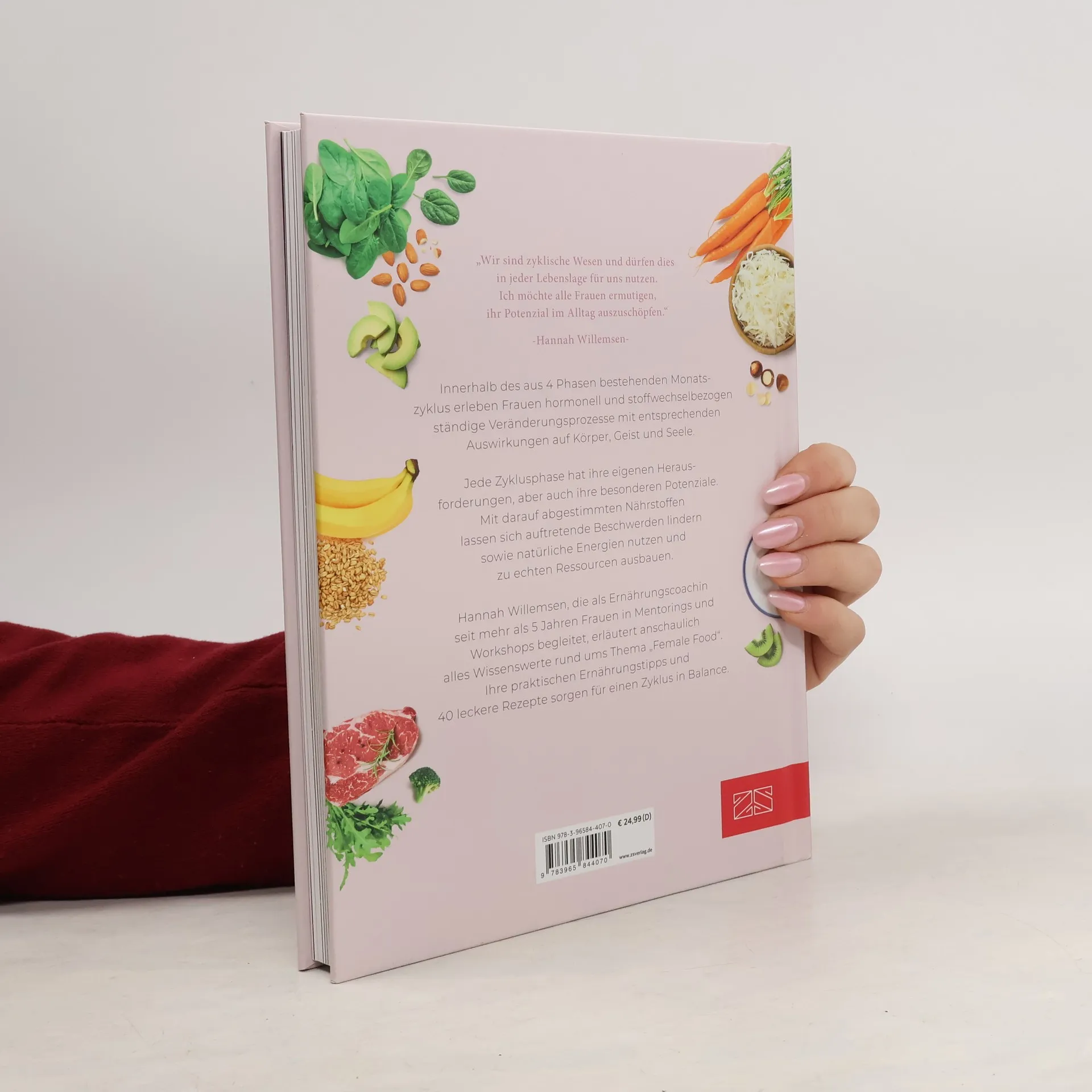 „Wir sind zyklische Wesen und dürfen dies in jeder Lebenslage für uns nutzen. Ich möchte alle Frauen ermutigen, dieses Potenzial in ihrem Alltag auszuschöpfen" – sagt Hannah Willemsen, die als Ernährungscoach seit über 5 Jahren Frauen in Mentorings und Workshops begleitet. Innerhalb eines Zykluslaufs, der aus 4 Phasen besteht, erleben Frauen hormonell und stoffwechselbezogen ständige Veränderungsprozesse mit entsprechenden Auswirkungen auf Körper, Geist und Seele. Jede Zyklusphase hat ihre Needs, aber auch ihre Potenziale. Mit jeweils passend darauf abgestimmten Nährstoffen und 40 Rezepten lassen sich möglicherweise auftretende Blockaden auflösen und Beschwerden lindern, sowie natürliche Energien nutzen und zu echten Ressourcen ausbauen. Das Ganze völlig ohne Medikamente – und lecker noch dazu!