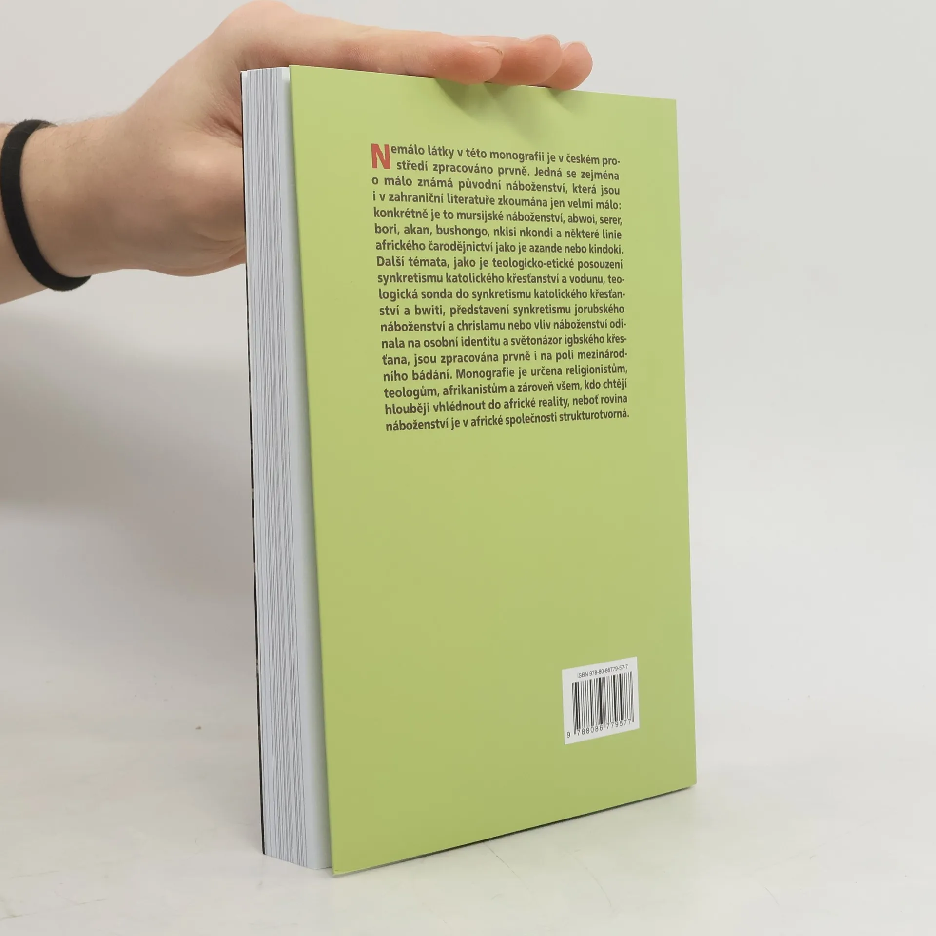 Nemálo látky v této monografii je v českém prostředí zpracováno prvně. Jedná se zejména o málo známá původní náboženství, která jsou i v zahraniční literatuře zkoumána jen velmi málo: konkrétně je to mursijské náboženství, abwoi, serer, bori, akan, bushongo, Nkisi Nkondi a některé linie afrického čarodějnictví jako je azande nebo kindoki. Další témata, jako je teologicko- etické posouzení synkretismu katolického křesťanství a vodunu, teologická sonda do synkretismu katolického křesťanství a bwiti, představení synkretismu jorubského náboženství a chrislamu nebo vliv náboženství odinala na osobní identitu a světonázor igbského křesťana, jsou zpracována prvně i na poli mezinárodního bádání. Monografie je určena religionistům, teologům, afrikanistům a zároveň všem, kdo chtějí hlouběji vhlédnout do africké reality, neboť rovina náboženství je v africké společnosti strukturotvorná.