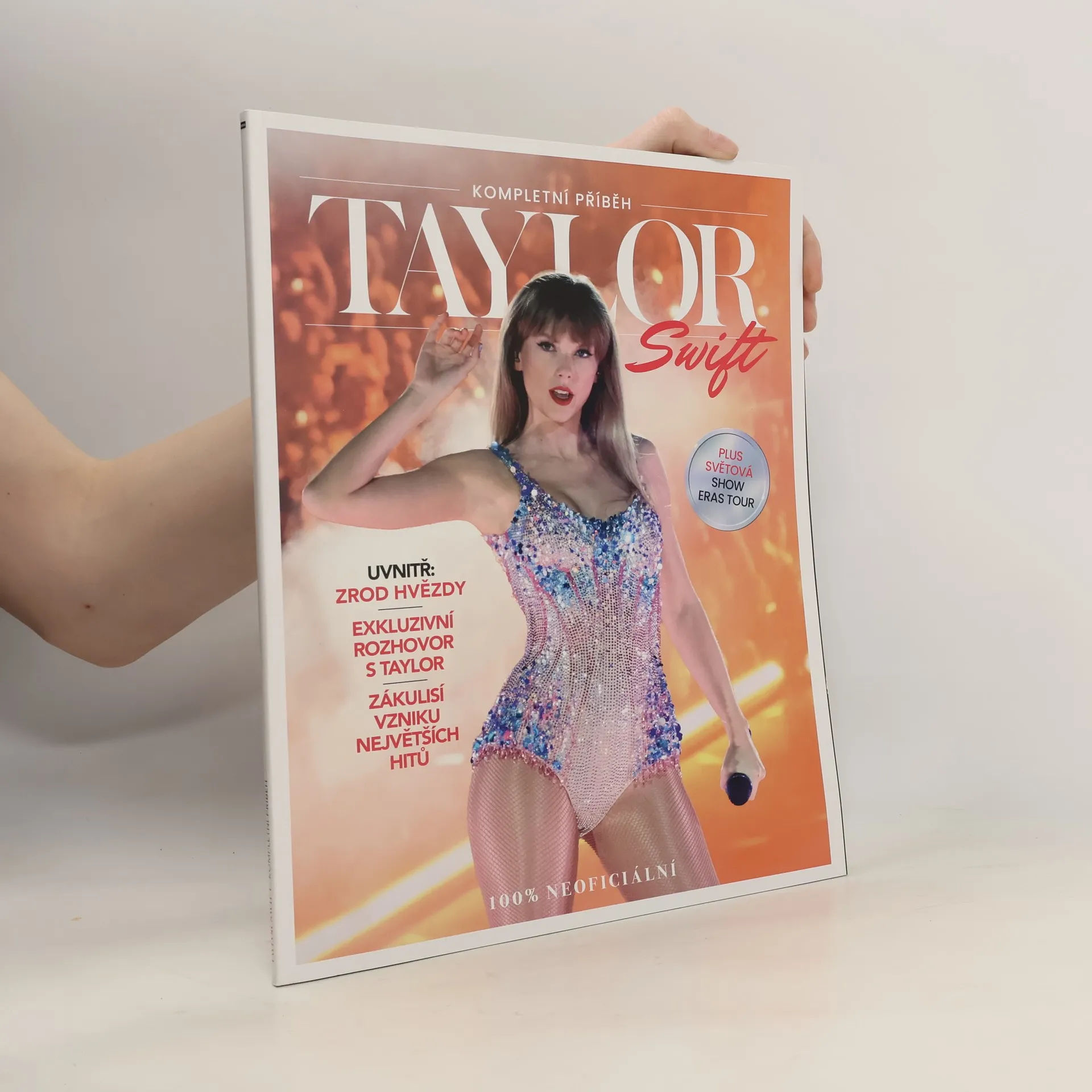Zažijte kompletní příběh Taylor Swift, největší hudební superhvězdy! Projděte s ní její život od rodinné kolébky, přes první úspěchy, žánrové proměny, až po úplný vrchol v podobě žhavého megaturné Eras. Tahle americká popová zpěvačka a písničkářka si podmanila celý svět, koncertuje, skládá a sbírá i hudební ceny – a zpravidla z takových slavnostních večerů odchází s plnou náručí. Jen Ceny MTV jí už čtyřikrát vynesly ocenění v kategorii Video roku, naposledy za klip k písni Anti-Hero. Znovu nahrává svůj starší hudební materiál, aby si nad ním udržela plnou kontrolu, což je odvážným průlomem v hudební branži, který nemá obdoby. S nadhledem čelí spekulacím fanoušků i médií o tom, s kým se právě vídá, a s kým už ne. Její turné Eras strhalo všechny myslitelné rekordy. Fanoušci, kteří si říkají swifties, neváhají létat na koncerty své hrdinky přes půl planety, a mnozí si dopřávají neopakovatelnou atmosféru jejích vystoupení znovu a znovu. Zveme vás poznat všechny tvůrčí éry Taylor Swift v této informacemi i jedinečnými fotografiemi nabité knížce: Pronikněte do tajů skládání písní, zjistěte více o vzniku zpěvaččiných nejslavnějších videoklipů i o jejích filmařských ambicích před i za kamerou, a díky exkluzivnímu rozhovoru se s Taylor potkejte doslova osobně!