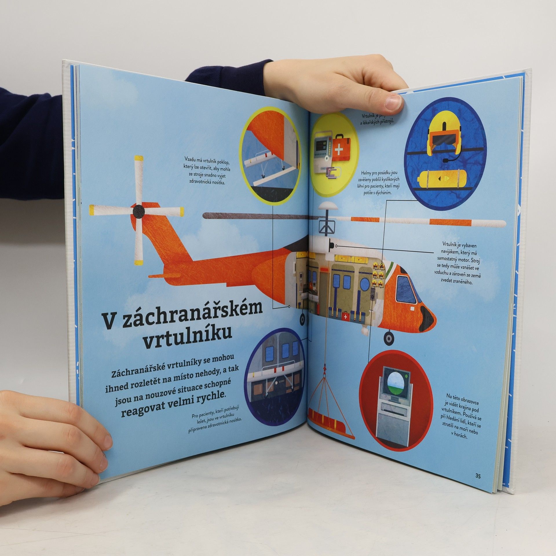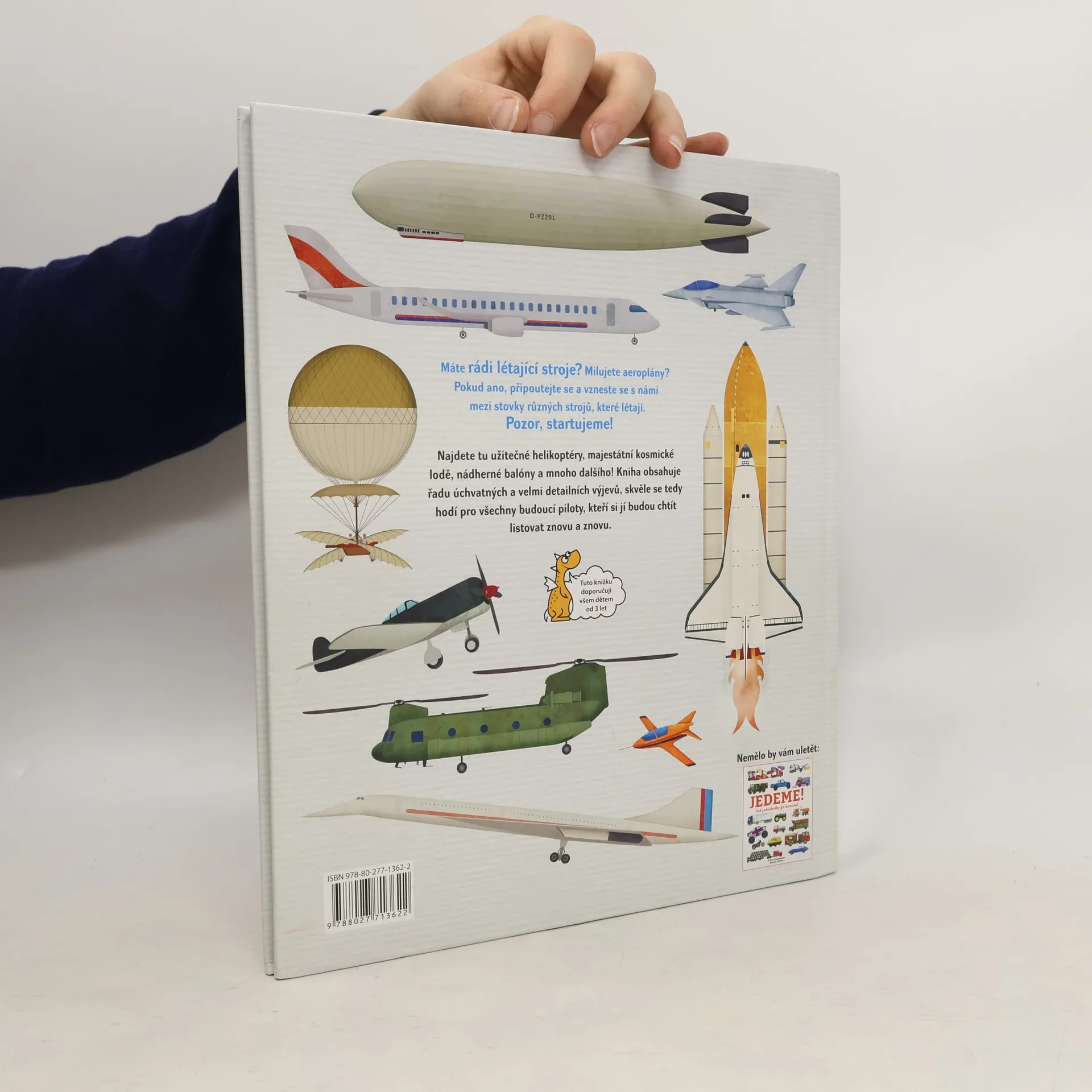 Máte rádi létající stroje? Milujete aeroplány? Pokud ano, připoutejte se a vzneste se s námi mezi stovky různých strojů, které létají. Pozor, startujeme! Najdete tu užitečné helikoptéry, majestátní kosmické lodě, nádherné balóny a mnoho dalšího! Kniha obsahuje řadu úchvatných a velmi detailních výjevů, skvěle se tedy hodí pro všechny budoucí piloty, kteří si jí budou chtít listovat znovu a znovu.
