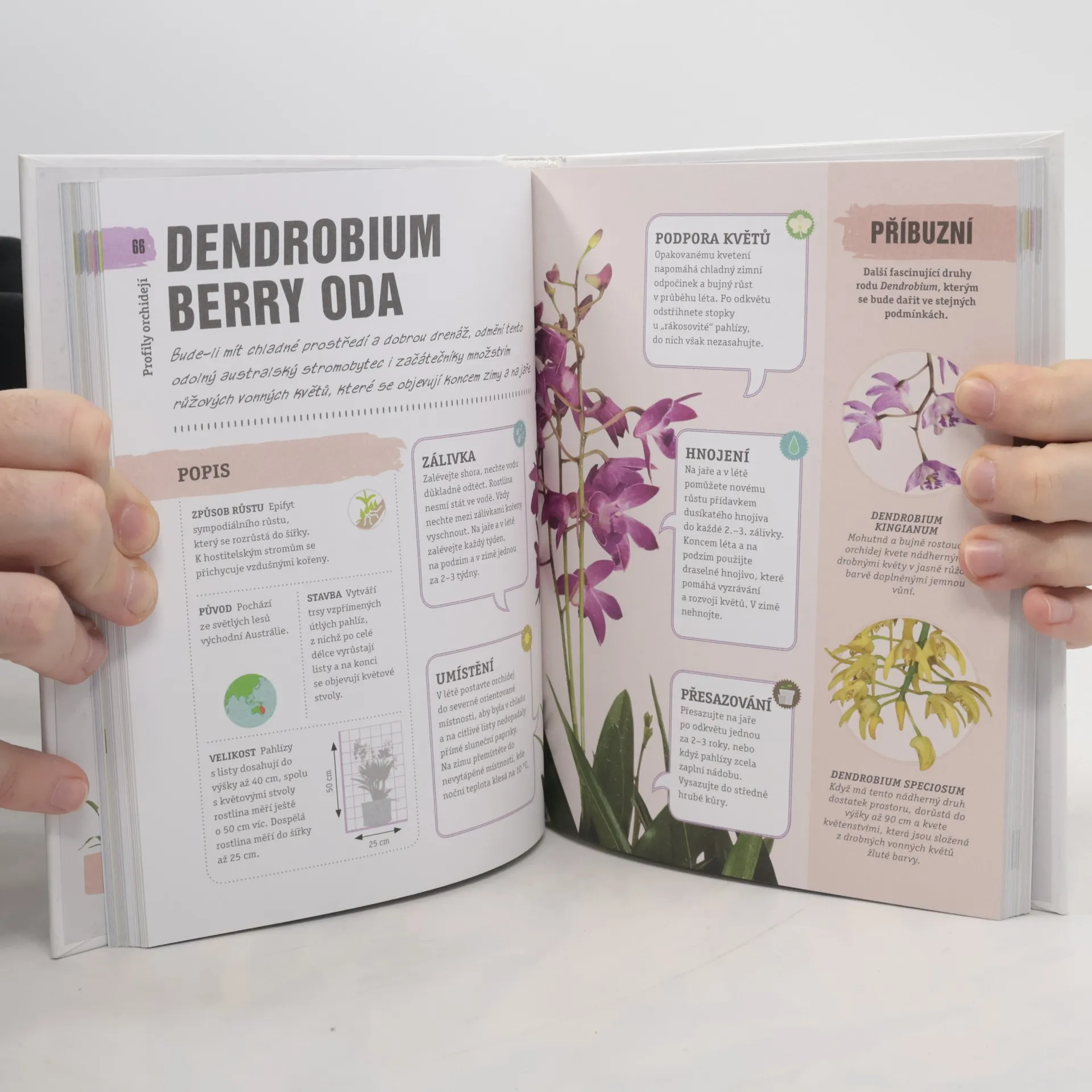 Vítejte ve světě orchidejí Nápaditá obrazová publikace se věnuje pěstování orchidejí a všemu, co byste měli vědět, aby vám tyto exotické krásky kvetly a prospívaly. Názornou formou s využitím detailních fotografií, piktogramů, barevných rámečků a grafů vám příručka představí jedinečnost a neskutečnou rozmanitost těchto specifických květin, které patří do největší skupiny kvetoucích rostlin na světě. Kromě nezbytných rad ohledně zalévání a potřeby světla zde najdete i praktické informace o přesazování a množení orchidejí stejně jako typech substrátu a škůdcích – a především podrobné portréty více než stovky druhů. Obrazový průvodce pro zdravé a spokojené rostliny.