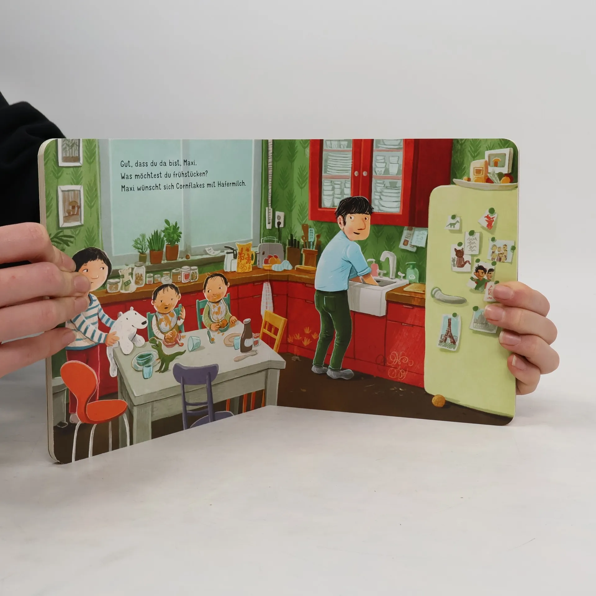 Kuss, Kuss, Kuss, wachgeküsst! Als Papa Maxi am Morgen weckt, ist es viel zu hell. Im Bad ist es viel zu kalt und die Kleider im Schrank sind viel zu pieksig. In der Küche ist es viel zu spannend, denn da steht ein Dino und beäugt das Müsli. Unmöglich, sich da zu beeilen! Ob Papa und Maxi es trotzdem noch pünktlich aus der Haustür schaffen? Einfühlend, blicköffnend und bedürfnisorientiert erzählen die Wunschkind-Erfolgsautorinnen vom allmorgendlichen Hürdenlauf und wie Familien ihn leichtfüßiger gemeinsam bewältigen können.
