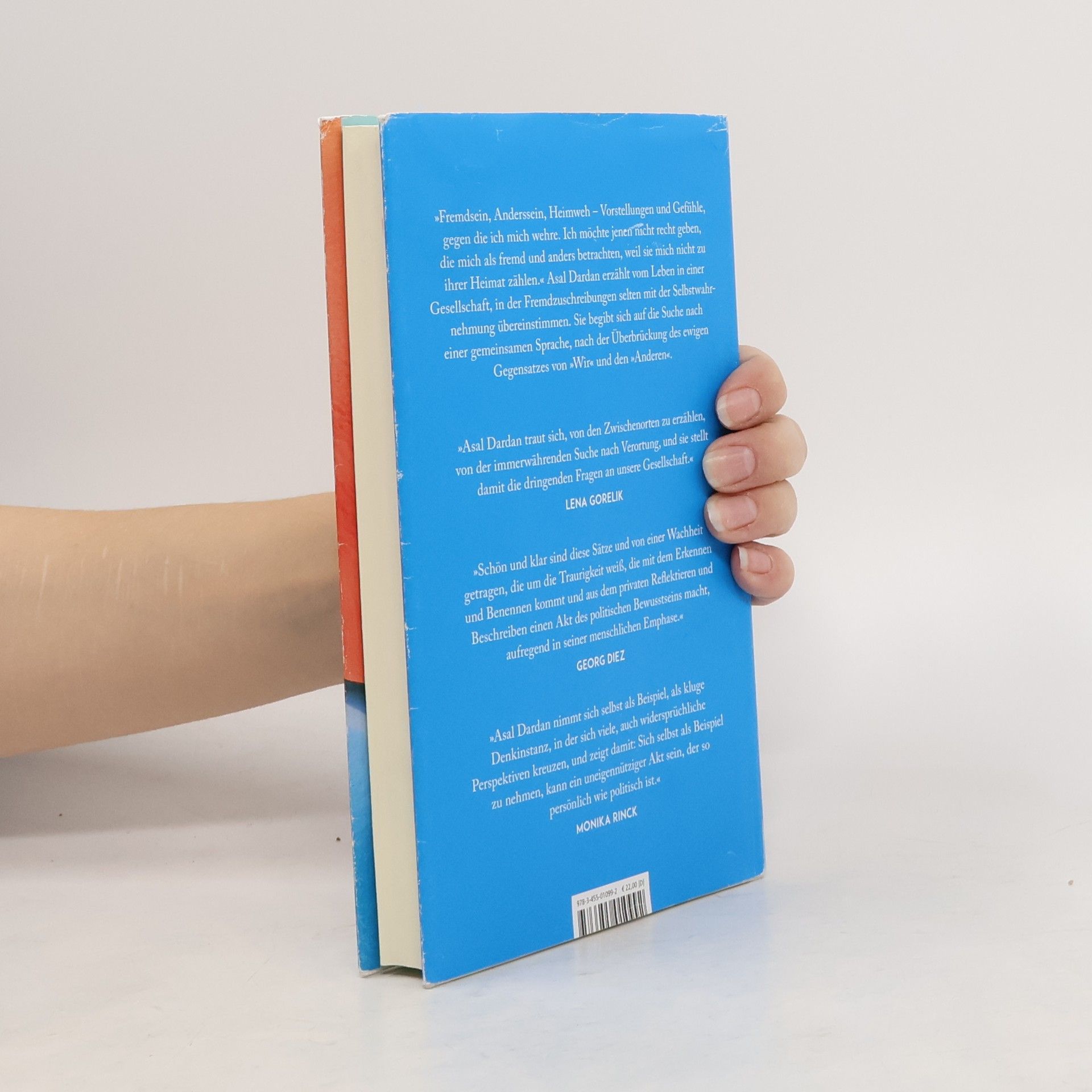 “Asal Dardan traut sich, von den Zwischenorten zu erzählen, von der immerwährenden Suche nach Verortung, und sie stellt damit die dringenden Fragen an unsere Gesellschaft.” Lena Gorelik Als Kind iranischer Eltern ist Asal Dardan in Deutschland aufgewachsen, die Erfahrung des Exils hat sie geprägt. In einer erhellenden Auseinandersetzung mit der deutschen Gesellschaft begibt sie sich auf die Suche nach einer gemeinsamen Sprache, nach der Überbrückung des ewigen Gegensatzes von „Wir“ und den „Anderen“. Immer ist ihr Blick überraschend, immer ist ihre Analyse scharfsichtig. Da ist das geflüchtete Kind, das Trost in Spitzwegs heimeligen Bildern findet, die auch Hitler so gut gefielen. Da sind die bürokratischen Rentenbescheide der sardischen Nachbarin, deren Inhalte niemand entschlüsseln kann. Da werden die Goldfische vom persischen Neujahrsfest in die Freiheit entlassen und eigene, neue Traditionen gewählt. Sprachlich brillant und stilistisch elegant schlägt die Autorin Bögen von der ganz persönlichen Erfahrung zum gesellschaftlich-politisch Brisanten und zeigt auf, dass Zusammenleben bedeutet, Differenz anzunehmen.