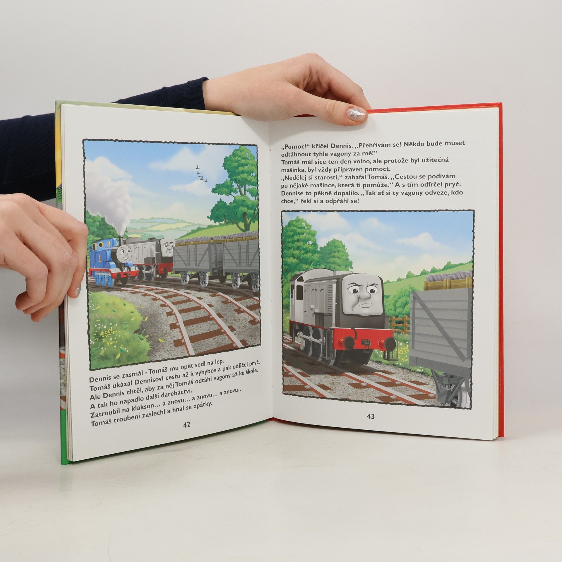 Ahóój! Tomáš a ostatní užitečné mašinky vám vezou dalších pět příběhů z ostrova Sodor. Přečtěte si o automobilu Caroline, o mašince Arthurovi, která si moc zakládala na své pověsti, o líné dieslové mašince Dennisovi, o bagru Alfiem a také o tlustém kontrolorovi, který musel některým mašinkám připomenout, jak se mají chovat, aby byly užitečné. Ale protože mašinky věděly, že je má rád, začaly ho zase poslouchat.