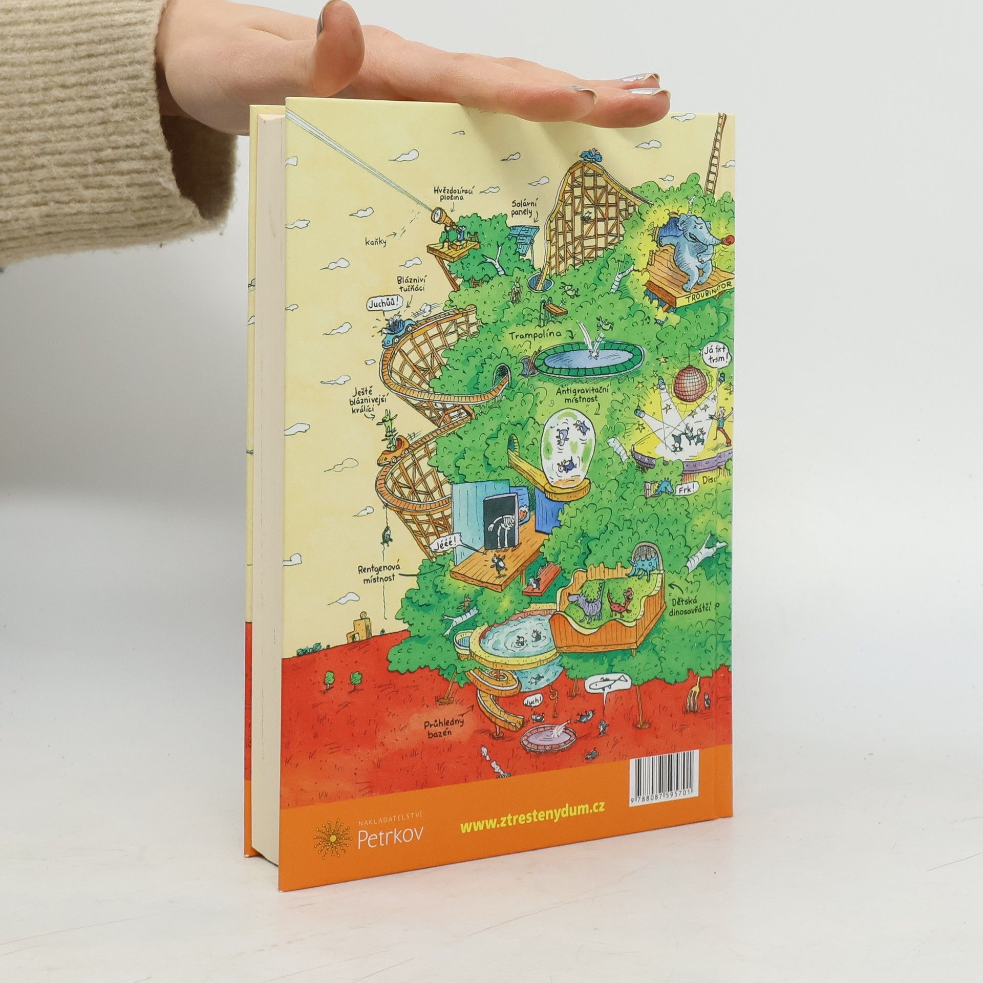 Pojďte se s námi podívat za Andym a Terrym do jejich nově rozšířeného devětatřicetipatrového domu na stromě! Čeká vás 13 zbrusu nových, akčních poschodí. Najdete tu například nejděsivější horskou dráhu na světě, operní dům, buldozerové bitevní pole, diskotéku se světelnou podlahou a obří disko-koulí, arénu s boxovacím slonem, který si říká Troubinátor, špičkově vybavenou kancelář s opakovacími poloautomatickými sešívačkami, laserovými gumami a katapultovacími kancelářskými křesly. Tak na co čekáte? Čtěte!
