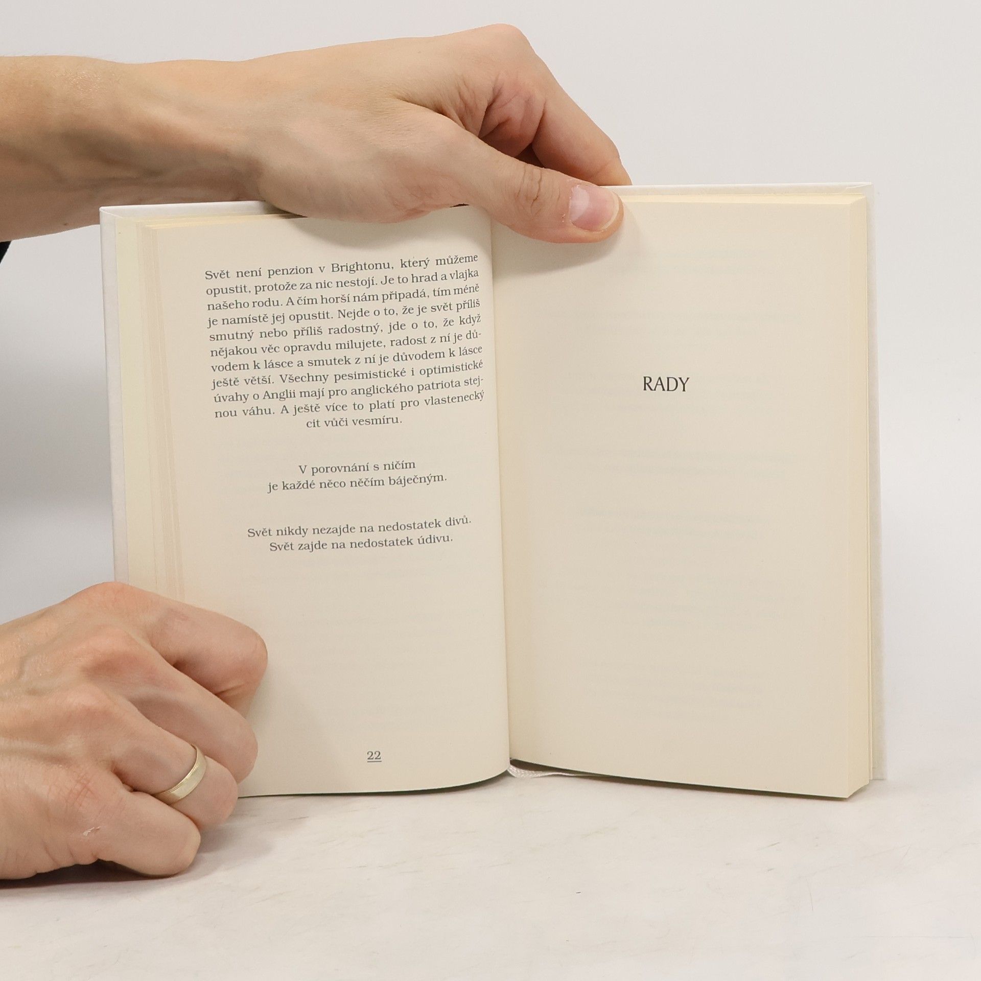 Gilbert Keith Chesterton se proslavil mnoha literárními žánry, ale hlavní důvod, proč stále patří k nejcitovanějším autorům světa, naleznete v této útlé knížce. Chesterton byl totiž mistrem paradoxu. Povýšil společenský bonmot na životní filosofii zdravého rozumu, na obranu občanské liberální politiky a tradičních hodnot evropské kultury. A ještě něco navíc: Chesterton je úvodem do světa tisíce malých překvapení a radostí ze života, proto byl tolik milován i těmi, kteří ne scela sdíleli jeho životní filosofii. U nás to byli především Ferdinand Peroutka, Karel Čapek, Jiří Voskovec, Jan Werich, Ivan Vyskočil a Jiří Suchý. Alexander Tomský vybral a přeložil téměř 450 úryvků z Chestertonova díla. Zhruba jedna třetina uvedených citátů pochází z knižních vydání novinových esejů a sloupků, napsaných před 1. světovou válkou. Druhá třetina pochází z novin a časopisů, které knižně nevyšly, hlavně z Illustrated London News a Daily News. Ostatní pocházejí z próz a monografií. 2. vydání.