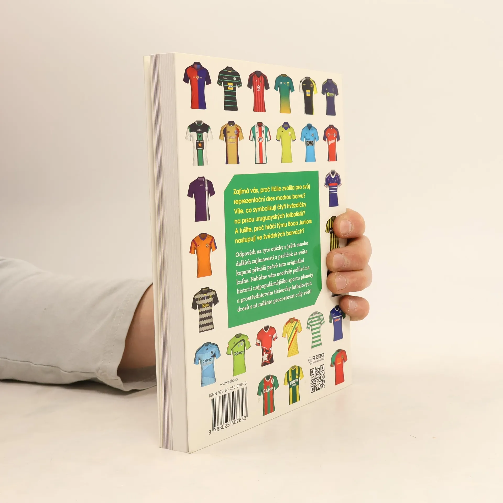 Zajímá vás, proč Itálie zvolila pro svůj reprezentační dres modrou barvu? Víte, co symbolizují čtyři hvězdičky na prsou uruguayských fotbalistů? A tušíte, proč hráči týmu Boca Juniors nastupují ve švédských barvách? Odpovědi na tyto otázky a ještě mnoho dalších zajímavostí a perliček ze světa kopané přináší právě tato originální kniha. Nabídne vám neotřelý pohled na historii nejpopulárnějšího sportu planety a prostřednictvím tisícovky fotbalových dresů s ní můžete procestovat celý svět! •realistické vyvedení aktuálních i historických dresů •v první části knihy jsou národní týmy seřazeny zejména podle úspěchů na mistrovství světa, až poté podle výsledků na ostatních mezinárodních turnajích, pořadí klubů především na základě výsledků v pohárech •v druhé části knihy řazení národních týmů podle pořadí v žebříčku Mezinárodní federace fotbalových historiků a statistiků (IFFHS) •předmluva sběratele dresů, prezidenta fotbalového klubu Montpellier, Louise Nicollina •rejstřík klubů a národních týmů