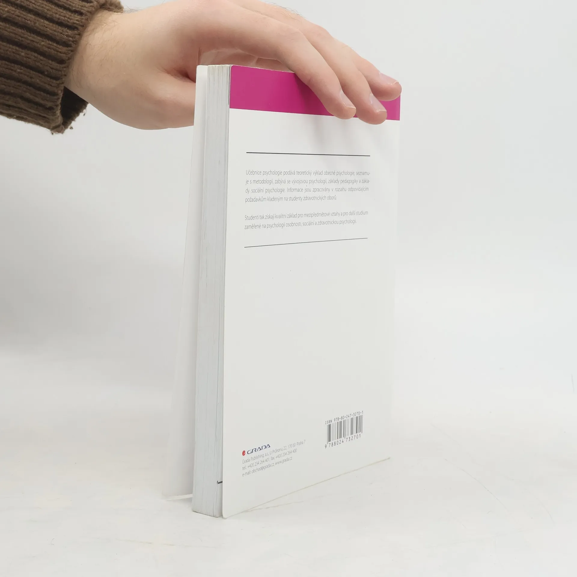 Učebnice psychologie podává teoretický výklad obecné psychologie, seznamuje s metodologií, zabývá se vývojovou psychologii, základy pedagogiky a základy sociální psychologie. Informace jsou zpracovány v rozsahu odpovídajícím požadavkům kladeným na studenty zdravotnických oborů. Studenti tak získají kvalitní základ pro mezipředmětové vztahy a pro další studium zaměřené na psychologii osobnosti, sociální a zdravotnickou psychologii.