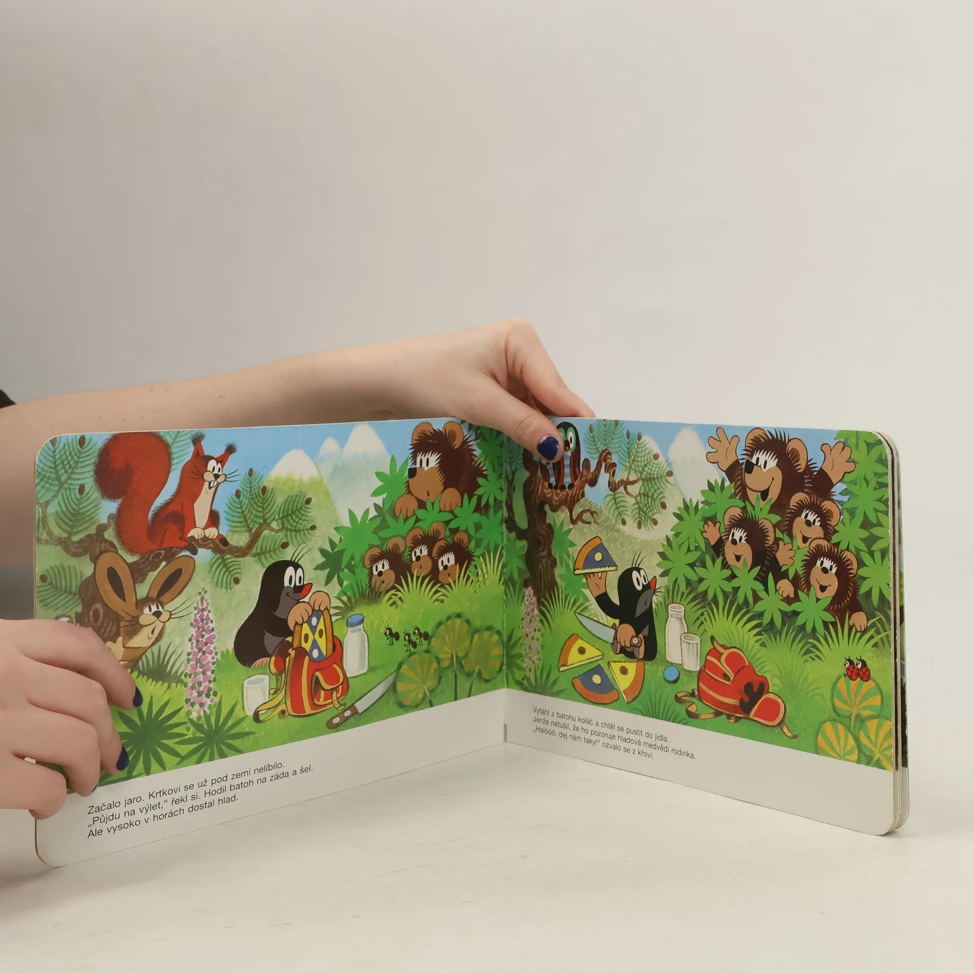 Příběh medvědí rodinky a oblíbeného krtečka. Ilustrované leporelo pro předškolní děti.