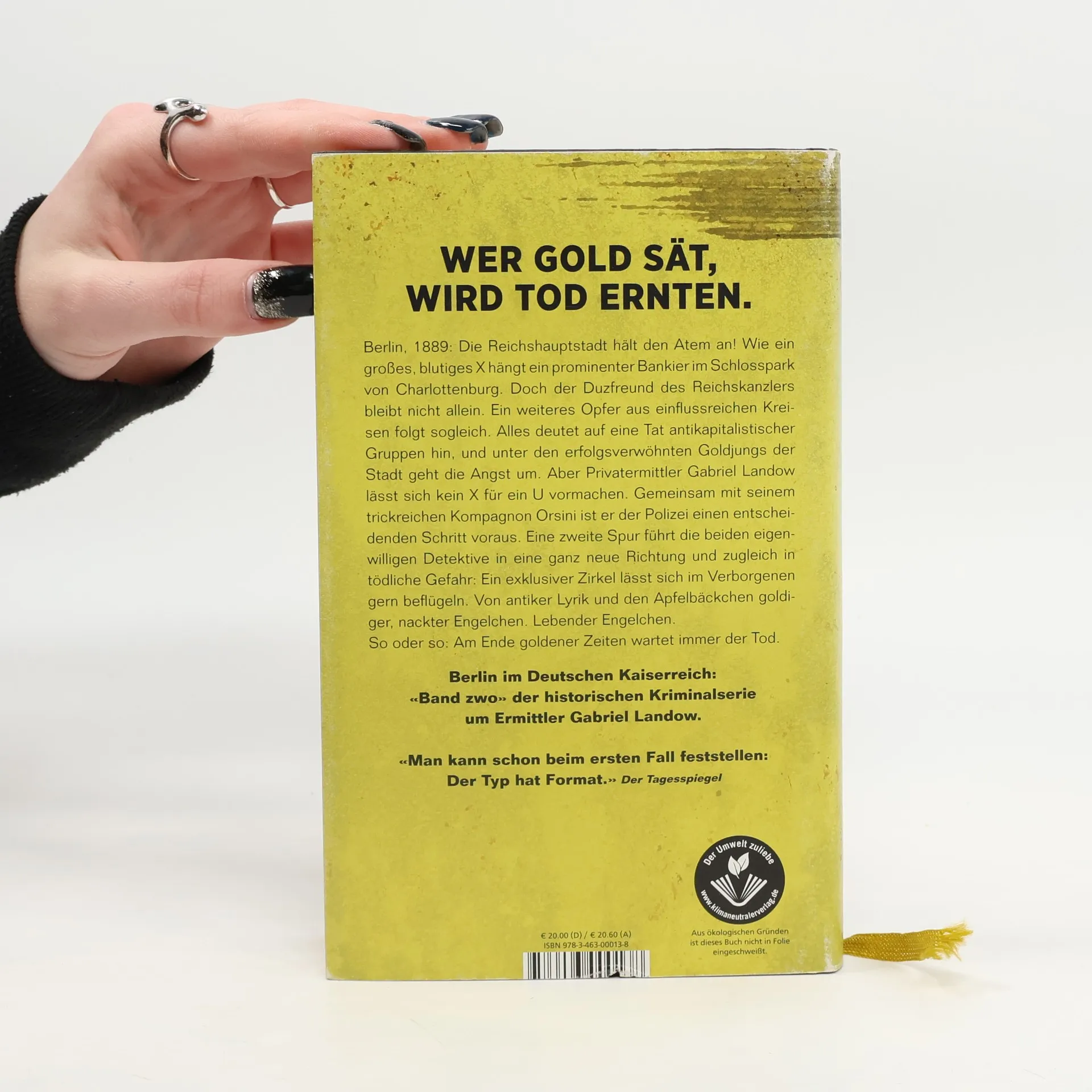 Mitreißend lebendig, verbrecherisch gut. Die Erfolgsserie aus dem Berlin des Kaiserreichs geht weiter. Berlin, 1889: Die Reichshauptstadt hält den Atem an! Wie ein großes, blutiges X hängt ein prominenter Bankier im Schlosspark von Charlottenburg. Doch der Duzfreund des Reichskanzlers bleibt nicht allein. Ein weiteres Opfer aus einflussreichen Kreisen folgt sogleich. Alles deutet auf eine Tat antikapitalistischer Gruppen hin. Unter den erfolgsverwöhnten Goldjungs geht schon die Angst um. Aber Privatermittler Gabriel Landow lässt sich kein X für ein U vormachen. Gemeinsam mit seinem trickreichen Kompagnon Orsini ist er der Polizei immer einen Schritt voraus. Eine zweite Spur führt die beiden Detektive in einen Zirkel von Liebhabern unschuldiger Engelchen – und zugleich in tödliche Gefahr. So erzählt niemand sonst über das Berlin im Deutschen Kaiserreich: «Band zwo» der historischen Kriminalserie um den unkonventionellen Ermittler Gabriel Landow.