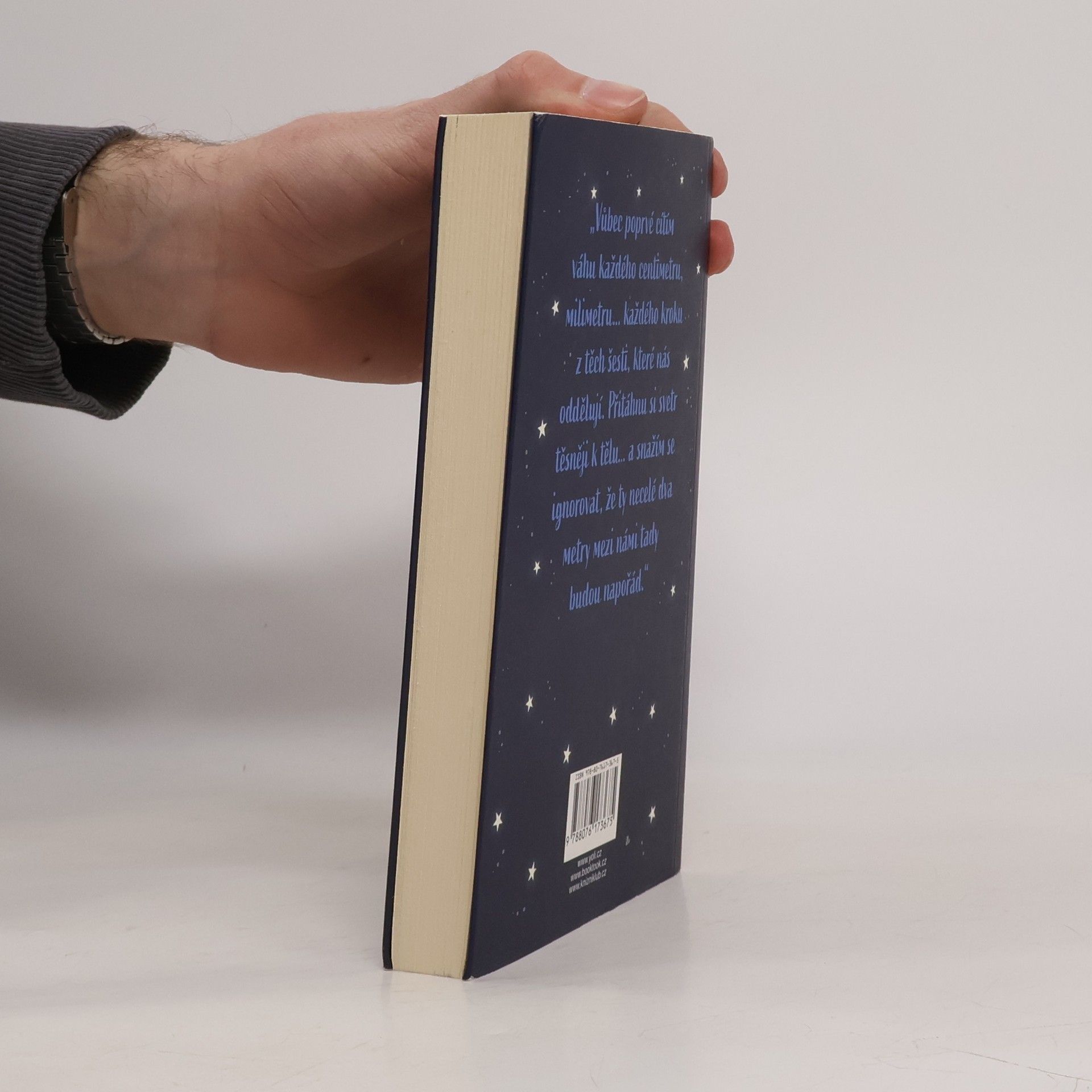Stella Grantová má cystickou fibrózu a její kontakt s okolním světem je minimální. Aby neohrozila své šance na transplantaci, musí se chránit před kýmkoli a čímkoli, co by mohlo být nositelem infekce. Šest stop. To je vzdálenost, kterou musí dodržovat. Šest stop – bez výjimky. Willa Newmana léčba vůbec nezajímá. Každým dnem mu bude osmnáct a pak – sbohem, nemocnice. Vykašle se na léky a konečně si bude užívat života. Will je přesně tím, od koho by se Stella měla držet dál. Pokud se k němu přiblíží a nakazí se, mohla by přijít o své místo na seznamu čekatelů. Aby se tak nestalo, musí si držet odstup. Čím víc se ale s Willem sbližují, tím víc jim předepsaných šest stop začíná připadat jako trest. Jaké by to asi bylo, kdyby si pro sebe mohli ukrást trochu té svobody, kterou jim vzala jejich nemoc? Co by se stalo, kdyby zkrátili vzdálenost na pět stop?