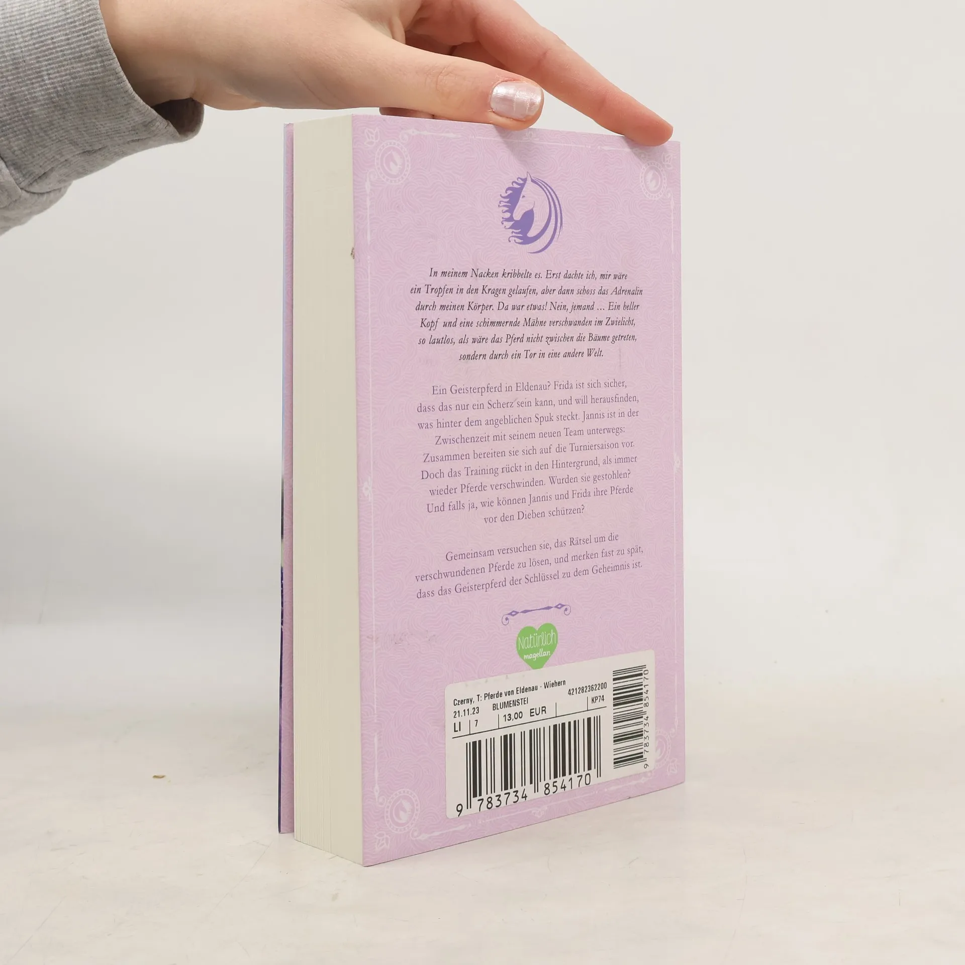 Ein Geisterpferd in Eldenau? Frida ist sich sicher, dass das nur ein Scherz sein kann, und will herausfinden, was hinter dem angeblichen Spuk steckt. Jannis ist in der Zwischenzeit mit seinem neuen Team unterwegs: Zusammen bereiten sie sich auf die Turniersaison vor. Doch das Training rückt in den Hintergrund, als immer wieder Pferde verschwinden. Wurden die Pferde gestohlen? Und falls ja, wie können Jannis und Frida ihre Pferde vor den Dieben schützen? Gemeinsam versuchen sie, das Rätsel um die verschwundenen Pferde zu lösen, und merken fast zu spät, dass das Geisterpferd der Schlüssel zu dem Geheimnis ist. Pferdediebstahl, Springreiten, Natural Horsemanship und die erste Liebe: Dieses spannende Pferdebuch begeistert mit seiner Vielschichtigkeit alle Reiterinnen und Reiter.