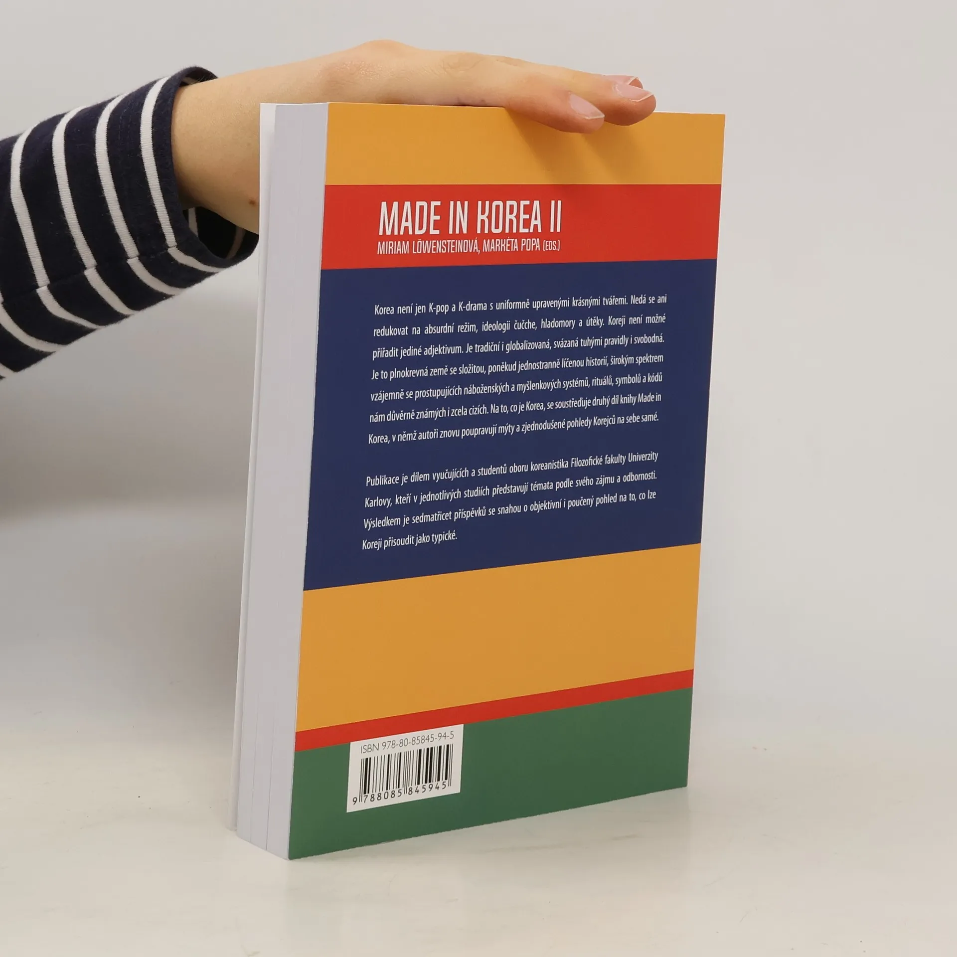 Pokračování úspěšného sborníku Made in Korea přináší dalších třicet sedm pohledů na rozdělený poloostrov. Korea není jen K-pop a K-drama s uniformně upravenými krásnými tvářemi. Nedá se ani redukovat na absurdní režim, ideologii čučche, hladomory a útěky. Koreji není možné přiřadit jediné adjektivum. Je tradiční i globalizovaná, svázaná tuhými pravidly i svobodná. Je to plnokrevná země se složitou, poněkud jednostranně líčenou historií, širokým spektrem vzájemně se prostupujících náboženských a myšlenkových systémů, rituálů, symbolů a kódů nám důvěrně známých i zcela cizích. Na to, co je Korea, se soustřeďuje druhý díl knihy Made in Korea, v němž autoři znovu poupravují mýty a zjednodušené pohledy Korejců na sebe samé. Publikace je dílem vyučujících a studentů oboru koreanistika Filozofické fakulty Univerzity Karlovy, kteří v jednotlivých studiích představují témata podle svého zájmu a odbornosti. Výsledkem je sedmatřicet příspěvků se snahou o objektivní i poučený pohled na to, co lze Koreji přisoudit jako typické.