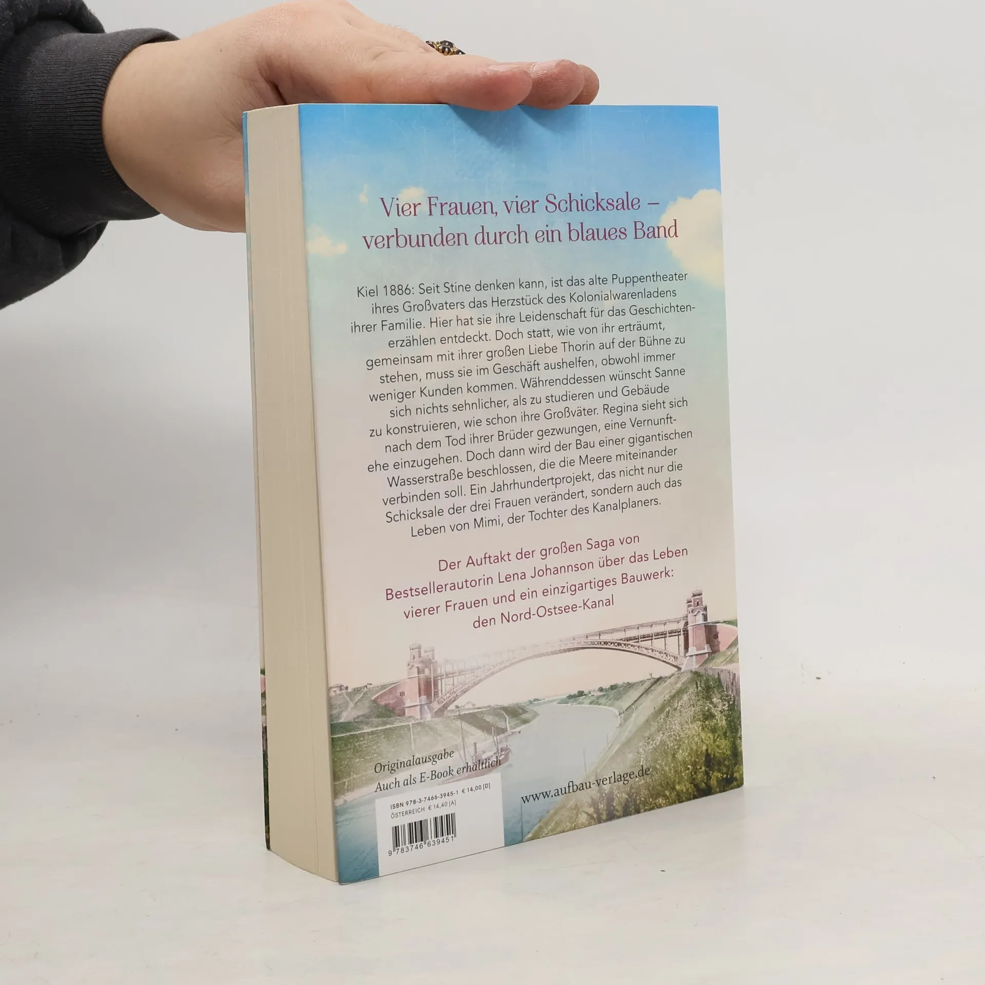 Vier Frauen, vier Schicksale – verbunden durch ein blaues Band Kiel 1886: Seit Stine denken kann, ist das alte Puppentheater ihres Großvaters das Herzstück des Kolonialwarenladens ihrer Familie. Hier hat sie ihre Leidenschaft für das Geschichtenerzählen entdeckt. Doch statt, wie von ihr erträumt, gemeinsam mit ihrer großen Liebe Thorin auf der Bühne zu stehen, muss sie im Geschäft aushelfen, obwohl immer weniger Kunden kommen. Währenddessen wünscht Sanne sich nichts sehnlicher, als zu studieren und Gebäude zu konstruieren, wie schon ihre Großväter. Regina sieht sich nach dem Tod ihrer Brüder gezwungen, eine Vernunftehe einzugehen. Doch dann wird der Bau einer gigantischen Wasserstraße beschlossen, die die Meere miteinander verbinden soll. Ein Jahrhundertprojekt, das nicht nur die Schicksale der drei Frauen verändert, sondern auch das Leben von Mimi, der Tochter des Kanalplaners. Der Auftakt der großen Saga von Bestsellerautorin Lena Johannson über das Leben vierer Frauen und ein einzigartiges Bauwerk: den Nord-Ostsee-Kanal.