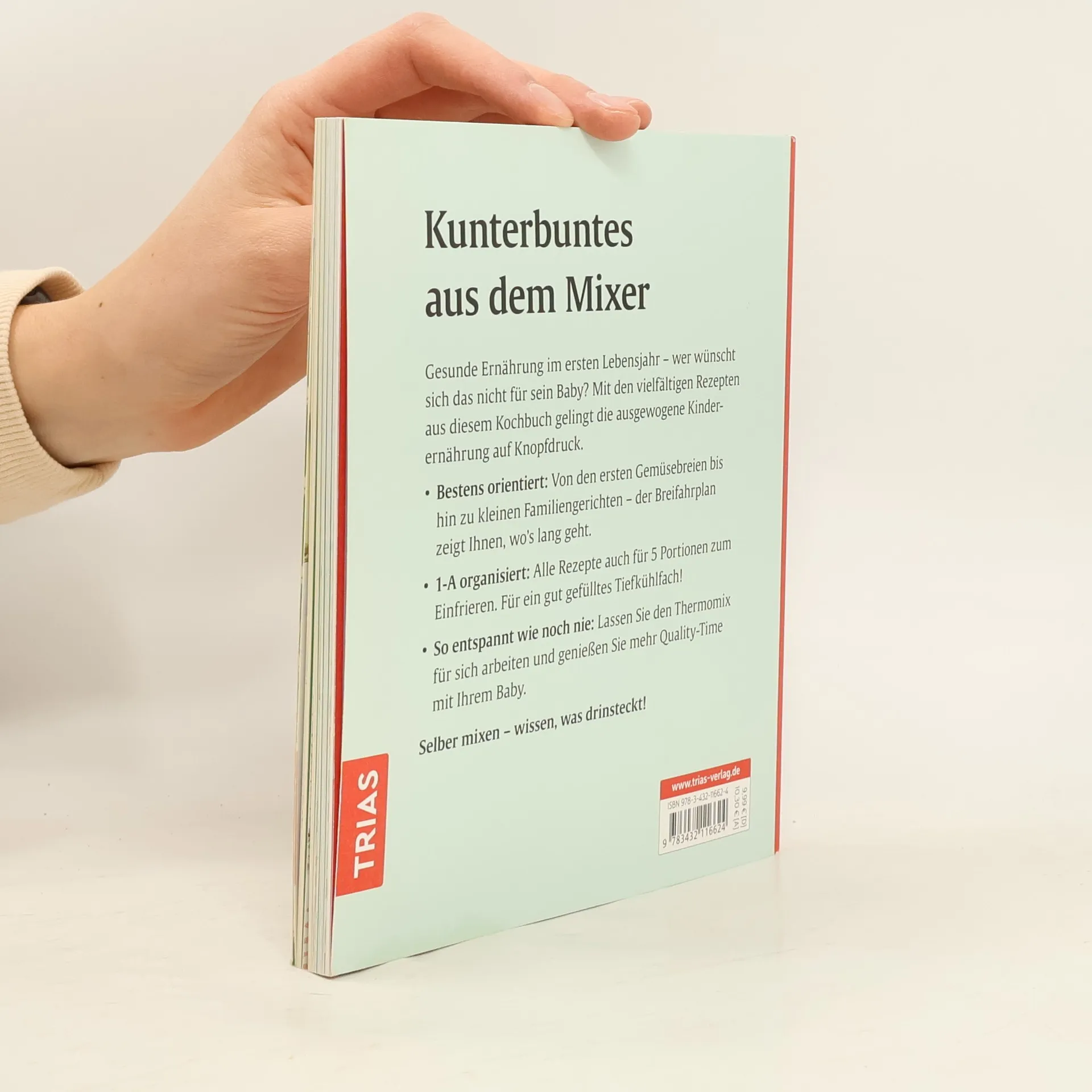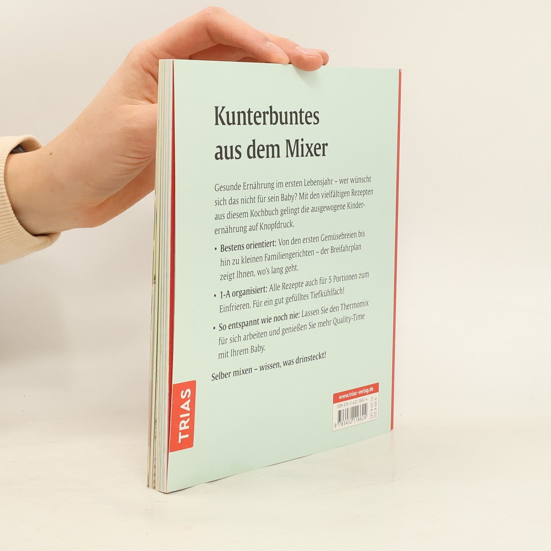 Kunterbuntes aus dem Mixer Gesunde Ernährung im ersten Lebensjahr – wer wünscht sich das nicht für sein Baby? Mit den vielfältigen Rezepten aus diesem Kochbuch gelingt die ausgewogene Kinderernährung auf Knopfdruck. Bestens orientiert: Von den ersten Gemüsebreien bis hin zu kleinen Familiengerichten – der Breifahrplan zeigt Ihnen, wo’s lang geht. 1-A organisiert: Alle Rezepte auch für 5 Portionen zum Einfrieren. Für ein gut gefülltes Tiefkühlfach! So entspannt wie noch nie: Lassen Sie den Thermomix für sich arbeiten und genießen Sie mehr Quality-Time mit Ihrem Baby. Selber mixen – wissen, was drinsteckt!