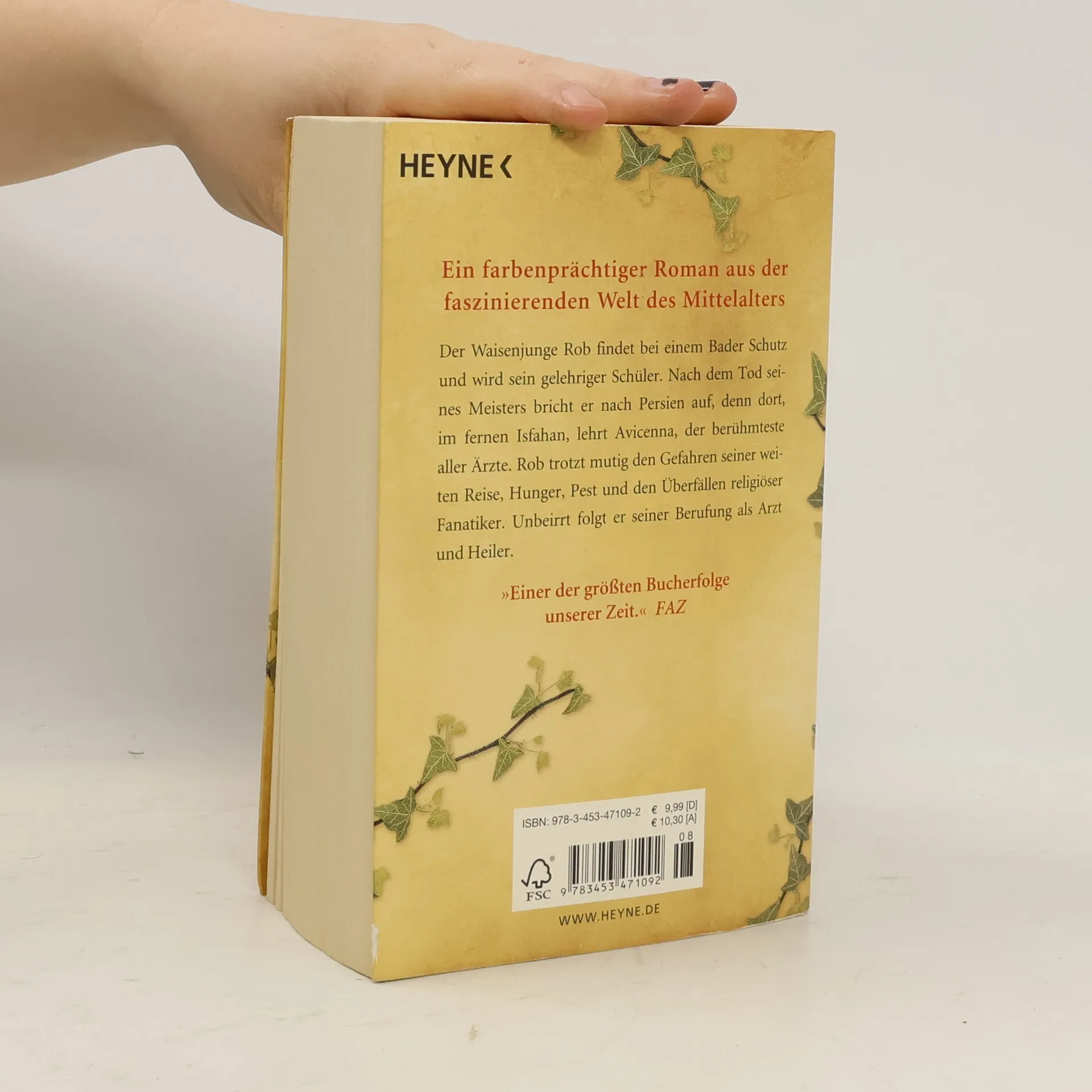 Der Waisenjunge Rob findet bei einem Bader Schutz und wird sein gelehriger Schüler. Nach dem Tod seines Meisters bricht er nach Persien auf, denn dort, im fernen Isfahan, lehrt Avicenna, der berühmteste aller Ärzte. Rob trotzt mutig den Gefahren seiner weiten Reise, Hunger, Pest und den Überfällen religiöser Fanatiker. Unbeirrt folgt er seiner Berufung als Arzt und Heiler.