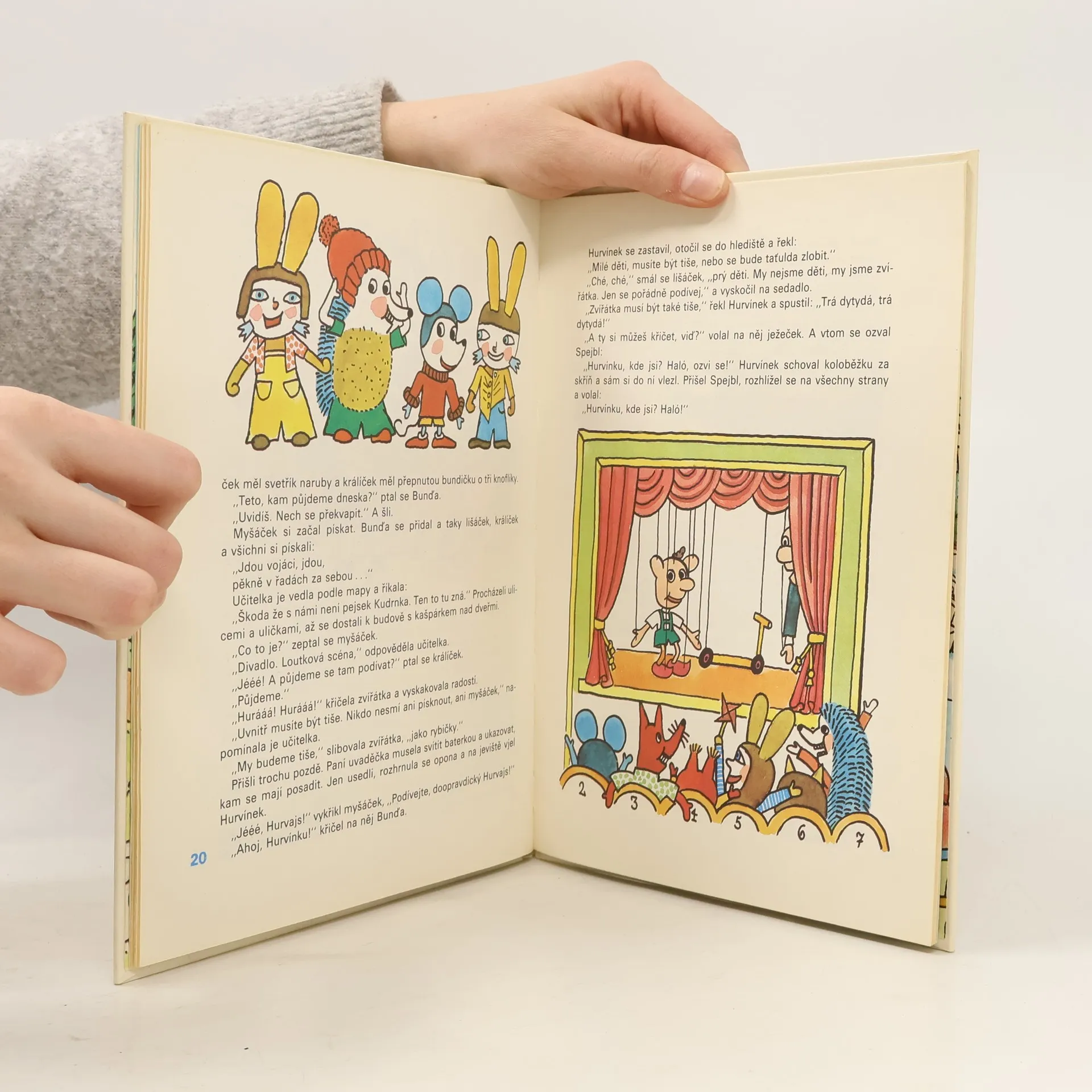 Příběh malých zvířátek, která jedou na školku v přírodě do Prahy a poznávají její krásy. Jdou do Národního muzea, divadla, jeli po eskalátorech. S ilustracemi Aloise Mikulky