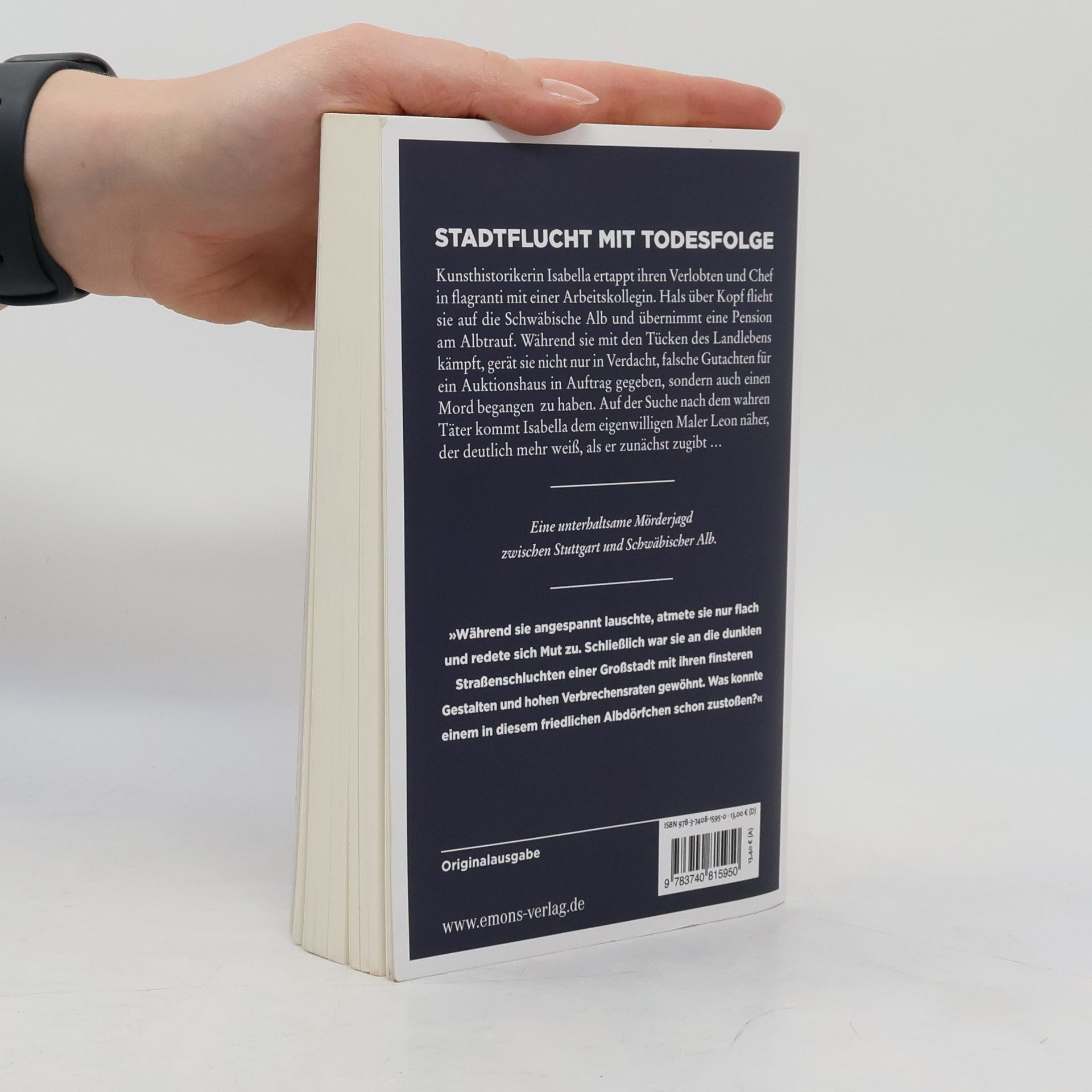 Frech, ironisch, spannend und mit einer guten Prise Romantik. Kunsthistorikerin Isabella ertappt ihren Verlobten und Chef in flagranti mit einer Arbeitskollegin. Hals über Kopf flieht sie auf die Schwäbische Alb und übernimmt eine Pension am Albtrauf. Während sie mit den Tücken des Landlebens kämpft, gerät sie nicht nur in Verdacht, falsche Gutachten für ein Auktionshaus in Auftrag gegeben, sondern auch einen Mord begangen zu haben. Auf der Suche nach dem wahren Täter kommt Isabella dem eigenwilligen Maler Leon näher, der deutlich mehr weiß, als er zunächst zugibt …