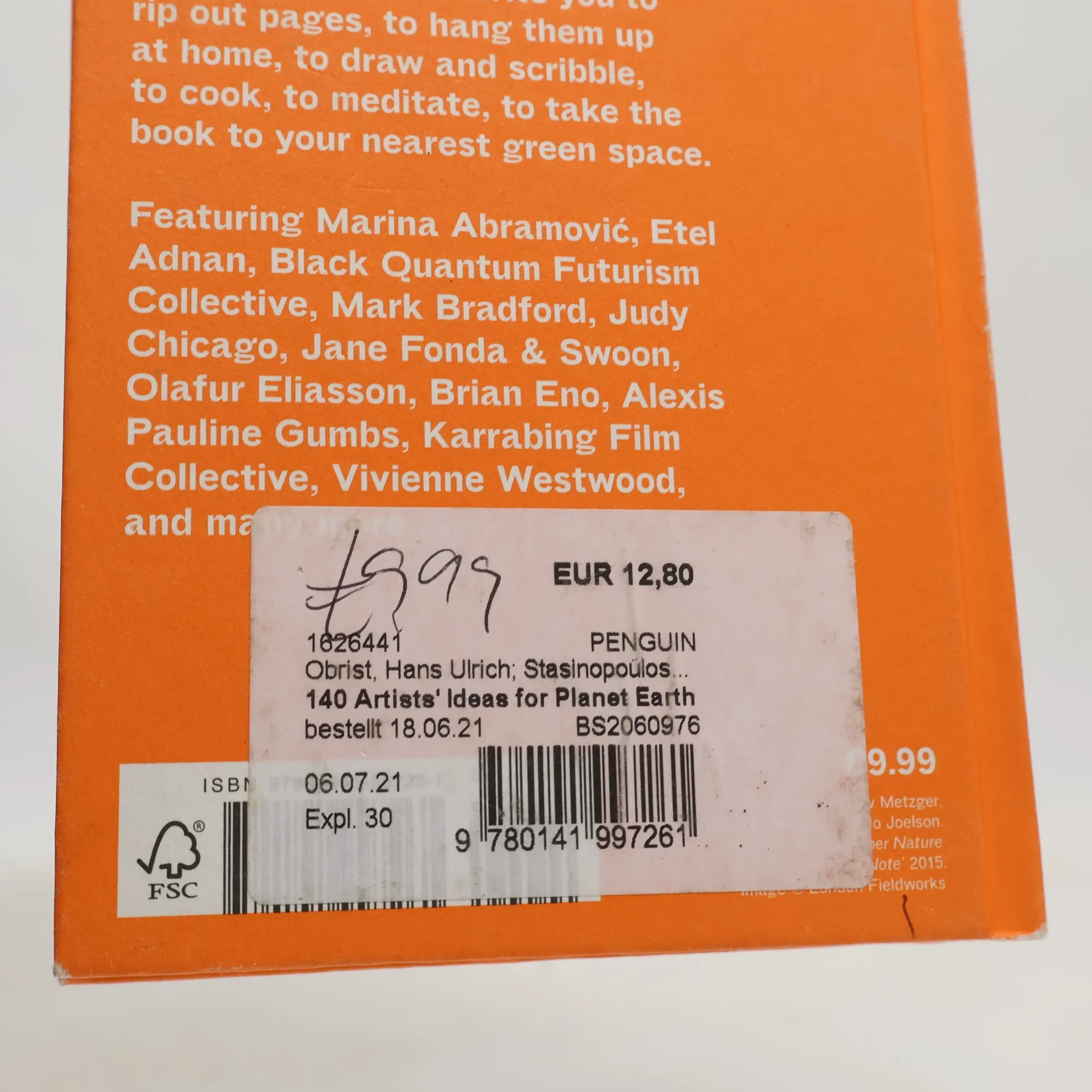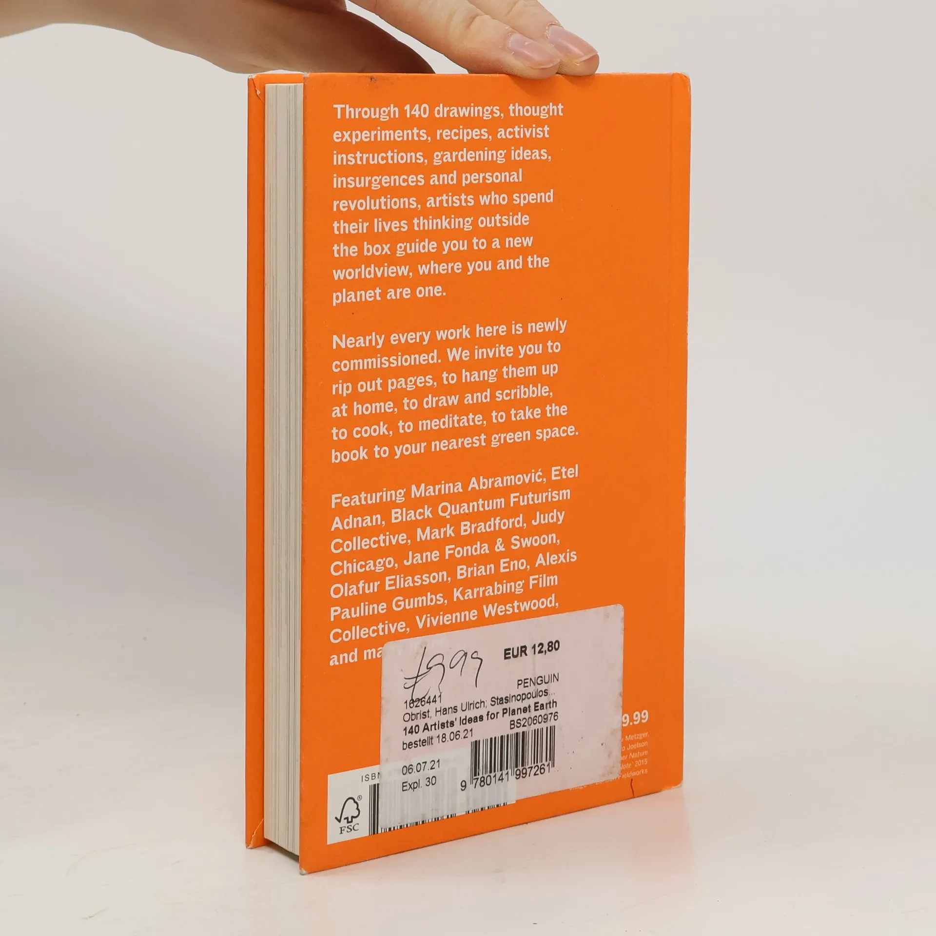Through 140 drawings, thought experiments, recipes, activist instructions, gardening ideas, insurgences and personal revolutions, artists who spend their lives thinking outside the box guide you to a new worldview; where you and the planet are one.Everything here is new. We invite you to rip out pages, to hang them up at home, to draw and scribble, to cook, to meditate, to take the book to your nearest green space.Featuring Olafur Eliasson, Etel Adnan, Alexis Pauline Gumbs, Jane Fonda & Swoon, Judy Chicago, Black Quantum Futurism Collective, Vivienne Westwood, Cauleen Smith, Marina Abramovic, Karrabing Film Collective, and many more.
