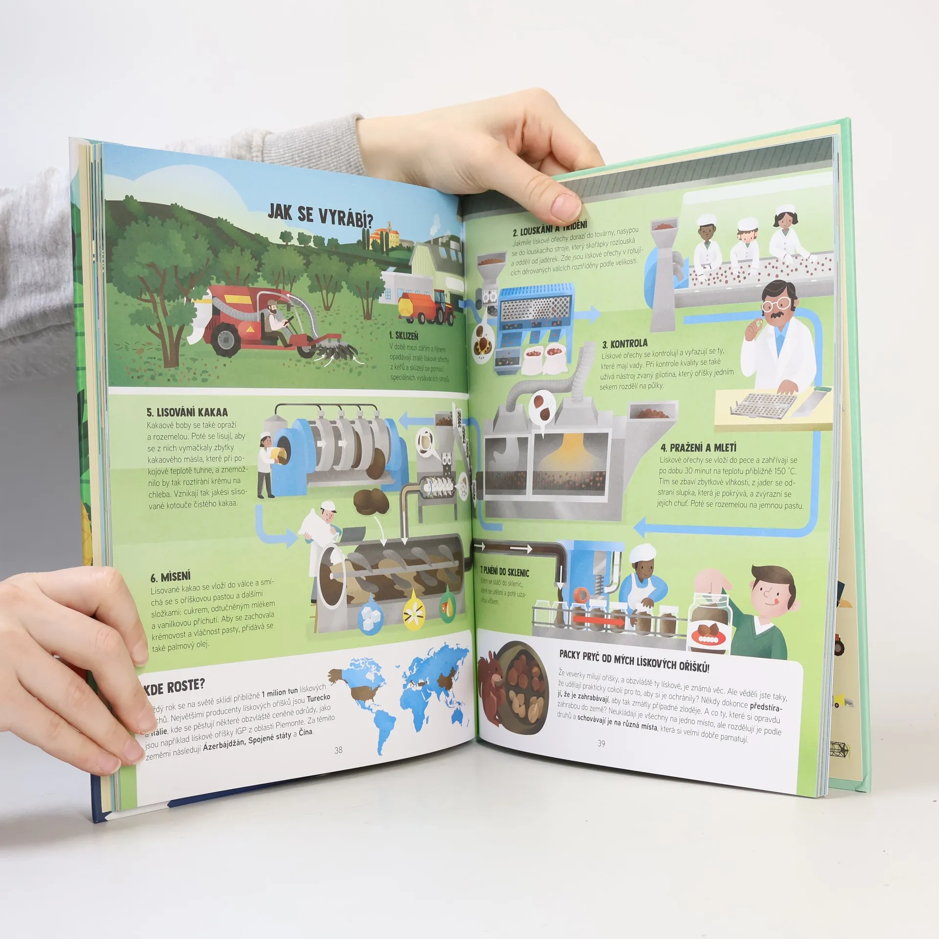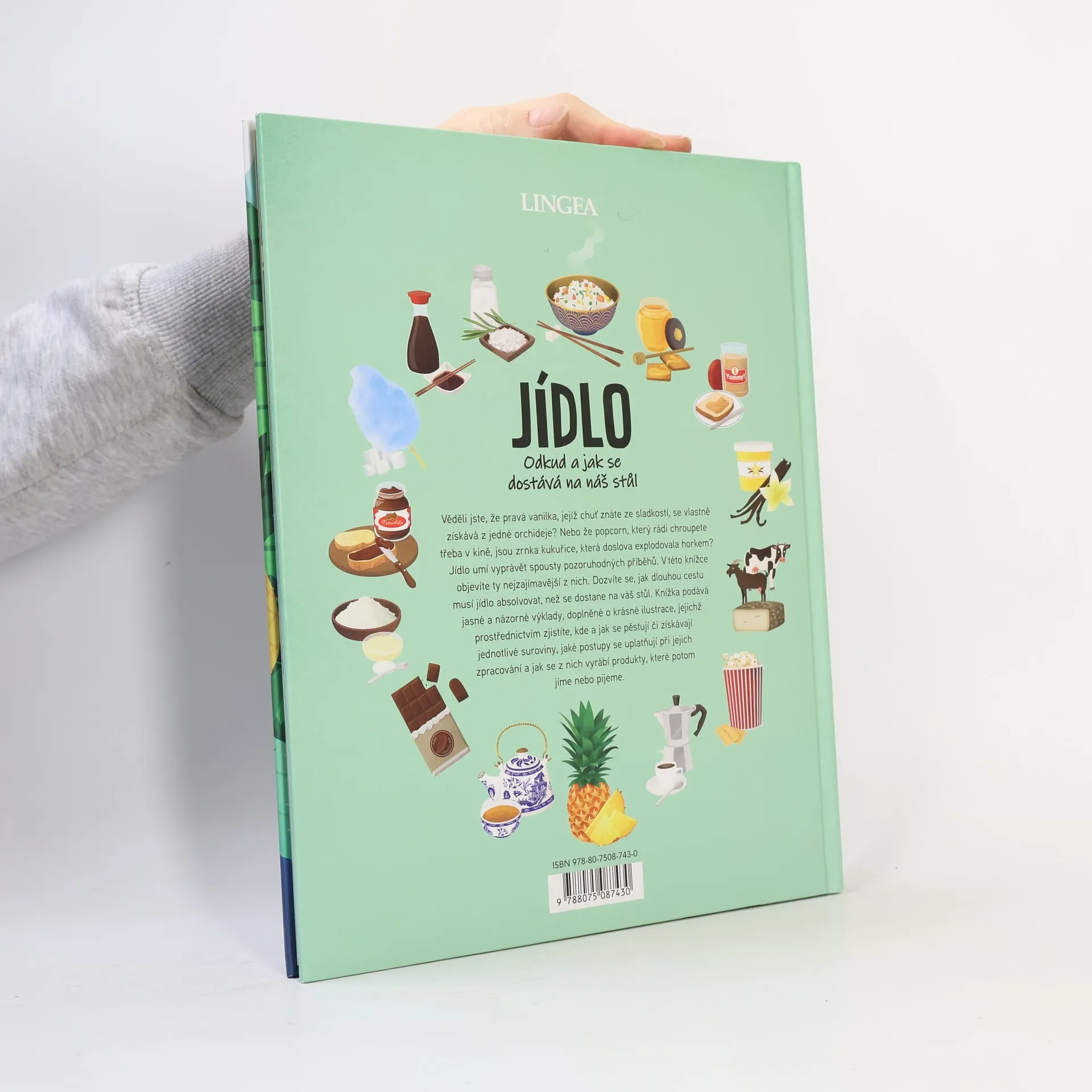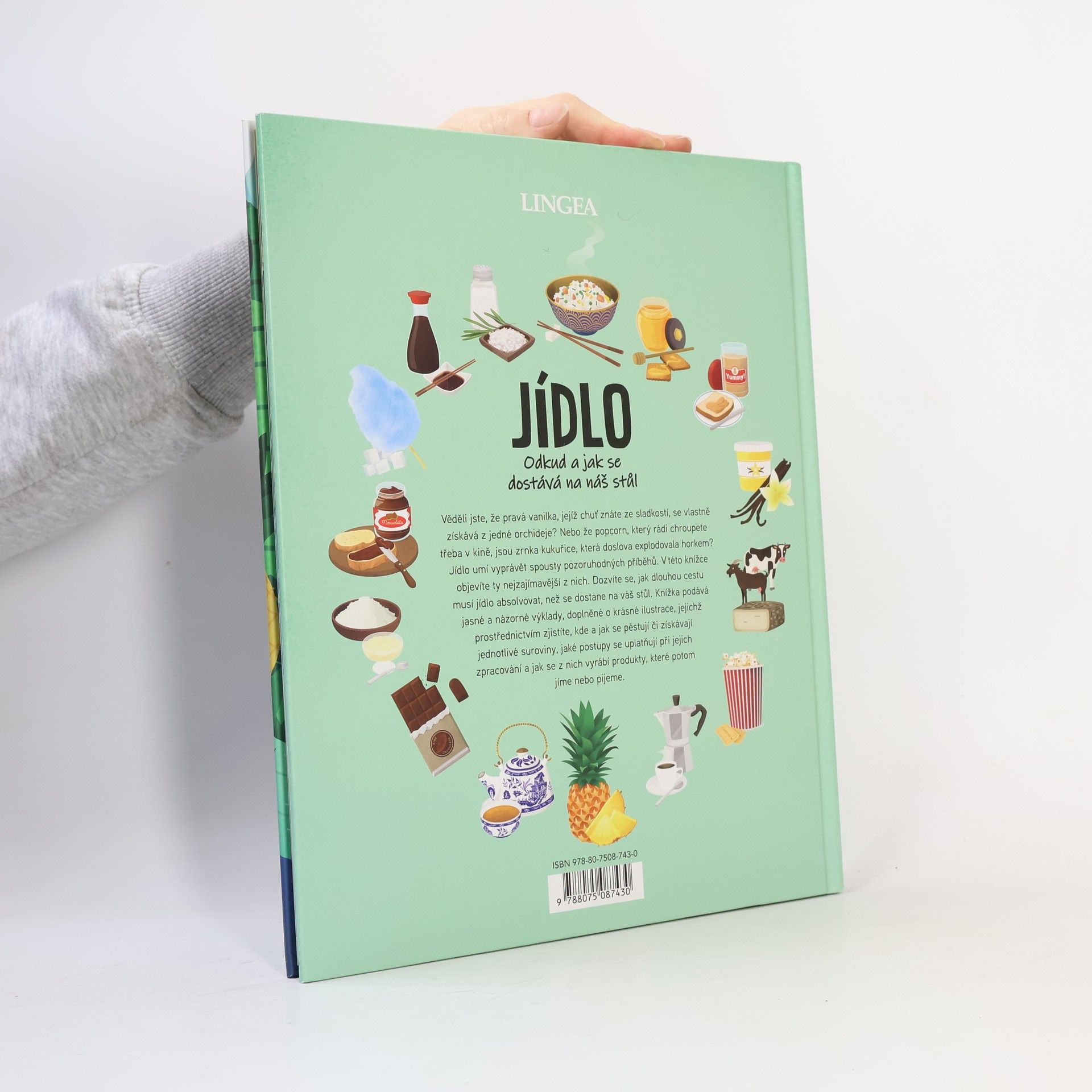 Jídlo umí vyprávět spousty pozoruhodných příběhů. V této knížce děti objeví ty nejzajímavější z nich. Dozví se, jak dlouhou cestu musí jídlo absolvovat, než se dostane na váš stůl. Knížka podává jasné a názorné výklady, doplněné o krásné ilustrace, jejichž prostřednictvím zjistíte, kde a jak se pěstují či získávají jednotlivé suroviny, jaké postupy se uplatňují při jejich zpracování a jak se z nich vyrábí produkty, které potom jíme nebo pijeme. Kniha představuje čokoládu, čaj, med, rýži, sýr, arašídové máslo, cukrovou vatu a další. Věděli jste například, že pravá vanilka, jejíž chuť znáte ze sladkostí, se vlastně získává z jedné orchideje? Že popcorn, který rádi chroupete třeba v kině, jsou zrnka kukuřice, která doslova explodovala horkem? Nebo že hlavními opylovači ananasovníku v přírodě jsou kolibříci?