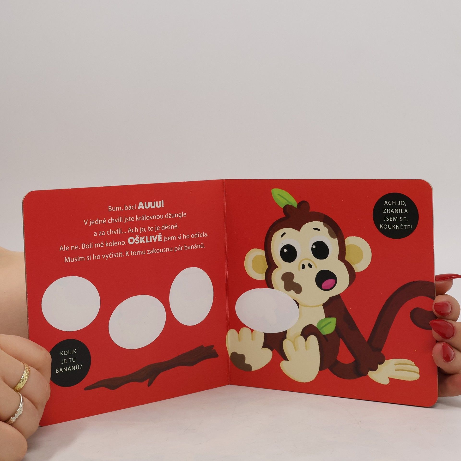 Opička - dostane náplast. Seznamte se s veselou opičkou, která ráda skáče za stromu na strom. Jednou se trochu škrábne a dostane...