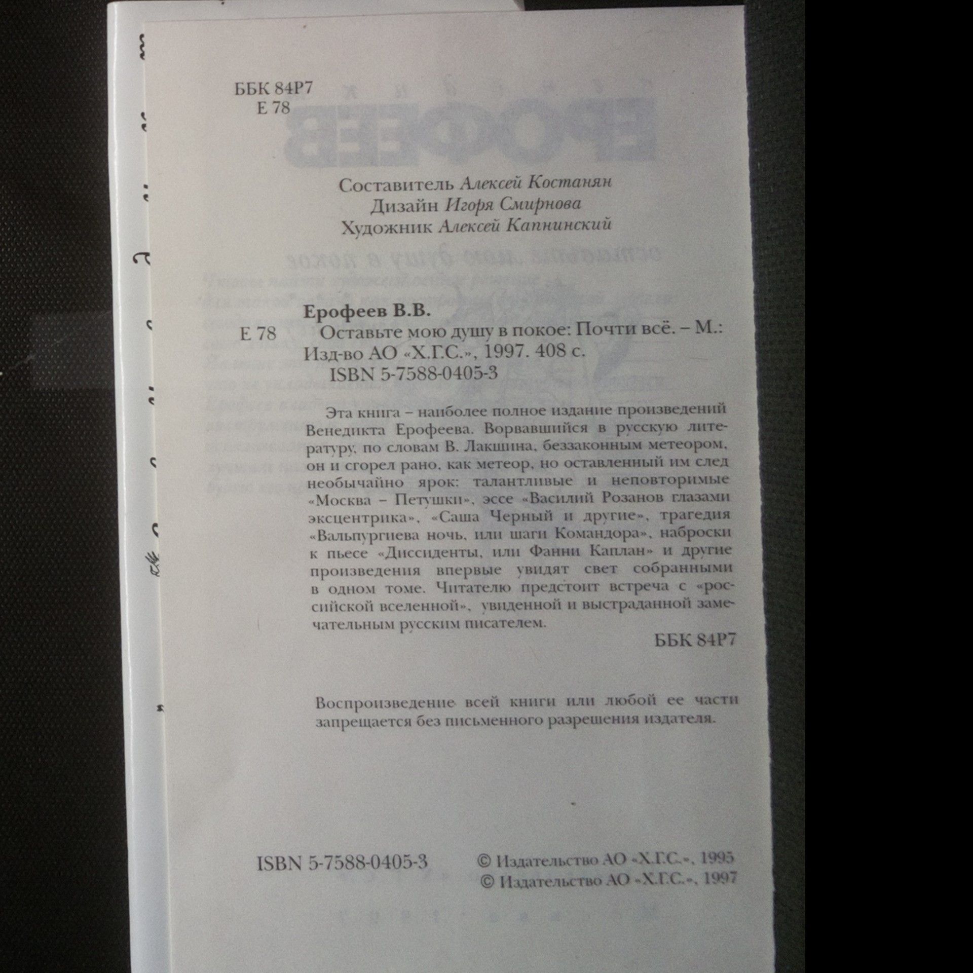 Оставьте мою душу в покое. (Nech mou duši na pokoji), Венедикт Васильевич Ерофеев