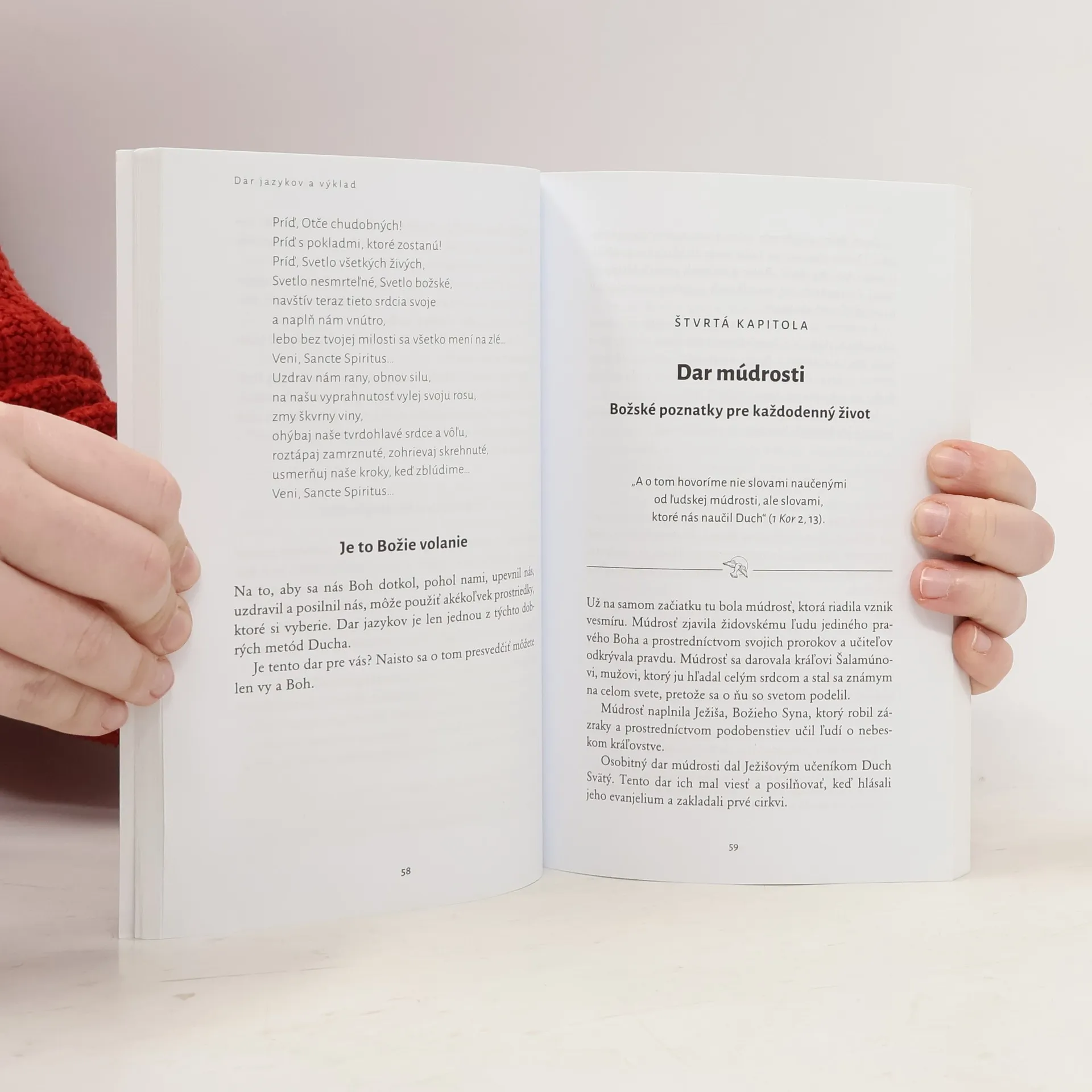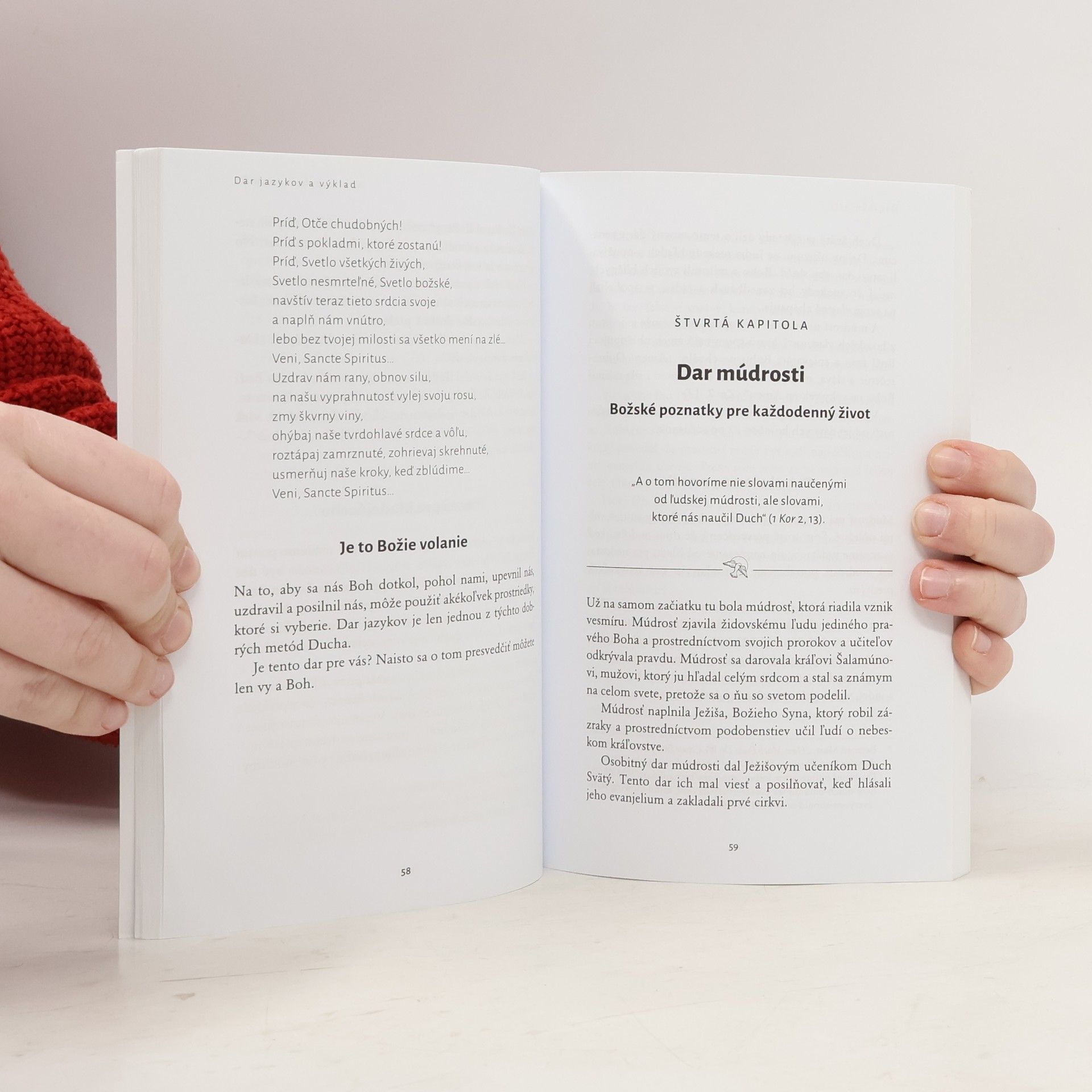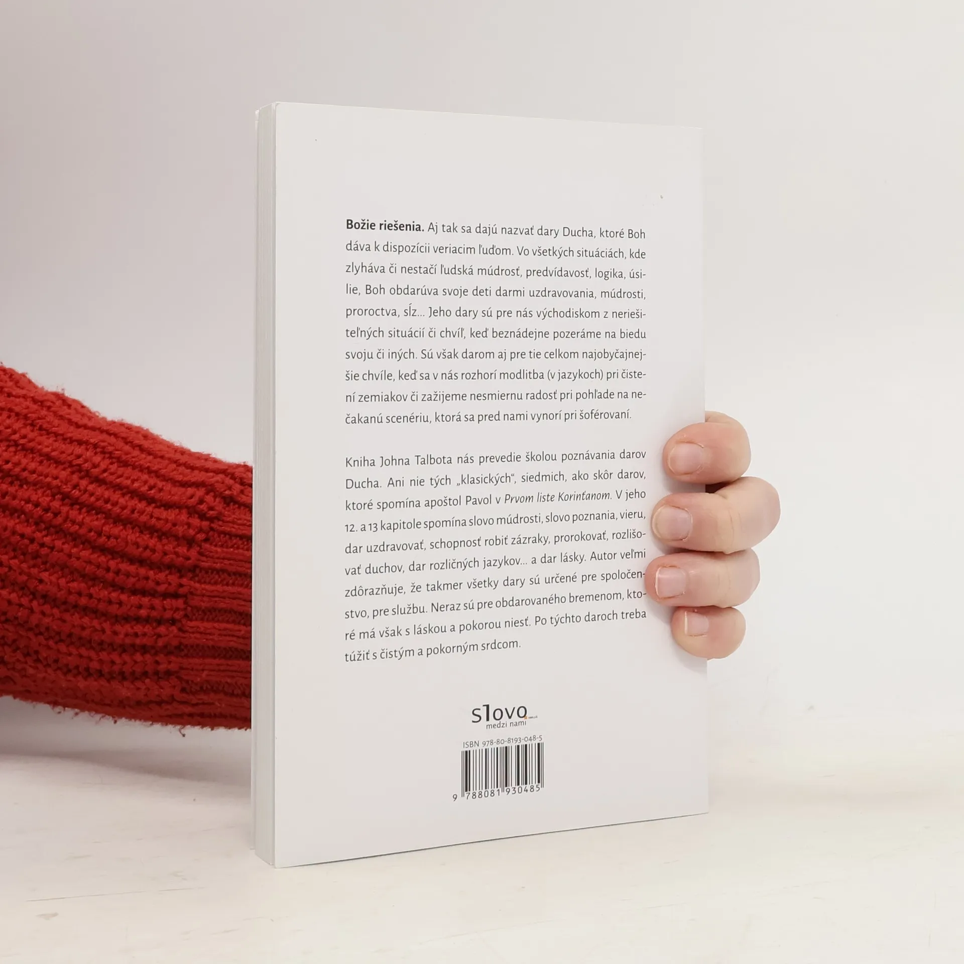 Božie riešenia. Aj tak sa dajú nazvať dary Ducha, ktoré Boh dáva k dispozícii veriacim ľuďom. Vo všetkých situáciách, kde zlyháva či nestačí ľudská múdrosť, predvídavosť, logika, úsilie, Boh obdarúva svoje deti darmi uzdrävovania, múdrosti, proroctva, slz… ]eho dary sú pre nás východiskom z neriešiteľných situácií či chvíľ, keď beznádejne pozeráme na biedu svoju či iných. Sú však darom aj pre tie celkom najobyčajnejšie chvíle, keď sa v nás rozhorí modlitba (v jazykoch) pri čistení zemiakov či zažijeme nesmiernu radosť pri pohľade na nečakanú scenériu, ktorá sa pred nami vynorí pri šoférovaní. Kniha ]ohna Talbota nás prevedie školou poznávania darov Ducha. Ani nie tých „klasických“, siedmich, ako skôr darov, ktoré spomína apoštol Pavol v Prvom liste Korinťanom. V jeho 12. a 13 kapitole spomína slovo múdrosti, slovo poznania, vieru, dar uzdravovať, schopnosť robiť zázraky, prorokovať, rozlišovať duchov, dar rozličných jazykov… a dar lásky. Autor veľmi zdôrazňuje, že takmer všetky dary sú určené pre spoločenstvo, pre službu. Neraz sú pre obdarovaného bremenom, ktoré má však s láskou a pokorou niesť. Po týchto daroch treba túžiť s čistým a pokorným srdcom.