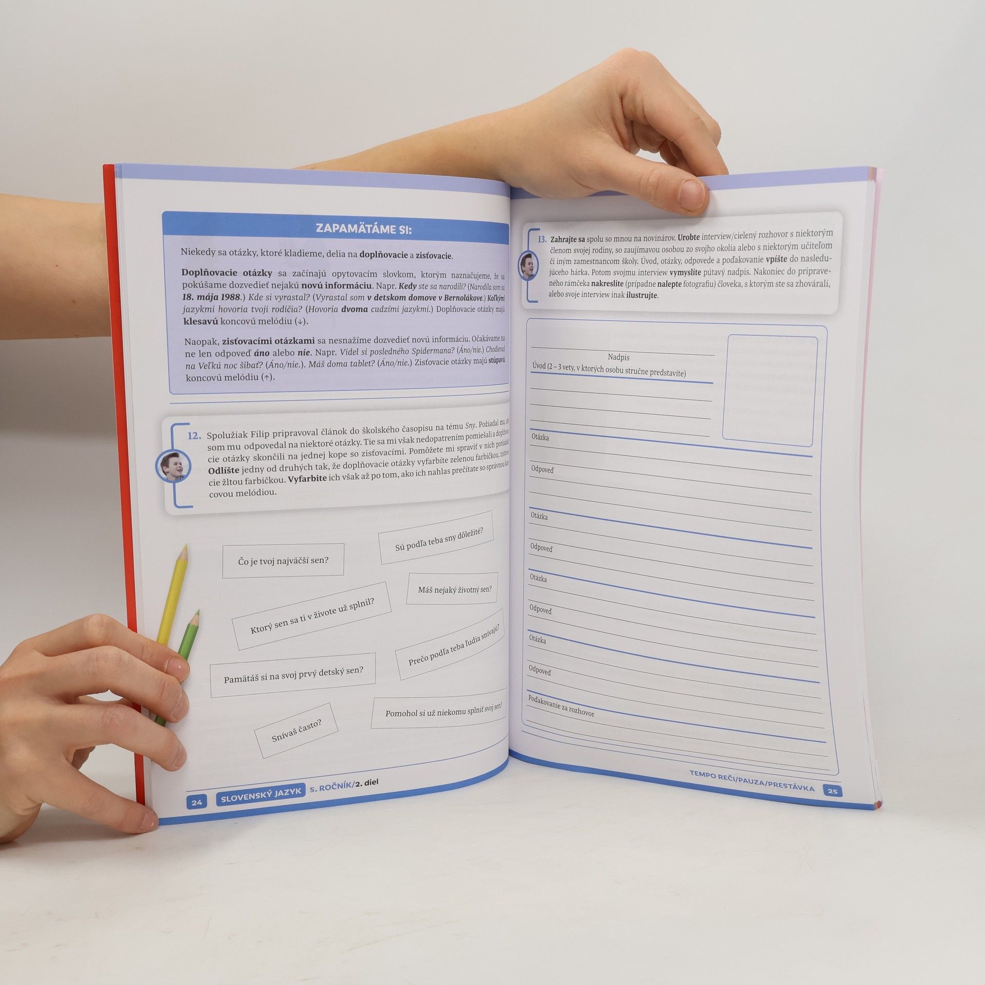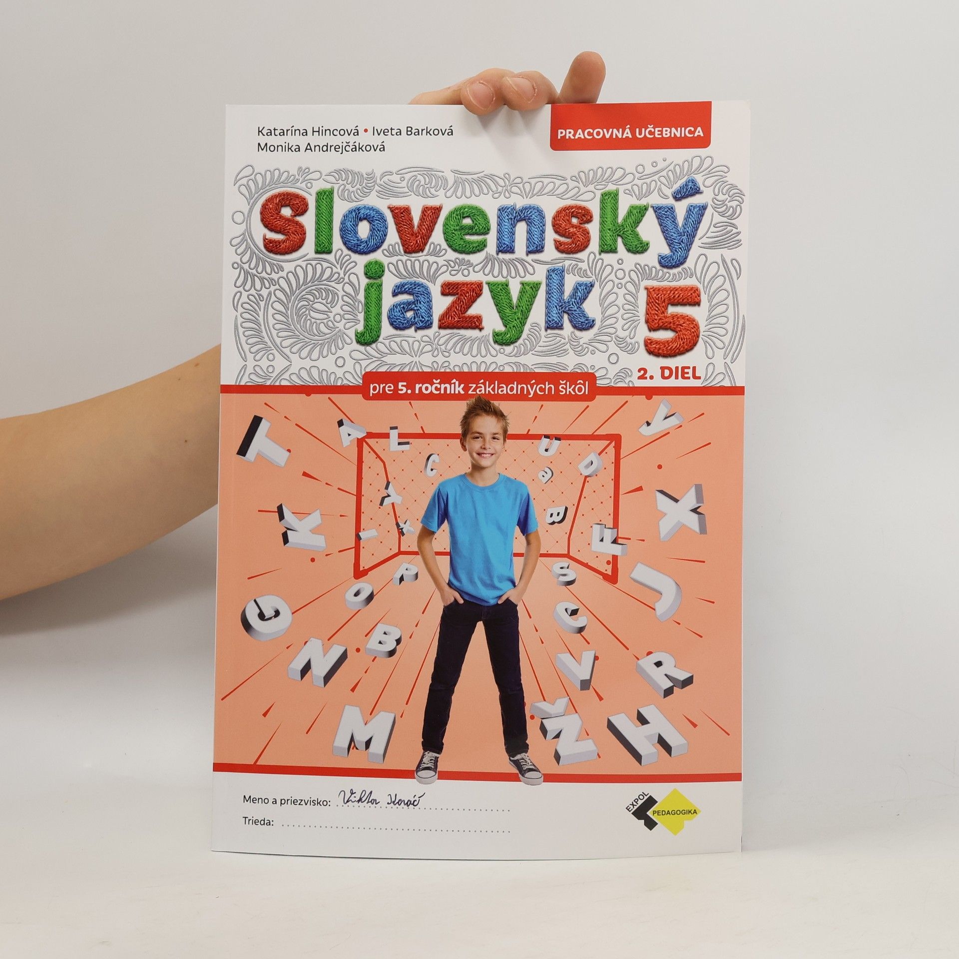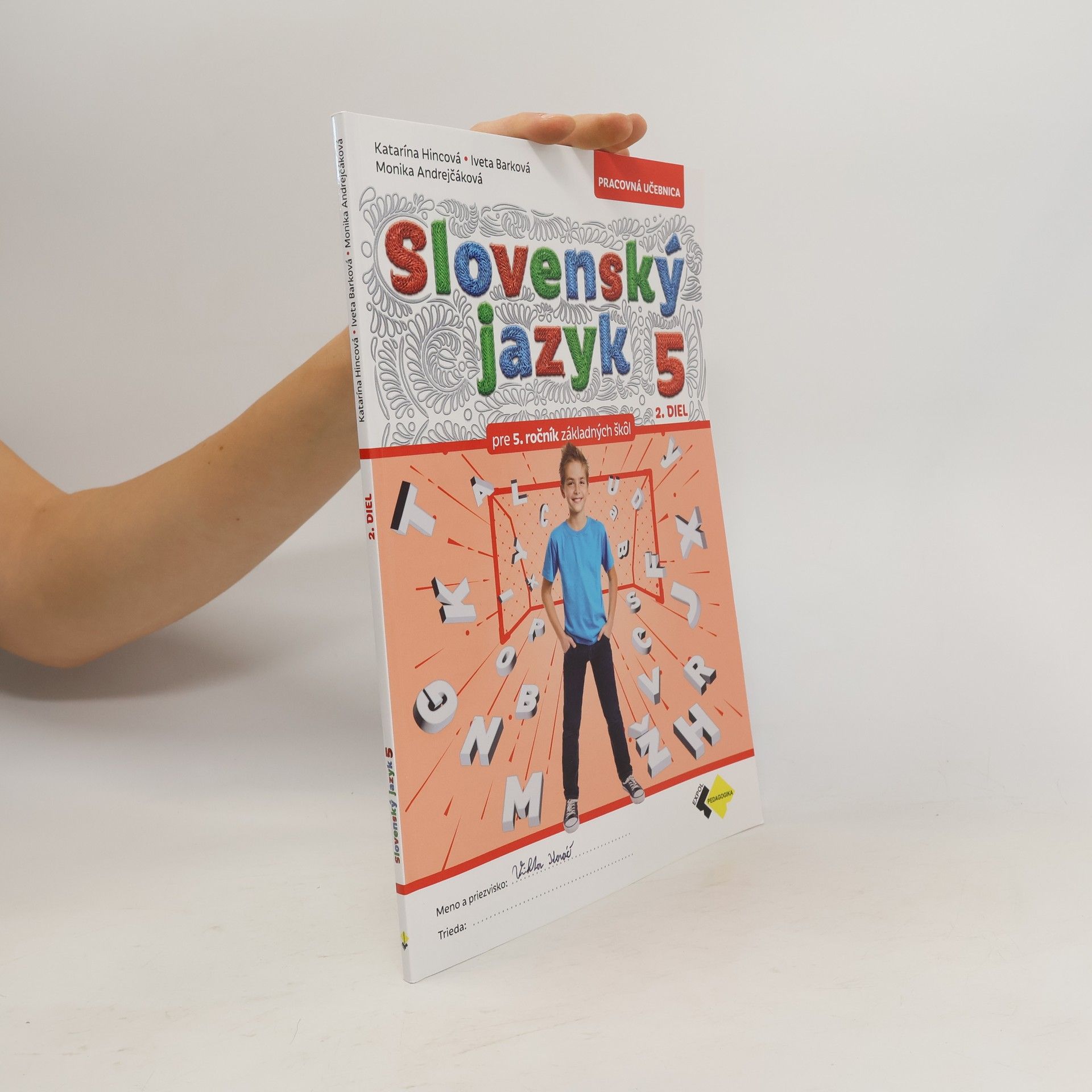 Pracovná učebnica Slovenský jazyk pre 5. ročník je druhým dielom série učebníc slovenského jazyka pre žiakov 5. – 9. ročníka základnej školy. Svojím originálnym a inovatívnym spracovaním nahliada na učivo z pohľadu detí s rozličnými typmi tvorivosti, inteligencie, schopností a záujmov. Tie vystupujú v úlohe sprievodcov jednotlivými kapitolami prvého a druhého dielu učebnice, čím sa učenie materinského jazyka stáva pre žiakov atraktívnym, motivujúcim a zábavným.