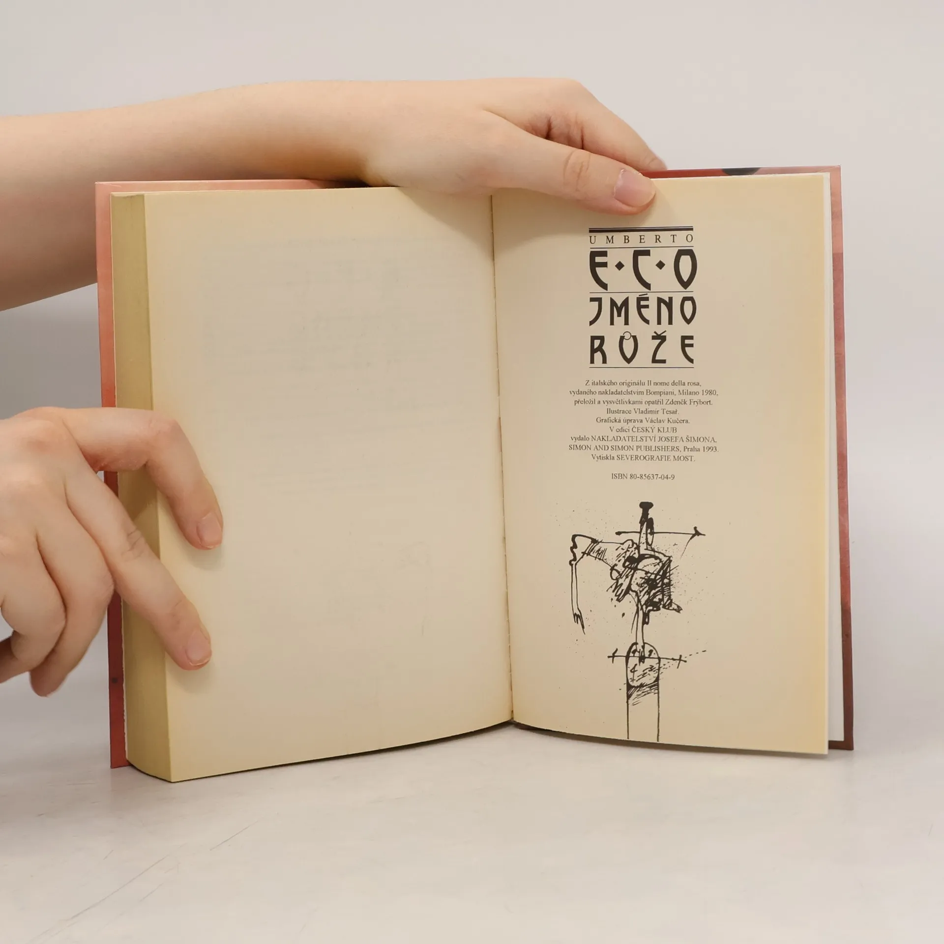V opatství, ve kterém se děj odehrává, je v horním patře hlavní budovy umístěn velký a velmi matoucí labyrint chodeb, ukrývající největší knihovnu celého tehdejšího křesťanského světa, plnou vzácných a zejména tajných či utajovaných rukopisů, včetně děl antických autorů, jejichž myšlenky křesťanství odmítalo. Františkán Vilém z Baskervillu přijel do opatství v doprovodu svého žáka, Adsona z Melku, aby zde připravil půdu pro jednání Františkánů (minoritů, zastánců chudoby církve) s delegací avignonského papeže Jana XXII. Vilém byl po příjezdu opatem informován o záhadné smrti iluminátora Adelma z Otranta a byl, jakožto bývalý inkvizitor požádán o její objasnění. Adelmova smrt však nebyla jediná, která se měla ve zdech opatství odehrát.