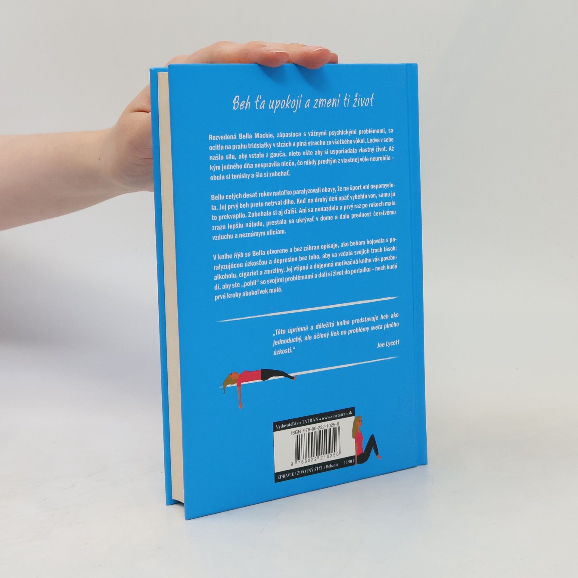 Beh ťa upokojí a zmení ti život Rozvedená Bella Mackie, zápasiaca s vážnymi psychickými problémami, sa ocitla na prahu tridsiatky v slzách a plná strachu zo všetkého vôkol. Ledva v sebe našla silu, aby vstala z gauča, nieto ešte aby si usporiadala vlastný život. Až kým jedného dňa nespravila niečo, čo nikdy predtým z vlastnej vôle neurobila – obula si tenisky a šla si zabehať. Bellu celých desať rokov natoľko paralyzovali obavy, že na šport ani nepomyslela. Jej prvý beh preto netrval dlho. Keď na druhý deň opäť vybehla von, samu ju to prekvapilo. Zabehala si aj ďalší. Ani sa nenazdala a prvý raz po rokoch mala zrazu lepšiu náladu, prestala sa ukrývať v dome a dala prednosť čerstvému vzduchu a neznámym uliciam. V knihe Hýb sa Bella otvorene a bez zábran opisuje, ako behom bojovala s paralyzujúcou úzkosťou a depresiou bez toho, aby sa vzdala svojich troch lások: alkoholu, cigariet a zmrzliny. Jej vtipná a dojemná motivačná kniha vás povzbudí, aby ste „pohli“ so svojimi problémami a dali si život do poriadku – nech budú prvé kroky akokoľvek malé.