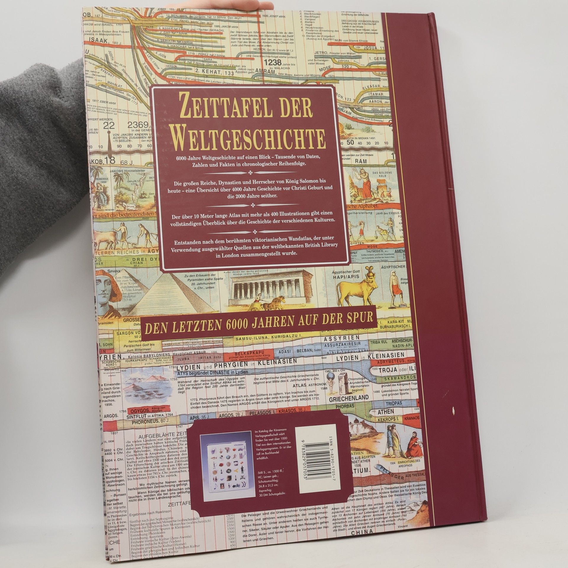 6000 Jahre Weltgeschichte auf einen Blick - Tausende von Daten, Zahlen und Fakten in chronologischer Reihenfolge.§Die großen Reiche, Dynastien und Herrscher von König Salomon bis heute - eine Übersicht über 4000 Jahre Geschichte vor Christi Geburt und die 2000 Jahre seither.§Der über 10 Meter lange Atlas mit mehr als 400 Illustrationen gibt einen vollständigen Überblick über die Geschichte der verschiedenen Kulturen.§Entstanden nach dem berühmten viktorianischen Wandatlas, der unter Verwendung ausgewählter Quellen aus der weltbekannten British Library in London zusammengestellt wurde.