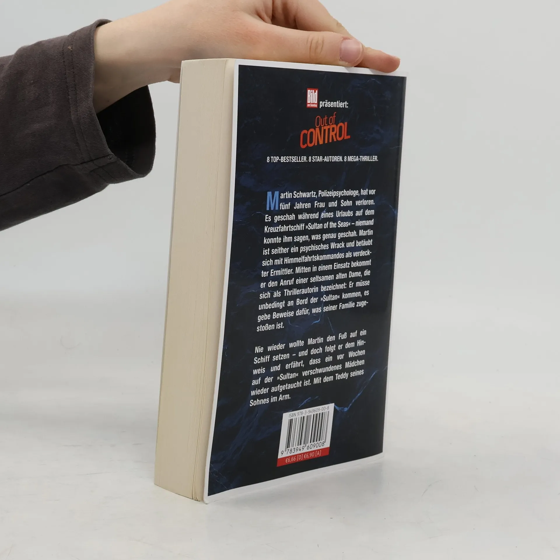 Martin Schwartz, Polizeipsychologe, hat vor fünf Jahren Frau und Sohn verloren. Es geschah während eines Urlaubs auf dem Kreuzfahrtschiff „Sultan of the Seas“ – niemand konnte ihm sagen, was genau geschah. Martin ist seither ein psychisches Wrack und betäubt sich mit Himmelfahrtskommandos als verdeckter Ermittler. Mitten in einem Einsatz bekommt er den Anruf einer seltsamen alten Dame, die sich als Thrillerautorin bezeichnet: Er müsse unbedingt an Bord der „Sultan“ kommen, es gebe Beweise dafür, was seiner Familie zugestoßen ist. Nie wieder wollte Martin den Fuß auf ein Schiff setzen – und doch folgt er dem Hinweis und erfährt, dass ein vor Wochen auf der „Sultan“ verschwundenes Mädchen wieder aufgetaucht ist. Mit dem Teddy seines Sohnes im Arm.