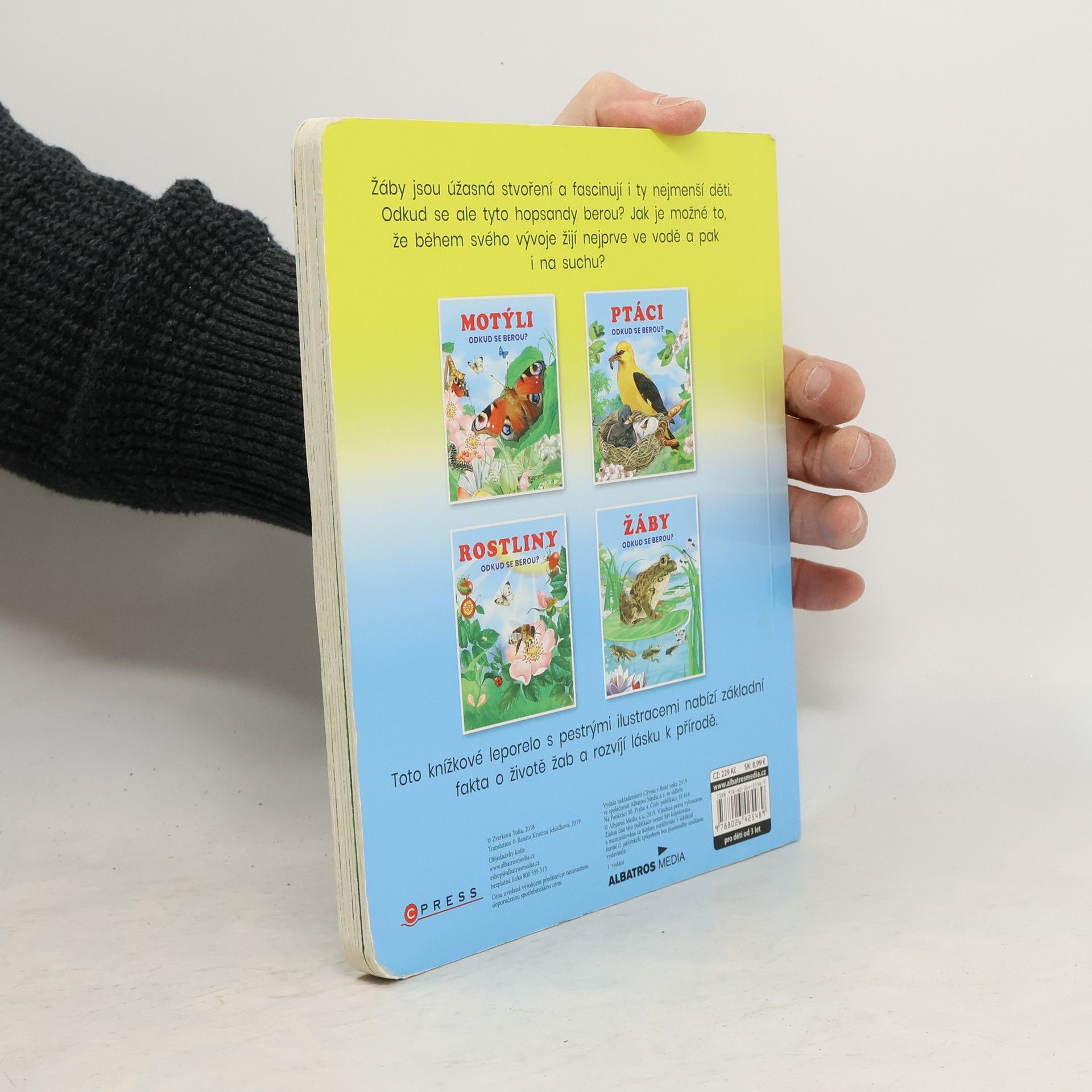Žáby jsou úžasná stvoření a fascinují i ty nejmenší děti. Odkud se ale tyto hopsandy berou? Jak je možné to, že během svého vývoje žijí nejprve ve vodě a pak i na suchu? Toto knížkové leporelo s pestrými ilustracemi nabízí základní fakta o životě žab a rozvíjí lásku k přírodě.