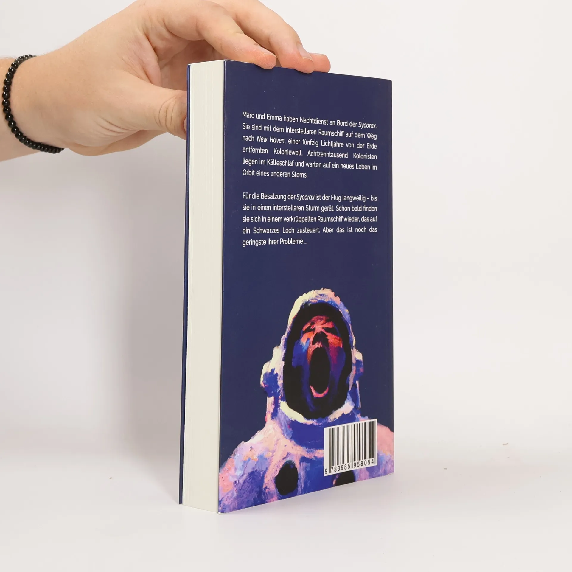 Marc und Emma haben Nachtdienst an Bord der Sycorax. Sie sind mit dem interstellaren Raumschiff auf dem Weg nach New Haven, einer fünfzig Lichtjahre von der Erde entfernten Koloniewelt. Achtzehntausend Kolonisten liegen im Kälteschlaf und warten auf ein neues Leben im Orbit eines anderen Sterns. Für die Besatzung der Sycorax ist der Flug langweilig – bis ihr Schiff in einen interstellaren Sturm gerät. Schon bald finden sich Marc und Emma in einem verkrüppelten Raumschiff wieder, das auf ein Schwarzes Loch zusteuert. Aber das ist noch das geringste ihrer Probleme …