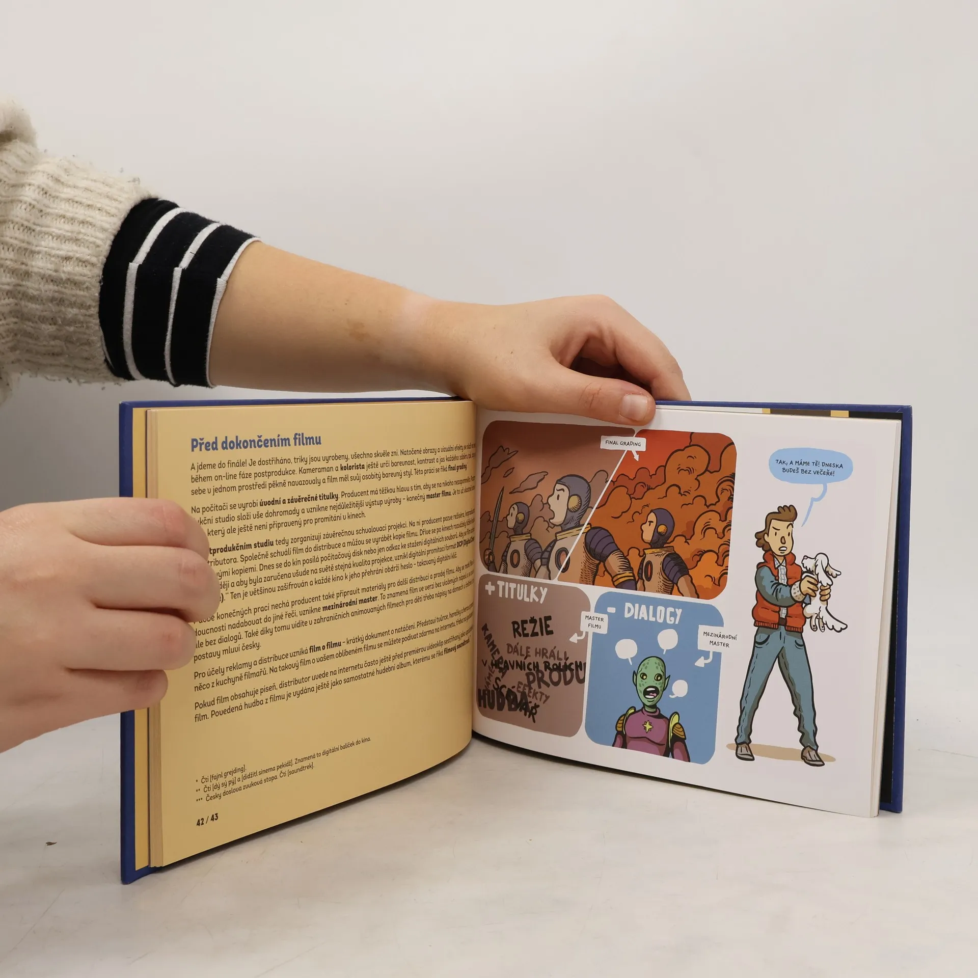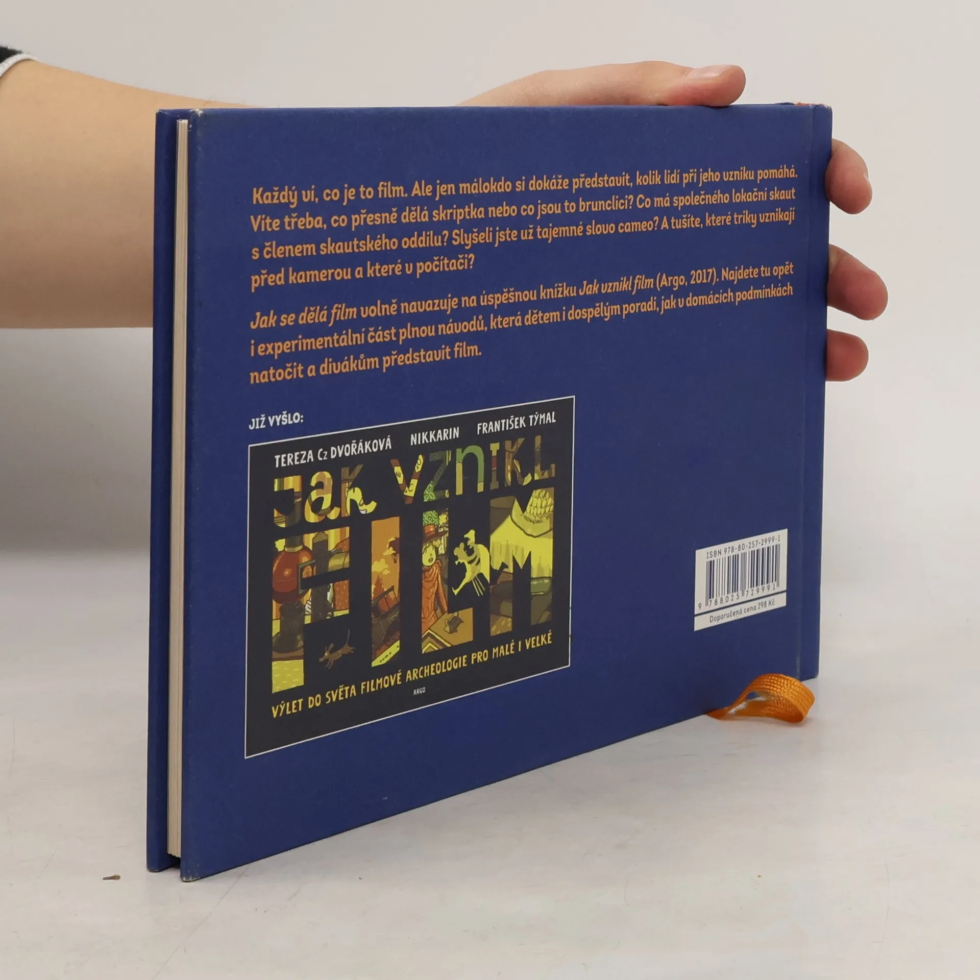 Každý ví, co je to film. Ale jen málokdo si dokáže dopodrobna představit, kolik lidí a jak dlouhou dobu běžný celovečerní film pomáhá natočit a představit divákům. Víte třeba, co jsou to brunclíci, proč se píše tolik verzí scénáře a co přesně dělá paní, které se říká skriptka? Které triky v dnešní době vznikají před kamerou a které v počítači? Proč filmy potřebují své architekty? Komu se říká tajemným slovem cameo? Co má společného lokační skaut s členem skautského oddílu? Anebo, k čemu všemu je filmařům a jejich filmům užitečný filmový festival? Publikace, která volně navazuje na úspěšnou knihu Jak vznikl film (Argo,2017), bude vedle hlavního textu obsahovat opět také experimentální část plnou návodů připravených propagátorkou animovaných filmů Karolínou Čížkovou, která dětem i dospělým ukáže, jak si v domácích podmínkách natočit a rozšířit opravdový film. Kniha bude doplněna bohatými ilustracemi, jejichž autorem je opět Nikkarin. Kniha je určena pro zvídavé čtenáře od 8 let, ale i pro mnohem starší nebo pro celou rodinu.