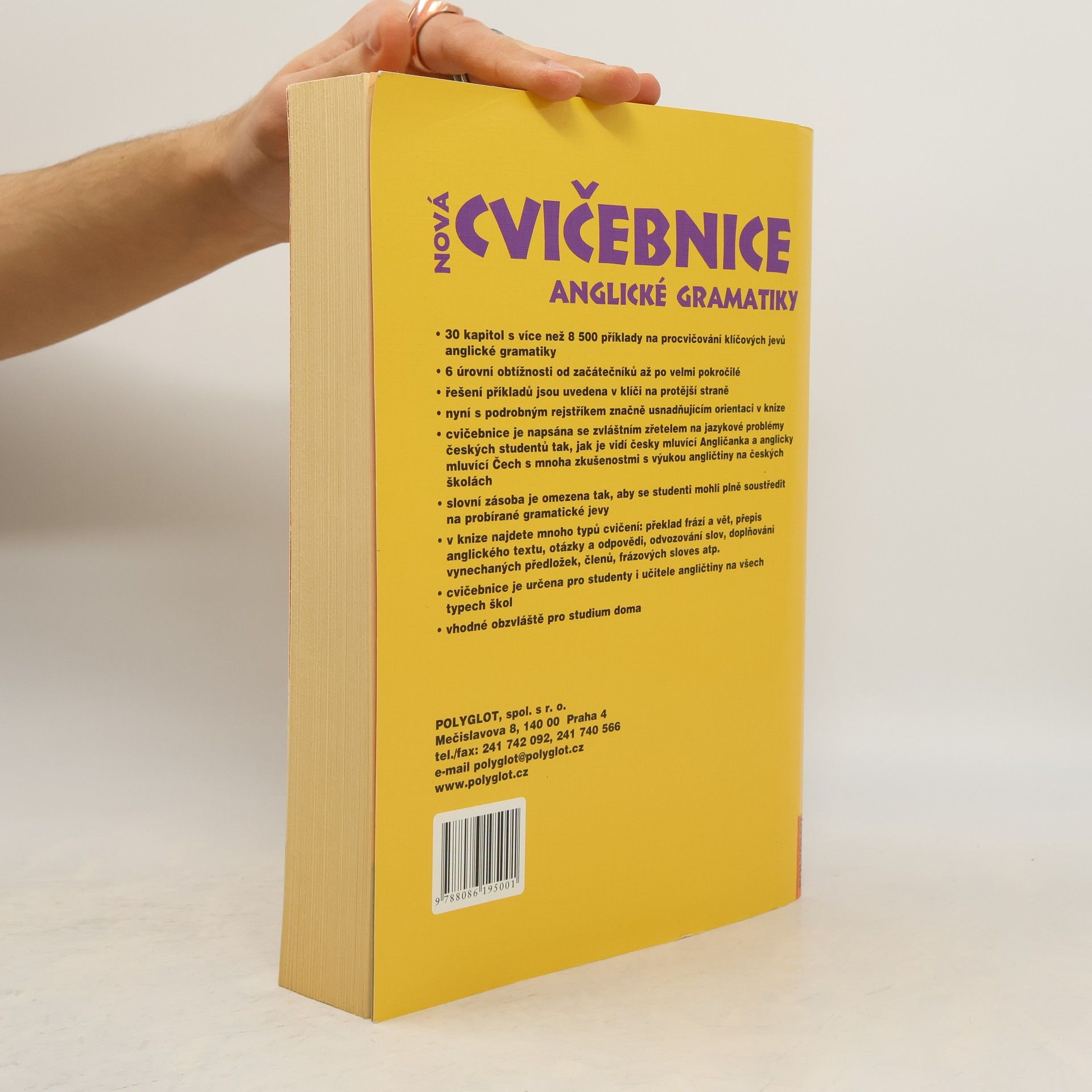 Cvičebnice je doplňkovým materiálem k jazykovým učebnicím. Neobsahuje výklad gramatiky, ale příklady k intenzivnímu procvičování gramatických a lexikálních jevů. Určena pro studenty všech úrovní, vhodná i pro samouky, neboť ke každému cvičení je na protější straně uvedeno řešení. Každá kapitola je rozdělena do několika úrovní pokročilosti. V úrovni A se procvičují jevy, s nimiž se začátečník setká zhruba v prvních měsících studia, ať už se bude učit z kterékoli učebnice. Se zvyšující se úrovní roste i lexikální náročnost cvičení. Cvičebnice svým obsahem přesahují středoškolskou úroveň. V 30 kapitolách najdete přes 8500 příkladů rozdělených do překladových a doplňovacích cvičení. Student se musí zároveň soustředit na slovní zásobu, gramatiku, slovosled, interpunkci a další aspekty jazyka. Důraz je kladen i na problémy specifické pro české studenty (časová souslednost, předložky, vazba there is / are…).... celý text