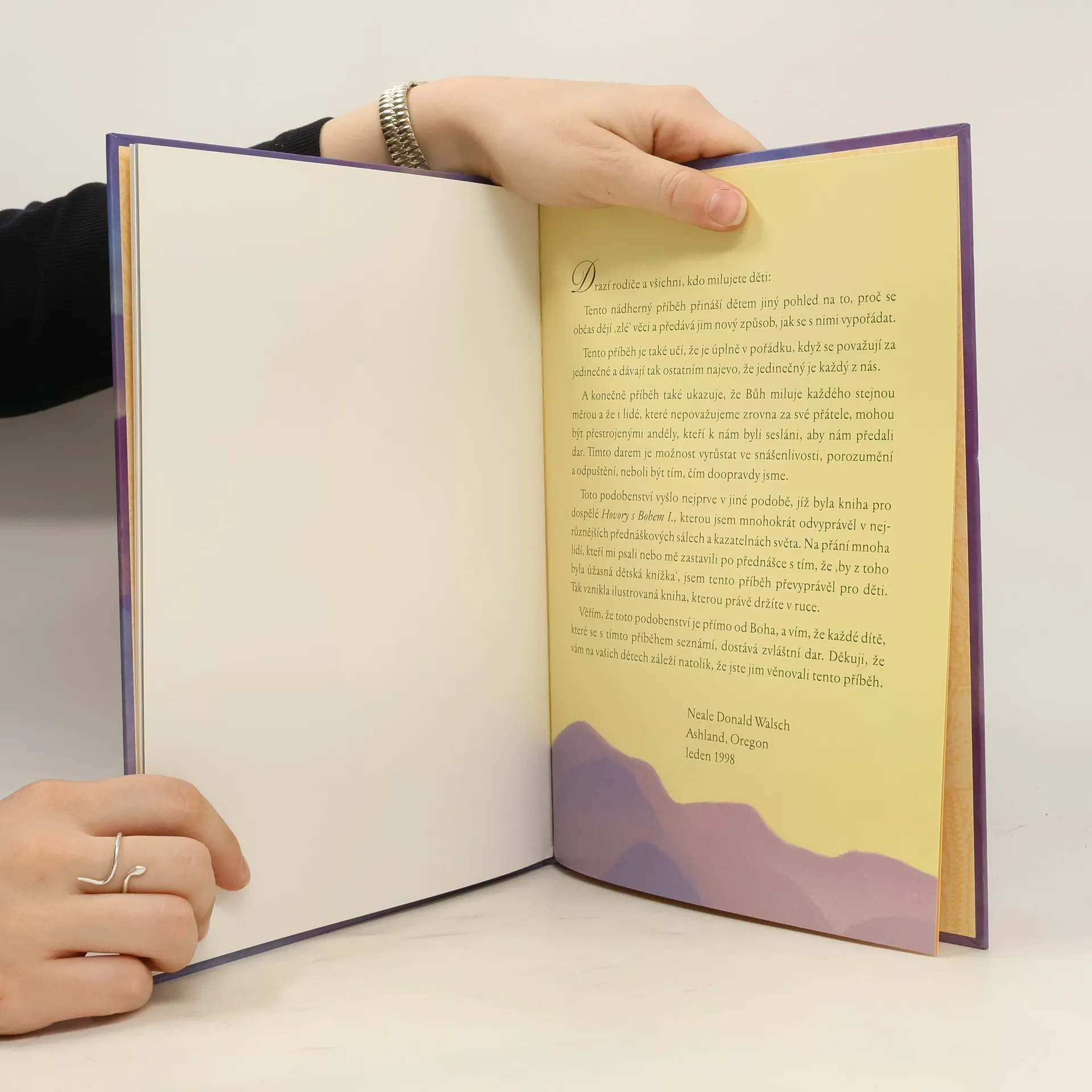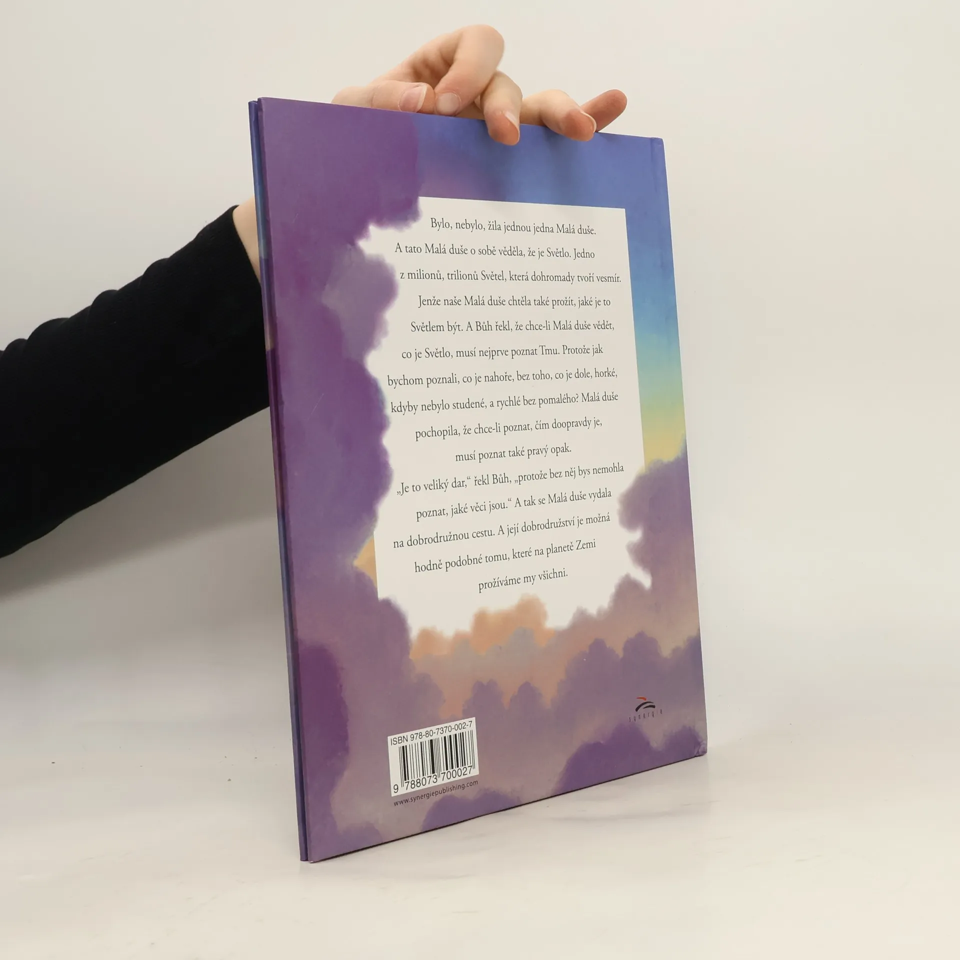 Kniha Hovory s Bohem pro děti s barevnými ilustracemi. Malá duše a Slunce je prosté a působivé vyprávění pro děti, ve kterém budou objevovat Boha, kterého mohou milovat, protože Bůh je láska – a všechny malé dušičky jsou jeho částečkami. Možná, že i rodiče u této knihy znovu objeví, kým skutečně jsou… Bylo nebylo, žila jednou jedna Malá duše. A tato Malá duše o sobě věděla, že je Světlo, jedno z milionů, trilionů Světel, která dohromady tvoří vesmír. Jenže naše Malá duše chtěla také prožít jaké to je být Světlem. A Bůh řekl, že chce-li Malá duše vědět, co je Světlo, musí nejprve poznat Tmu. Protože jak bychom poznali co je nahoře bez toho, co je dole, horké, kdyby nebylo studené a rychlé bez pomalého? Malá duše pochopila, že chce-li poznat, čím doopravdy je, musí poznat také pravý opak. „Je to veliký dar,“ řekl Bůh, „protože bez něj bys nemohla poznat, jaké věci jsou.“ A tak se Malá duše vydala na dobrodružnou cestu. Její příběh je možná hodně podobný tomu, které na planetě Zemi prožíváme my všichni.